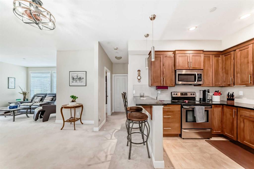 If privacy, peace, and quiet matter, this corner unit stands apart. Tucked into one of the most secluded locations within the Savana complex, this beautifully positioned home offers a rare sense of calm and privacy that’s hard to find. Filled with natural light, this two-bedroom, two-bathroom condo features an open-concept layout with granite countertops and a welcoming corner stone-faced gas fireplace that anchors the living space. Large windows frame serene views, while the private balcony provides a quiet outdoor retreat where you may even spot local wildlife passing through. A true standout feature, the unit includes three titled parking stalls — two in the heated underground parkade and one surface stall — offering exceptional convenience and value. Located in one of Strathmore’s most sought-after condo communities, Savana is known for its peaceful setting, thoughtful design, and quality of living. A rare opportunity to own a private, corner unit in a complex residents are proud to call home.
