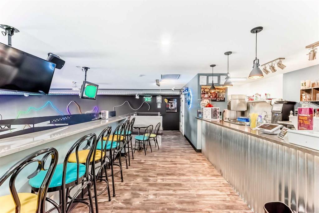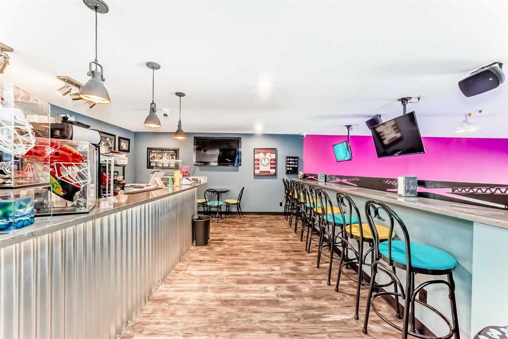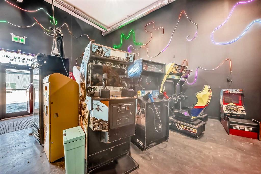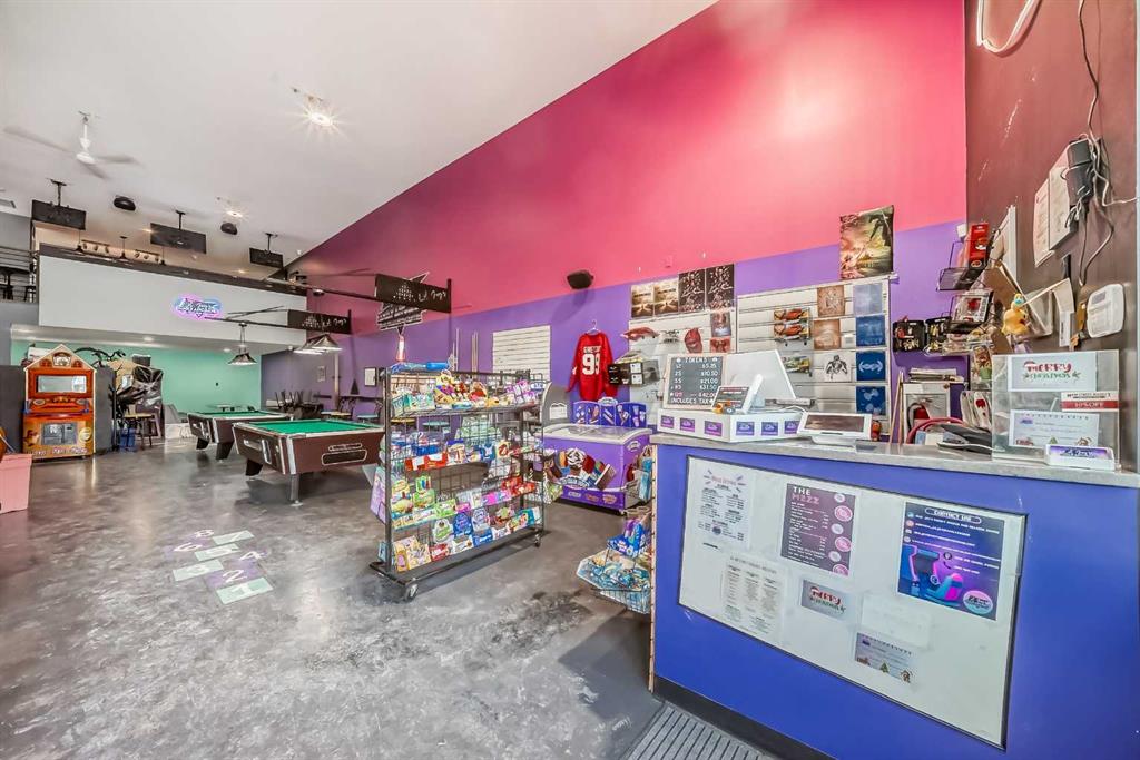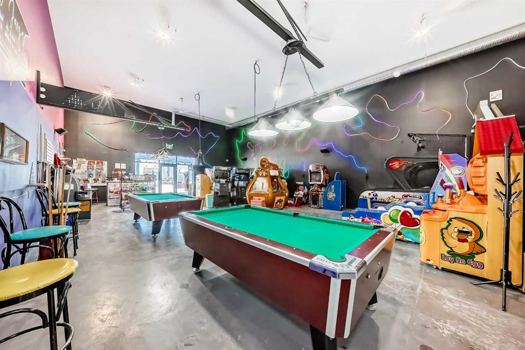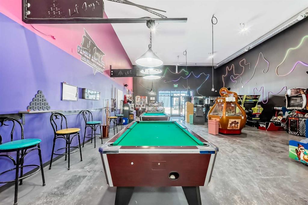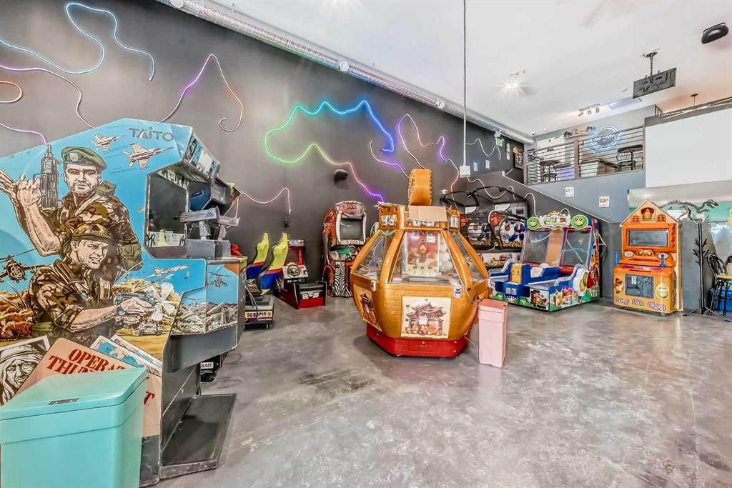Prime commercial location just off Highway #1. This 2,000 sq ft main floor plus 600 sq ft mezzanine commercial condo is currently set up as an arcade entertainment venue with licensed alcohol service and concession/bar area. The space includes two washrooms, air conditioning, on-demand hot water, extensive electrical outlets, high-end stereo system, security system with 8 cameras, and double rear doors for easy equipment loading. The building can be rented empty for $15PSF + $7PSF operating costs. Arcade machines, pool tables, commercial dishwasher, and additional equipment available for purchase up to $100,000. Seller willing to sell equipment and business package in full or in part. Full equipment schedule available upon request. Ample paved parking, affordable condo fees, and steady customer traffic from surrounding businesses. Continue operating as an arcade bar, entertainment lounge, or redevelop the concept. Property also available for sale (A2292532).