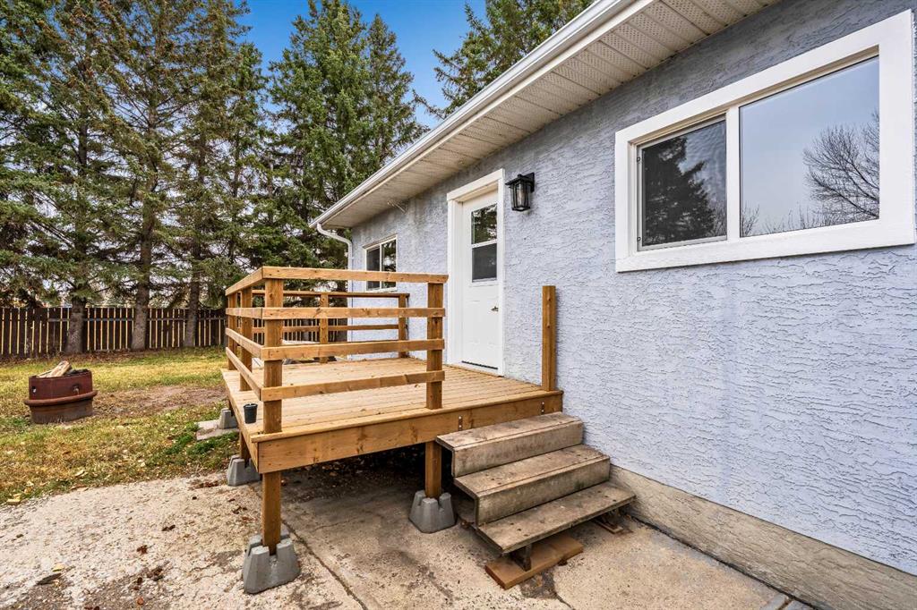 Sitting on a huge pie-shaped lot just under 8,000 sqft, this fully redone property is perfect for anyone who loves space, privacy, and the freedom to work on projects. The double detached garage offers plenty of room for vehicles, tools, or hobbies, while the sprawling backyard is ideal for hosting summer BBQs or relaxing around a cozy firepit. With no homes directly behind and backing onto Brentwood Elementary School, this location truly has it all. The roof was also redone within the last two years. Step inside and you’ll be amazed by the transformation—this home has been completely renovated from top to bottom. Featuring new drywall, vinyl plank flooring throughout, upgraded doors, and all-new appliances, no detail has been overlooked. The kitchen has been fully redesigned with ample cupboard space, a moveable island with extra storage, and modern finishes. It’s truly a chef’s dream, perfect for cooking your favourite meals while entertaining guests. The interior offers a bright, functional layout with two bedrooms plus a versatile den or office, ideal for working from home. Off the den, step onto your newer deck—an inviting spot to enjoy your morning coffee or take a break during the day. The 4-piece bathroom features a soaker tub, walk-in shower, and a stylish vanity with ample storage, all beautifully finished with elegant tile. Down the hall, the spacious laundry room provides plenty of room for organization and everyday convenience. The primary bedroom easily accommodates a king-size bed with additional space for a reading nook or sitting area, while the second bedroom is perfect for a child, guest, or nursery. Outside, the expansive, fully fenced backyard is lined with mature trees, offering privacy and tranquility. The garage includes extra storage, and there’s an additional shed behind it for even more space. Located close to parks, pathways, the Strathmore Aquatic Centre, sports fields, golf course, shopping, restaurants, and the Strathmore District Health Services, this home combines small-town charm with everyday convenience. Homes like this don’t come up often—book your showing today before it’s gone!