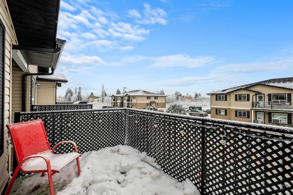 Welcome to this bright and spacious top floor 3 bedroom unit in beautiful Bayside Villas with brand new Central Air Conditioning , offered by Strathmores affordable housing program. This South facing, renovated top floor unit offers a well designed open floor plan, modern finishes and an abundance of light throughout the day. The renovated kitchen features shaker style cabinets, stainless steel appliances, a dedicated dining area, pantry storage and quartz counter tops. Enjoy relaxing in the spacious living room with direct access to your south facing balcony perfect for sunsets, entertaining and BBQ'ing. Down the hall you will find the renovated 4 piece bathroom, in suite laundry at the end of the hall and 3 spacious bedrooms including the large primary bedroom. The parking stall is right out front for your convenience with additional guest parking a few stalls away. The condo fees include Heat, water, Sewer, Garbage, Maintenance, Snow Removal, Lawn, and Professional Management. Bayside Villas puts you close to everything you need for comfortable everyday living. Enjoy easy access to scenic greenspaces like Kinsmen Park, perfect for walks, picnics, and outdoor play, and cool off in the summer at Strathmore Water Park. Families will appreciate being near great schools such as Westmount School, Strathmore High School, and Crowther Memorial Junior High School, as well as several other educational options. Everyday conveniences, local shops, dining, and community recreation facilities are just a short drive or bike ride away, all within Strathmore’s friendly and growing small-town setting. **Buyers must be pre-approved under the Town of Strathmore Perpetual Affordable Housing (PAH) Program.