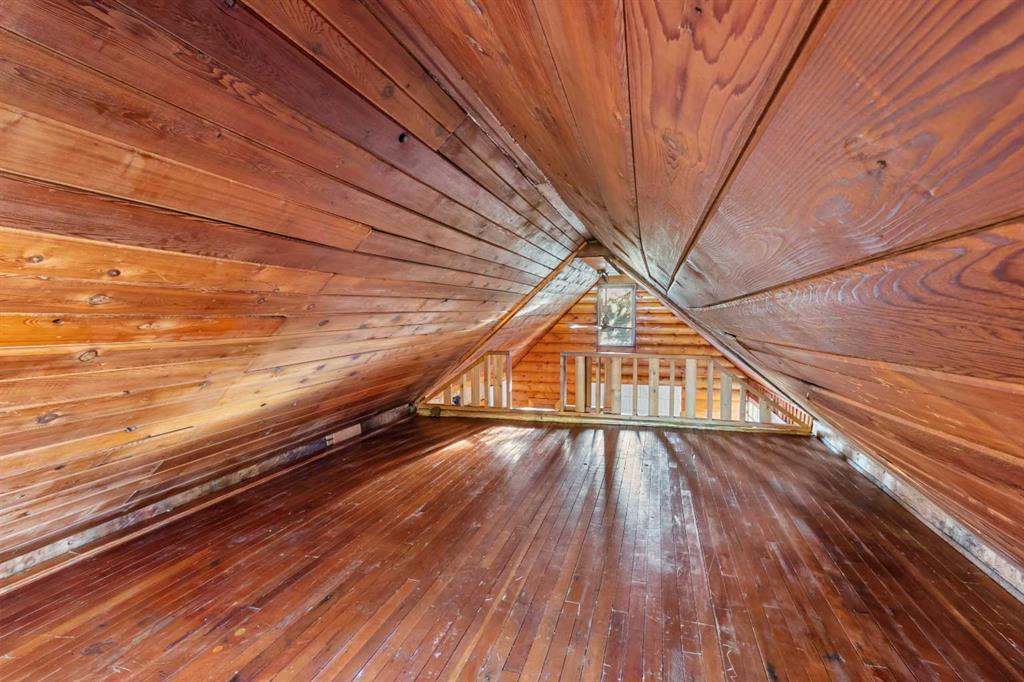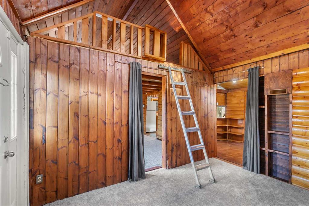 Log cottage in the Palo area of Sylvan Lake on a 50x150 lot. 3 Blocks to the Arena, 4 blocks to the beach and downtown area. Very solid and clean with new carpet in the living room, the rest is all original hardwood. Newer appliances with gas stove and stackable washer and dryer. Loft was used as a bedroom, also the room beside living room was used as a bedroom. Single 24x12 garage and shed.