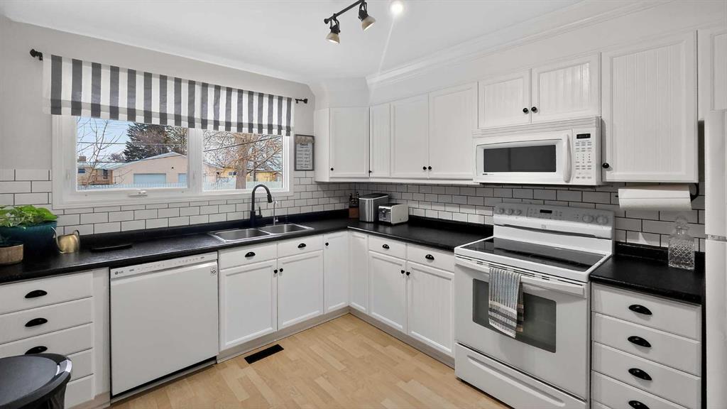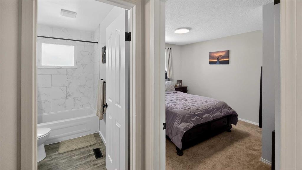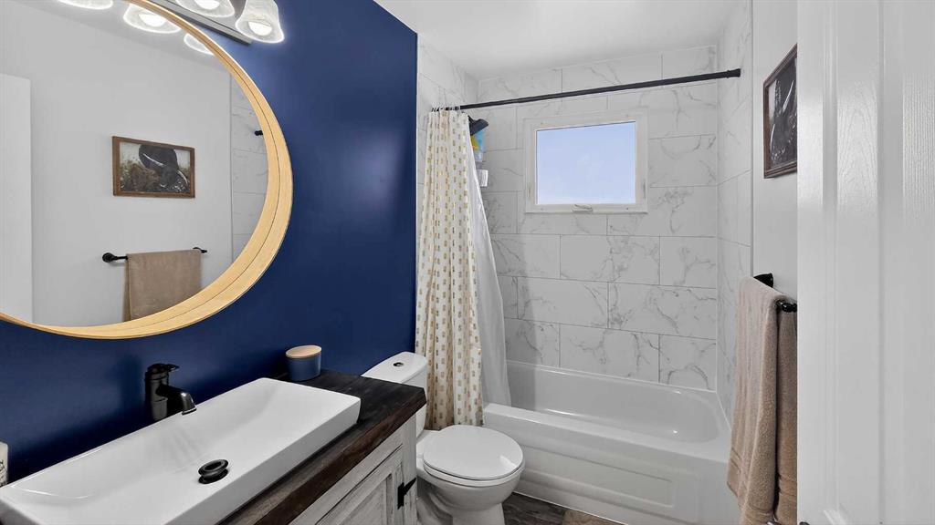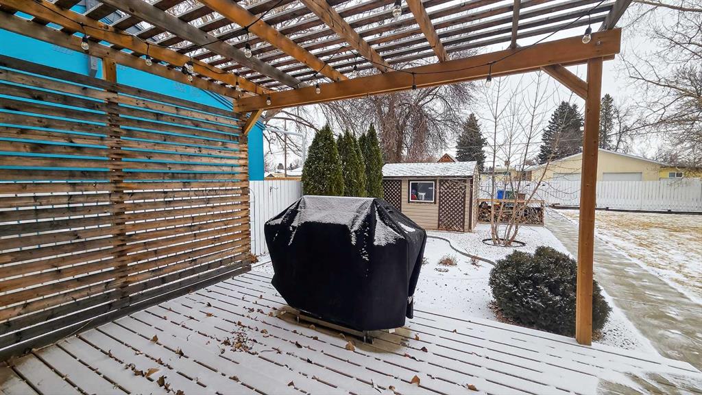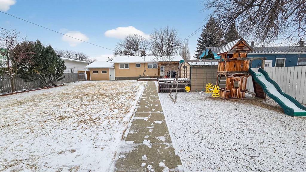 Discover this beautiful 3-bedroom, 2-bathroom bungalow nestled in the vibrant community of Taber. An excellent choice for families, this home features three spacious bedrooms on the main floor. The main floor showcases a bright and functional kitchen complete with a charming coffee bar, a comfortable dining area, and a cozy living room highlighted by a stunning navy blue feature wall that adds character and warmth. You'll also find a full 4-piece bathroom conveniently located on this level. Step downstairs to find a large family or recreation room, perfect for entertaining or relaxation, along with another bathroom that includes laundry facilities and a bonus room that could be converted to a fourth bedroom. Ample storage is available throughout the home. Outside, the expansive backyard is ideal for summer BBQs and offers plenty of space for children to play. The property sits on a generously sized lot, providing the potential to build a garage in the back if desired. Additionally, a shed offers convenient storage for your lawn and garden tools. Don't miss out on this fantastic opportunity! Contact your favorite agent to schedule a showing today.