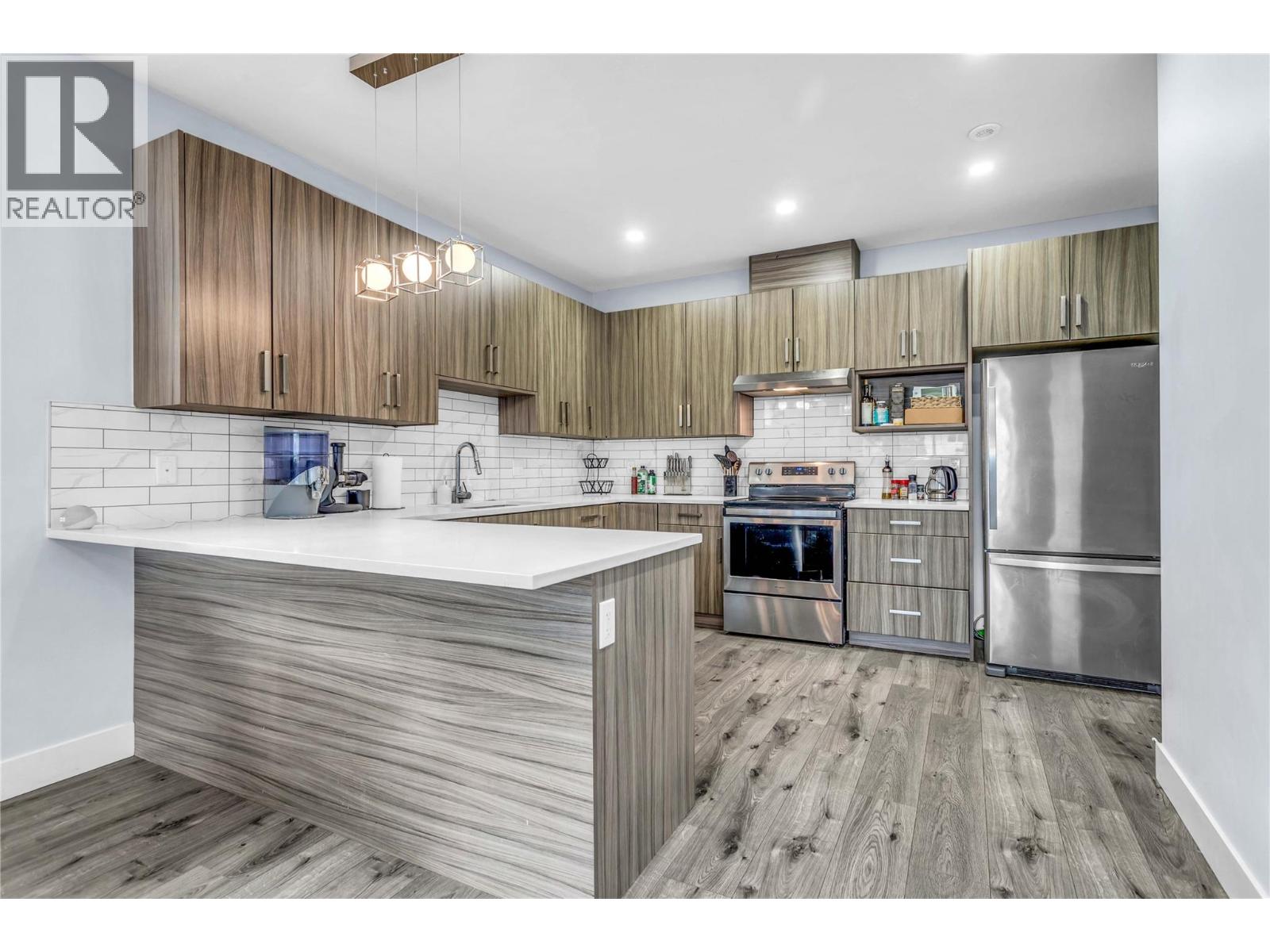GREAT VALUE IN A GREAT LOCATION!! Steps to Okanagan College, Kelowna General Hospital, Elementary/Middle schools and the trendy SOUTH PANDOSY VILLAGE! Bright, functional 3 bed/2.5 bath townhome offers an open concept kitchen/dining/living area, with a powder room and laundry room on the main level. A spacious primary bedroom with a 3 pce ensuite, two additional bedrooms plus another full bathroom on the Upper level. Features include quartz counters, SS appliances, electric fireplace, convenient Navien on-demand hot water, and durable vinyl plank flooring throughout. A neutral color palette paired with simple finishes creates a perfect backdrop for you to make this home your own. Enjoy a private garage plus ample street parking. The enclosed patio/courtyard offers space to unwind, or room for a small garden. Set on a quiet street near schools (Kelowna Secondary, Raymer Elementary, KLO Middle and OK College), Okanagan Lake, and just a short stroll to groceries, restaurants, retail, cafes, transit & daily essentials. Ideal for young professionals or small families —offering central, low-maintenance living in the heart of the Lower Mission!!