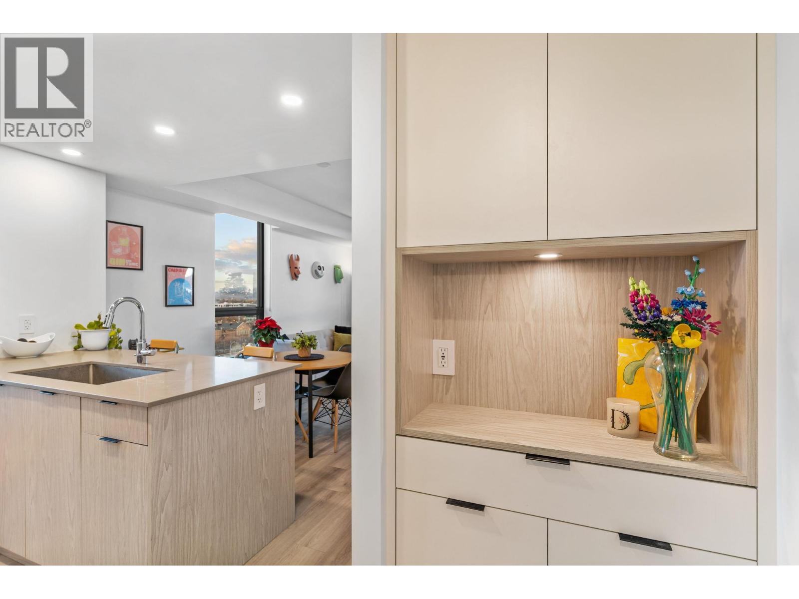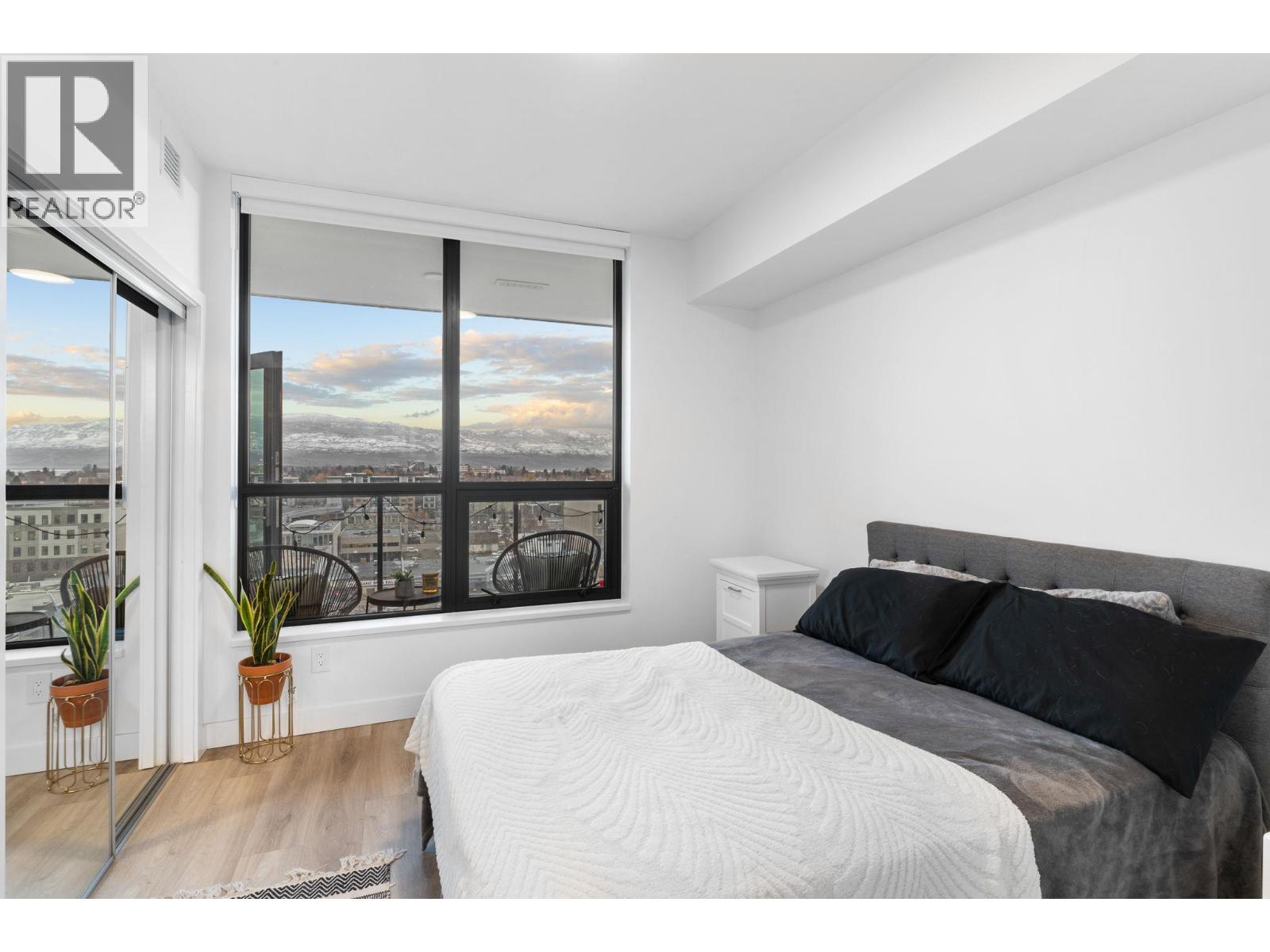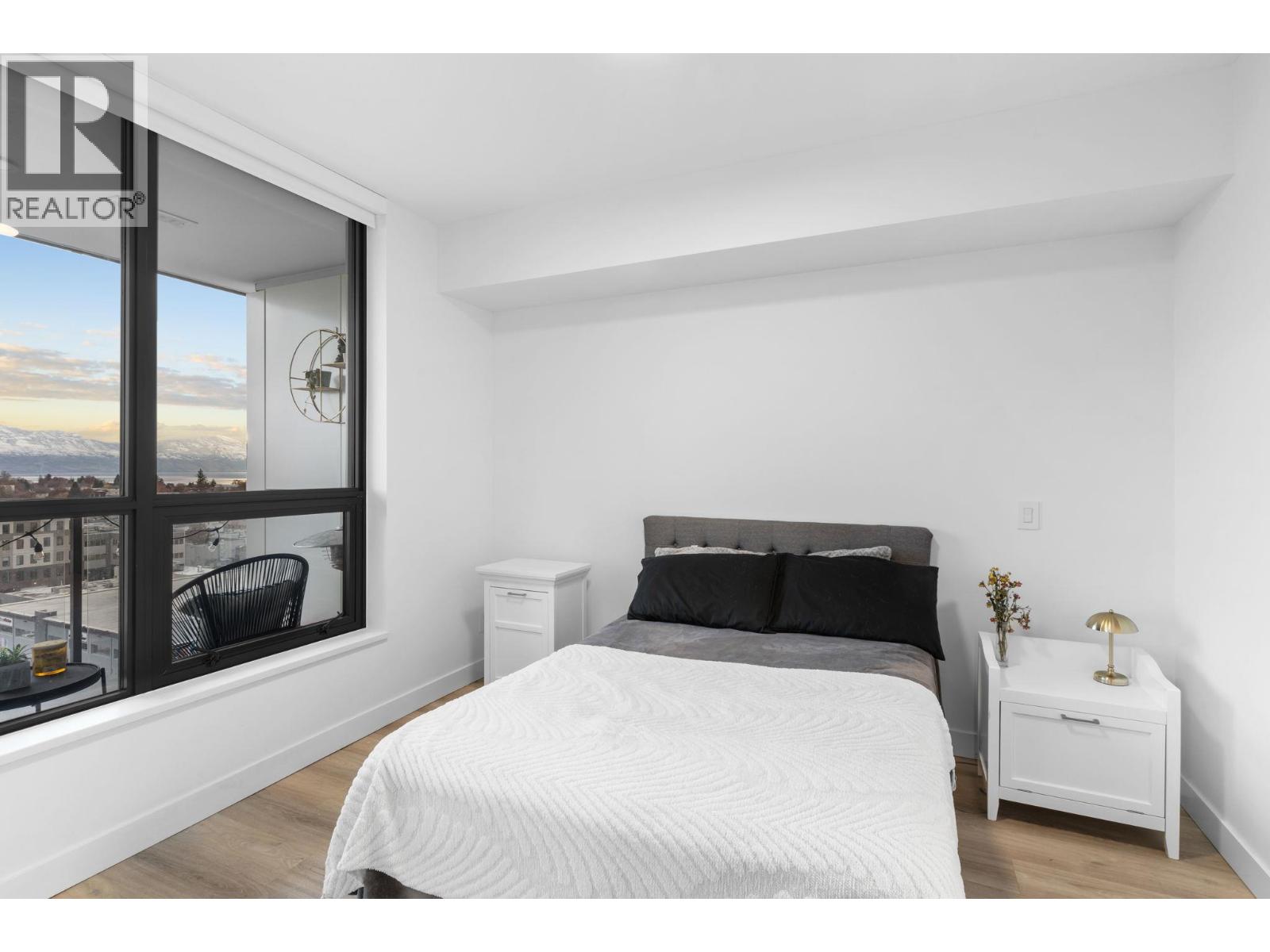 Welcome to Bertram Block – a 2024 brand-new 2 bed, 2 bath condo in the heart of downtown Kelowna with lake, city and valley views from the 10th floor. This bright southeast corner home offers 805 sq. ft. of smart design, a split bedroom layout for privacy, air conditioning, large windows and a sleek modern kitchen with quartz countertops and stainless steel appliances. Step onto your covered deck and enjoy your morning coffee with a view. Resort-style amenities include a rooftop heated pool and spacious hot tub with 360 degree views, outdoor BBQ and lounge areas, bocce ball court, community gardens, fitness centre, dog run and dog wash, secure bike room, plus multiple indoor lounges and workspaces. One secure parking stall and a dedicated storage locker are included. Live steps to the lake, waterfront paths, groceries, shopping, Pilates and some of Kelowna’s best restaurants. Lock-and-leave convenience, Mission Group quality, and an unbeatable walkable lifestyle – this is downtown living done right.