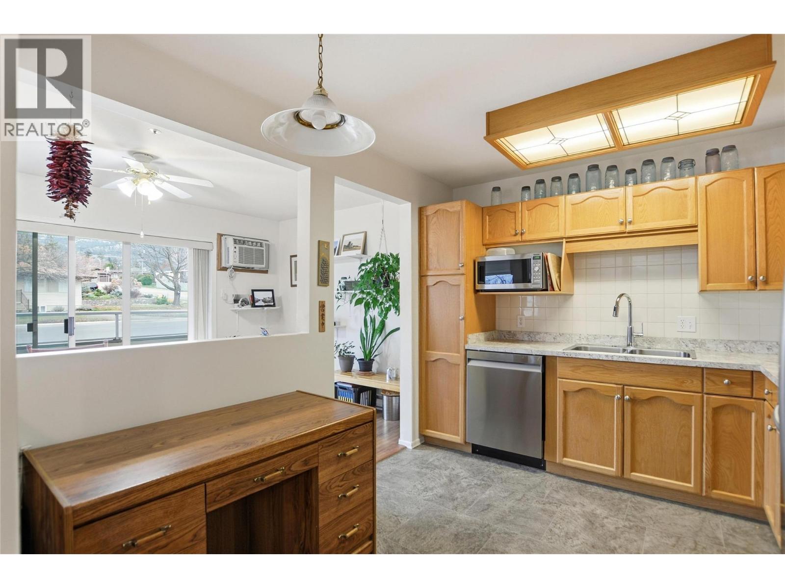 CLICK TO VIEW VIDEO: Welcome to Unit 105 at Panorama Ridge, a spacious and well-maintained ground-floor corner condo in a quiet 55+ community centrally located in Penticton. Offering over 1,250 sq ft of living space, this bright two bedroom, two bathroom home combines comfort, accessibility, and convenience. The open living and dining area is filled with natural light and features a cozy gas fireplace, making it ideal for both everyday living and entertaining. Large windows capture peaceful valley views, while upgraded flooring, appliances, and window shades add a clean, modern touch throughout. The primary bedroom includes a walk-in closet and private ensuite, creating a comfortable retreat, while the second bedroom and full bathroom offer flexibility for guests or hobbies. Additional highlights include in-suite laundry, a dedicated storage room, and a private outdoor patio; perfect for morning coffee and fresh air. This unit also offers secure parking and a storage locker conveniently located on the same floor, a rare and practical bonus. Just steps from Penticton Regional Hospital, shopping, transit, and the city core, this is an ideal option for those looking to simplify without sacrificing space or location.