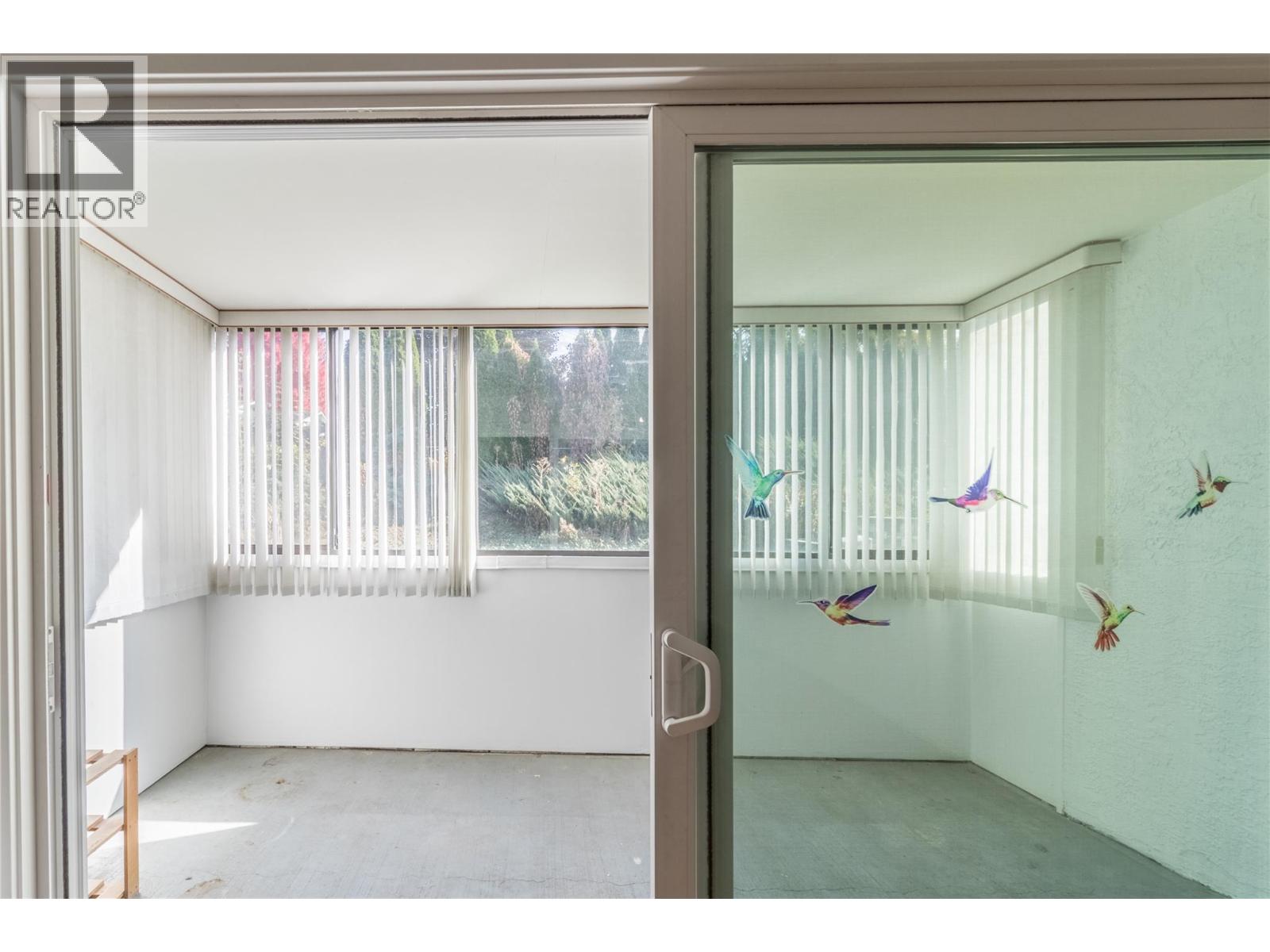 Welcome to Kelowna House, 445 All Star Court, Unit #106, a well-kept community with an outdoor pool and a relaxed vibe. This freshly painted, move-in ready 673 sq.ft. ground-floor unit offers open-concept living, a cheater 4-piece bath, and an east-facing enclosed glass deck, a private, year-round retreat surrounded by natural greenery. Features include three appliances, wall A/C, and one secure underground parking stall. Strata fees are quite reasonable, covering access to the pool and common areas. Quietly tucked within the complex, this suite offers comfort and convenience in equal measure.