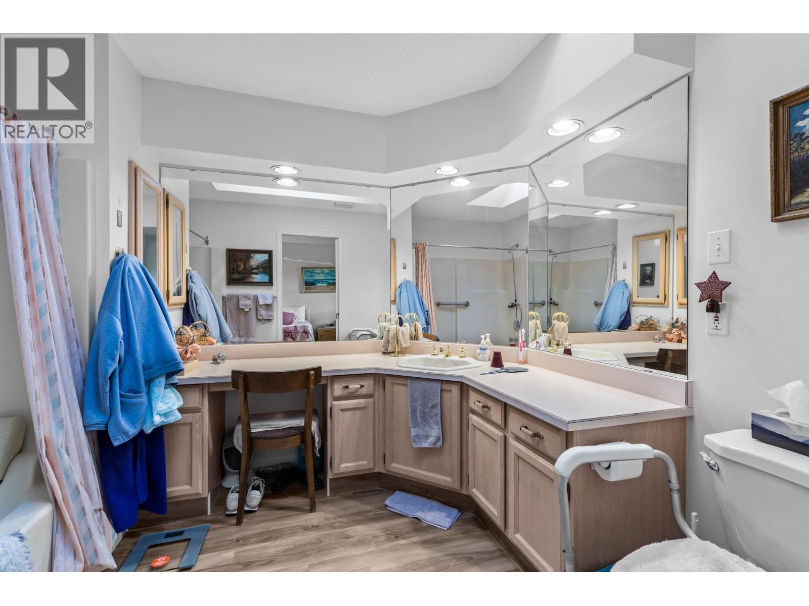 Welcome to Sandstone, a sought-after gated 55+ community offering resort-style living in the heart of the city. This meticulously maintained rancher features 2 bedrooms and 2 bathrooms with a bright and spacious floor plan. Thoughtfully updated with new laminate flooring, the home boasts both a large living room and a cozy family room, each enhanced by a gas fireplace and abundant natural light. The kitchen showcases maple shaker cabinetry, a functional island, and convenient access to your private, south-facing covered patio—perfect for morning coffee or evening relaxation. The generous primary suite includes a walk-in closet and a 3-piece ensuite. This home has been well cared for with numerous upgrades including: new windows and sliding door (2022), Poly B plumbing replaced (2016), laminate flooring (2019), furnace & hot water tank (2021), garage door (2023), and gutter Leaf Filter system (2023). Residents of Sandstone enjoy an active lifestyle with tons of amenities including a clubhouse, indoor and outdoor pools, hot tub, fitness center, library, and tranquil water features. A move-in ready home in a vibrant, welcoming community—this one is not to be missed!