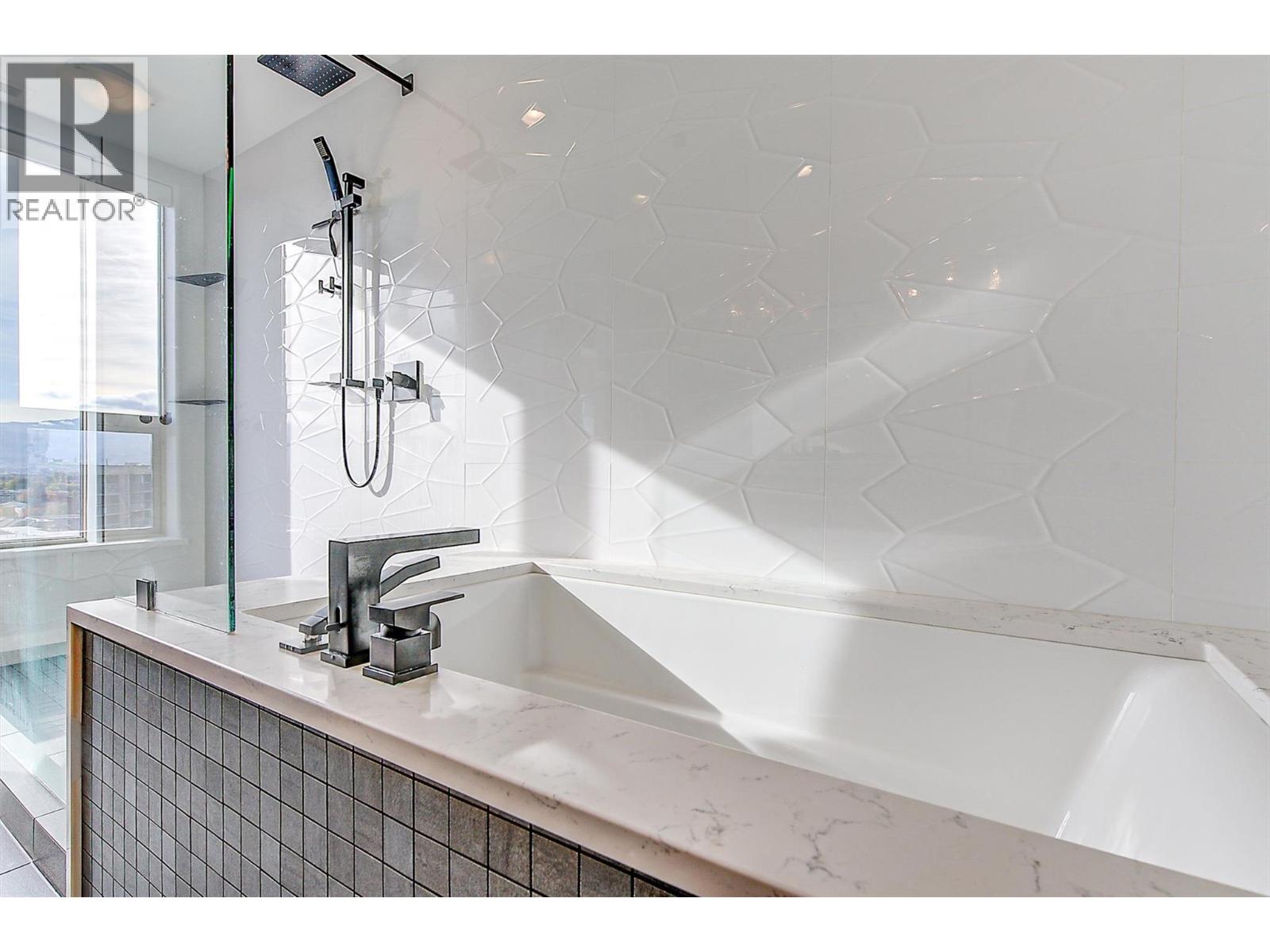 Over 2,000+sq.ft of living space with panoramic, unobstructed lakeview & highly coveted SW exposure define this luxury Kelowna condo. Exceptionally low strata fees and one of Kelowna’s rare suites offering full perimeter windows– 3 walls of magnificent views without neighbouring units! Each room captures the Okanagan scenery, double-door primary bed, walk-in closet & custom fireplace. Steps to downtown, with resort-style amenities POOL, HOT TUB, SAUNA, STEAM ROOM & FULLY EQUIPPED GYM, extra-large PRIVATE STORAGE UNIT immediately beside your 2 SECURE UNDERGROUND PARKING STALLS. Bright oversized layout 3 beds, 3 baths & glass-enclosed den with stunning tiled accent wall – perfect for home office & video conferencing. Fully reno’d: premium professional-grade kitchen appliances, soft-close cupboards/drawers, new baths, extensive custom tile-work, flooring, dedicated bar with wine fridge, POWER blinds for windows via phone & remote-control, quartz counter tops & backsplashes, 2019 heat pumps. Large balcony, pergola & gas BBQ hookup overlooking downtown & the lake— best sunset views. ‘No-Frills’ Grocery Store & ‘Anytime Fitness’ immediately attached to the building. Easy walk to downtown, entertainment, & beach. Efficiently equipped with 3 large elevators, this building has community-minded residents, and durable steel-&-concrete construction for exceptional soundproofing. Live in one of Kelowna’s best-managed buildings. Unit is unoccupied & immediate possession available.