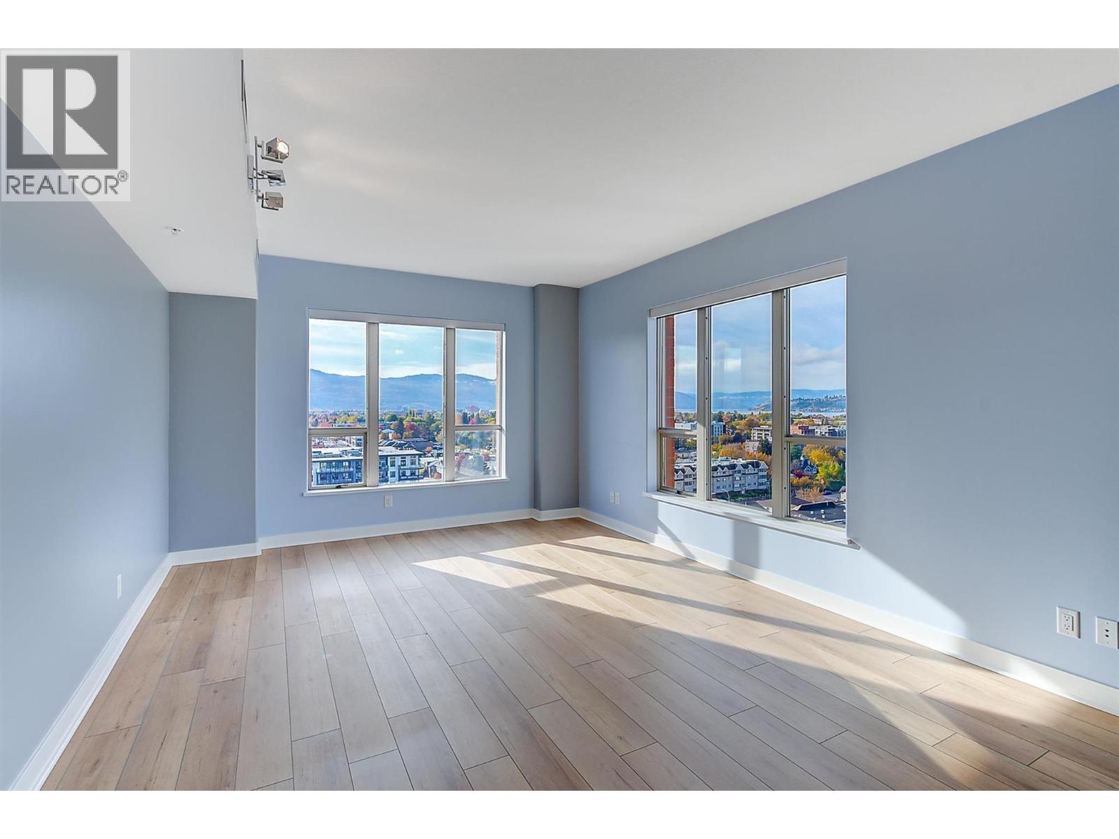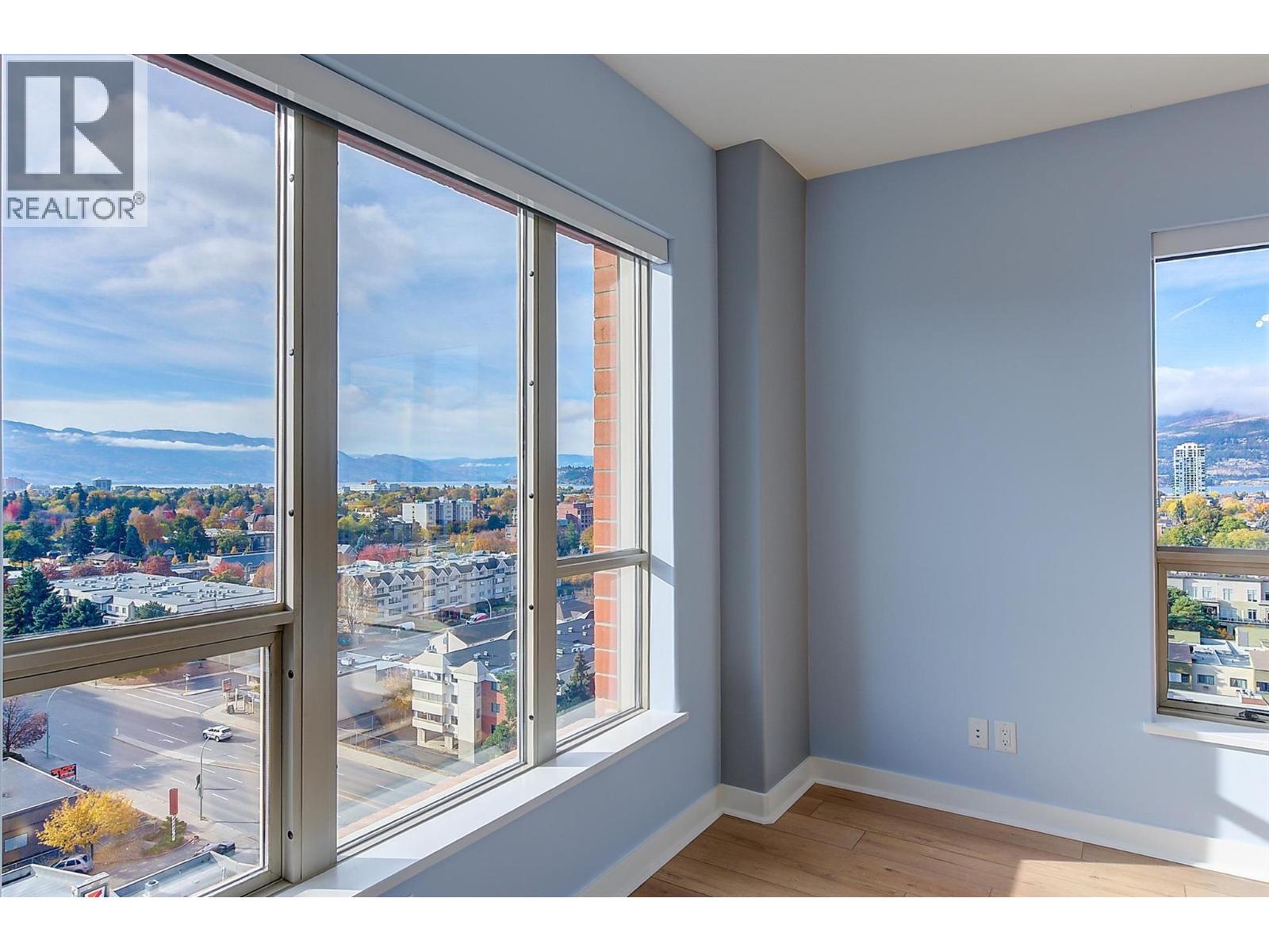 Panoramic, unobstructed lakeview with highly coveted SW exposure define this luxury Kelowna condo. Every room captures the Okanagan scenery, double-door primary retreat with walk-in, extra closet & custom fireplace. This condo is 2,000+sq.ft & exceptionally low strata fees, it is also one of Kelowna’s rare suites offering full perimeter windows -no shared walls with other units! Steps to downtown, with resort-style amenities: POOL, HOT TUB, SAUNA, STEAM ROOM & FULLY EQUIPPED FITNESS CENTRE. Large private storage unit right beside your 2 secure underground parking stalls. Bright, oversized layout 3 large beds, 3 baths & a glass-enclosed den with beautifully tiled accent wall – perfect for home office video conferencing. Fully renovated; new kitchen with high-end professional-grade appliances, soft-close cupboards/drawers, updated baths, new flooring, dedicated bar with wine fridge, POWER blinds for every window via phone or remote, quartz counters & backsplashes, extensive custom tile & new heat pumps (2019). LArge balcony with pergola & gas BBQ hookup overlooking downtown and the lake—perfect for sunset views. No-Frills Grocery Store immediately outside the back door, and an easy walk to downtown for coffee, entertainment, & beach. Minimal waiting with 3 large elevators, this building has wonderful residents, & durable steel-&-concrete construction for exceptional soundproofing. Live in one of Kelowna’s best-managed buildings with some of the lowest strata fees in the city.