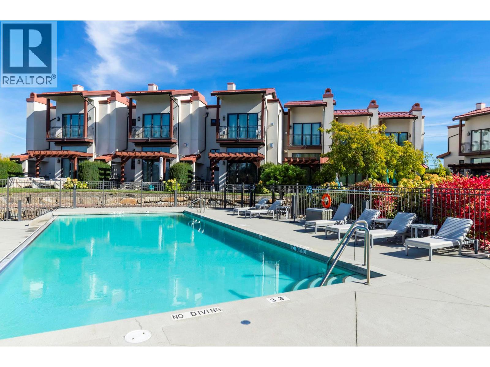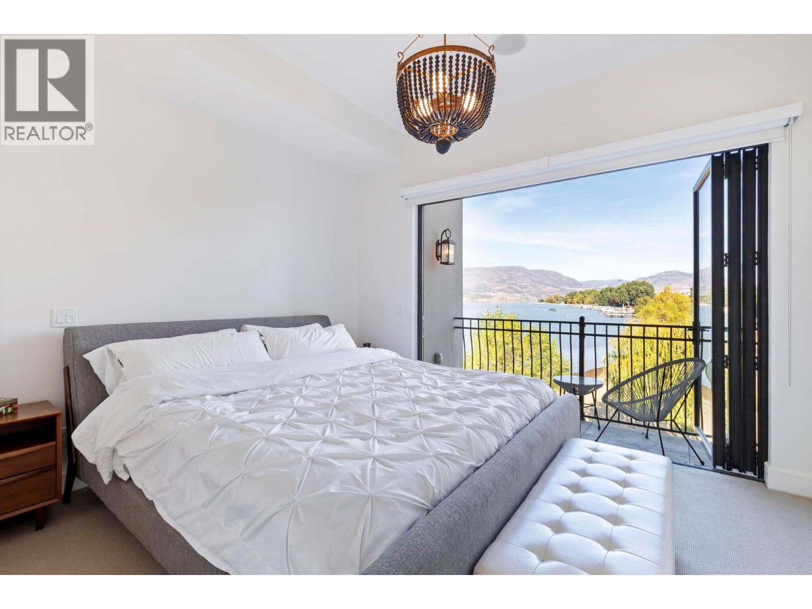 Live the ultimate Okanagan lakefront lifestyle at Lakeshore at Manteo! This luxurious 3 bedroom, 3 bathroom townhome includes your own private boat slip and lift, offering effortless access to Okanagan Lake right from your doorstep. Inside, you’ll find soaring ceilings and a bright, open concept layout with an elevated kitchen and dining area overlooking the living space below. The chef inspired kitchen features a Wolf gas range, premium appliances, an elegant recessed wine display with accent lighting, a wine fridge, and quartz countertops, blending modern elegance with everyday functionality. Expansive folding glass doors open to a private patio overlooking Rotary Beach and the lake, creating a seamless indoor outdoor living experience. Upstairs, the primary suite provides a true retreat with a private balcony overlooking the water, perfect for morning coffee or unwinding at sunset. Two additional bedrooms and a full bathroom complete the upper level. With built in speakers throughout the home and patio, every detail is designed for entertainment and relaxation. There’s also parking for up to three vehicles, a rare luxury in a waterfront community. Enjoy resort style amenities including an outdoor pool, hot tub, and lakeside fire pits, all just steps from the sand and shoreline. With direct access to Rotary Beach and Okanagan Lake in Kelowna’s coveted Lower Mission, you’re minutes from Gyro Beach, the Eldorado, and Manteo Resort. This is lakeside living at its finest.