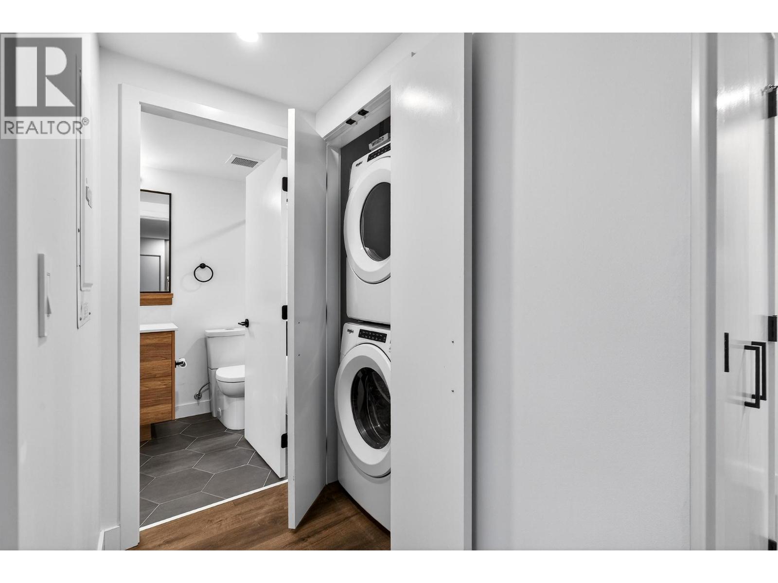 Right in the heart of Downtown Kelowna, this stylish one-bedroom condo in the prestigious Brooklyn high-rise offers a truly walkable urban lifestyle just steps from Okanagan Lake, dining, shopping, and more. Designed with modern living in mind, expansive windows fill the home with natural light while showcasing unobstructed east-facing mountain views of Dilworth, Knox and Black Mountain from the covered balcony. Inside, the thoughtfully designed layout features contemporary finishes including vinyl plank flooring and quartz countertops. The sleek kitchen comes fully equipped with a refrigerator, electric cooktop, oven, microwave, and dishwasher, while the open living space flows effortlessly for both everyday living and entertaining. The four-piece cheater ensuite features a tiled tub surround, and a convenient stacking washer and dryer is neatly tucked into the hall closet. Additional highlights include window coverings and efficient forced-air heating and cooling for year-round comfort. Brooklyn offers an exceptional collection of amenities, including a rooftop patio with a communal BBQ area and kitchen, a stunning rooftop terrace with panoramic lake and city views, a stylish resident lounge and social space, a dog wash station, secure underground parking, and bike storage. With ground-floor retail and a pet-friendly policy, this is modern downtown living at its finest - perfect for professionals, investors, or those seeking an elevated urban lifestyle!
