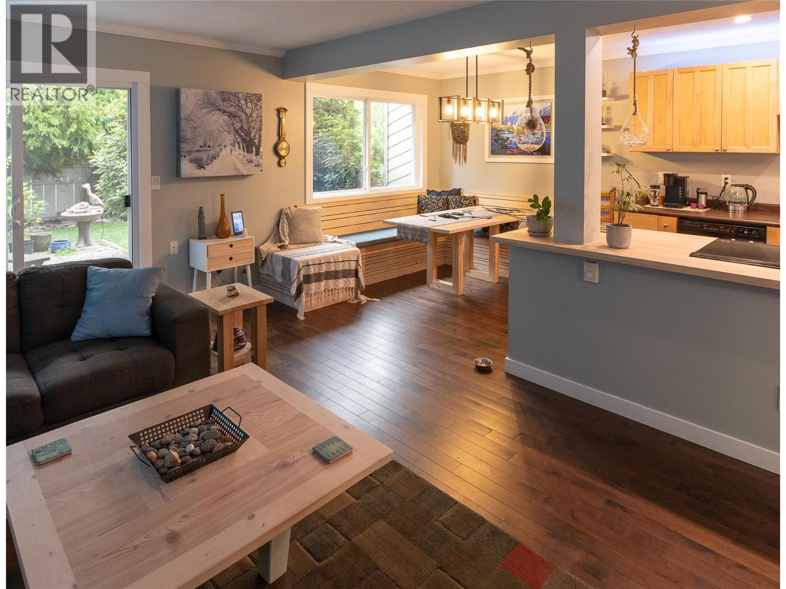 Welcome home to Franklyn Court! This 2 level end unit townhome offers 3 bedrooms, 2 bathrooms, a large fenced private yard and comes with two parking stalls. Upon entry you are welcomed to the open concept kitchen, living and dining room complete with hardwood floors and newer paint. The kitchen has been tastefully remodelled with a new island countertop, lighting, new fridge and stove and the custom made banquette in the dining room is heated to keep you cozy on chilly days. On the main floor there is also a half bathroom, full laundry room that provides plenty of space and for even more storage there is a 4’ crawlspace beneath the entire main floor. The freshly painted stairwell will lead you to the second floor where you will find the 3 bedrooms and full bathroom. Boasting beautiful landscaping and privacy, the yard is in the end townhome backing onto Badke Road, offering a quieter location to enjoy the patio and bbq area. There are also a shed in the side yard for all your outdoor storage needs plus it is one of the largest yards in the complex. All the windows, front door and patio door have been replaced as well. Franklyn court is family friendly, comes with 2 parking stalls, low strata fees, pets welcome with some restrictions, and centrally located to Ben Lee Park, schools, shopping and transit. This is a rare find, book your appointment today!