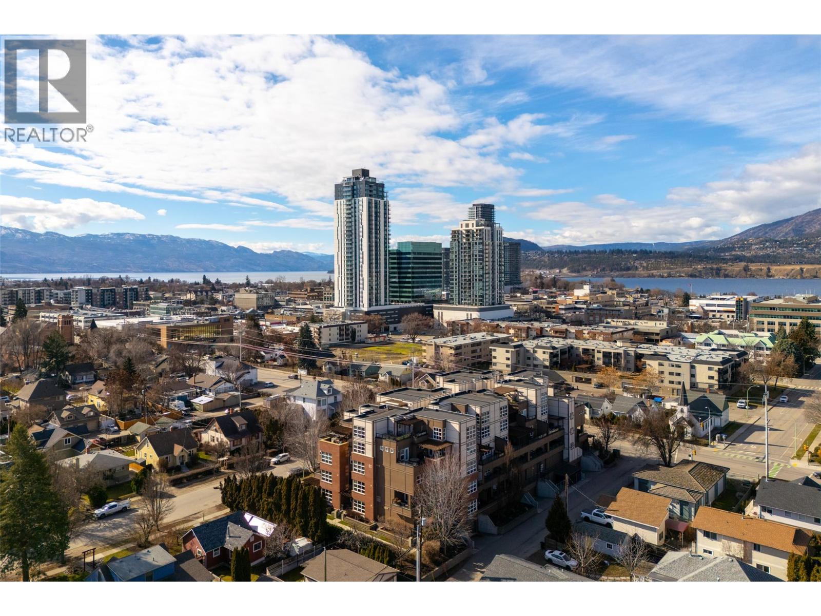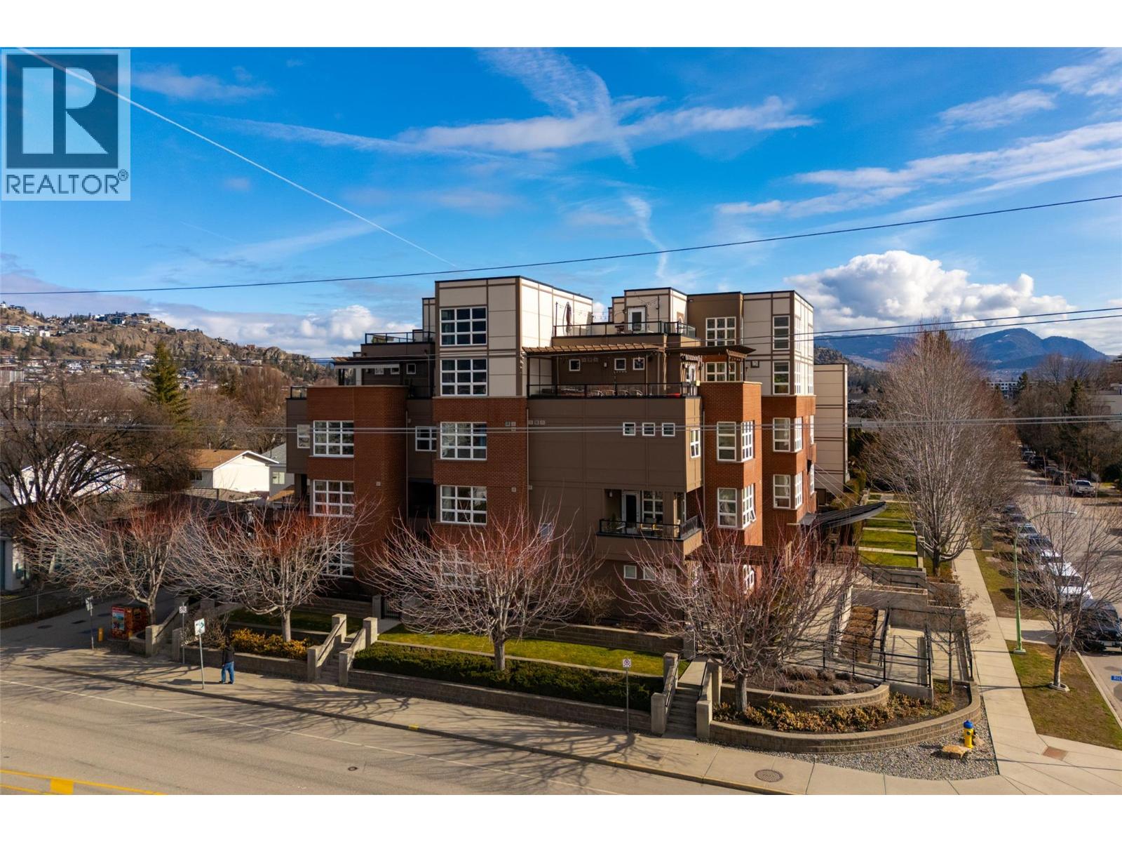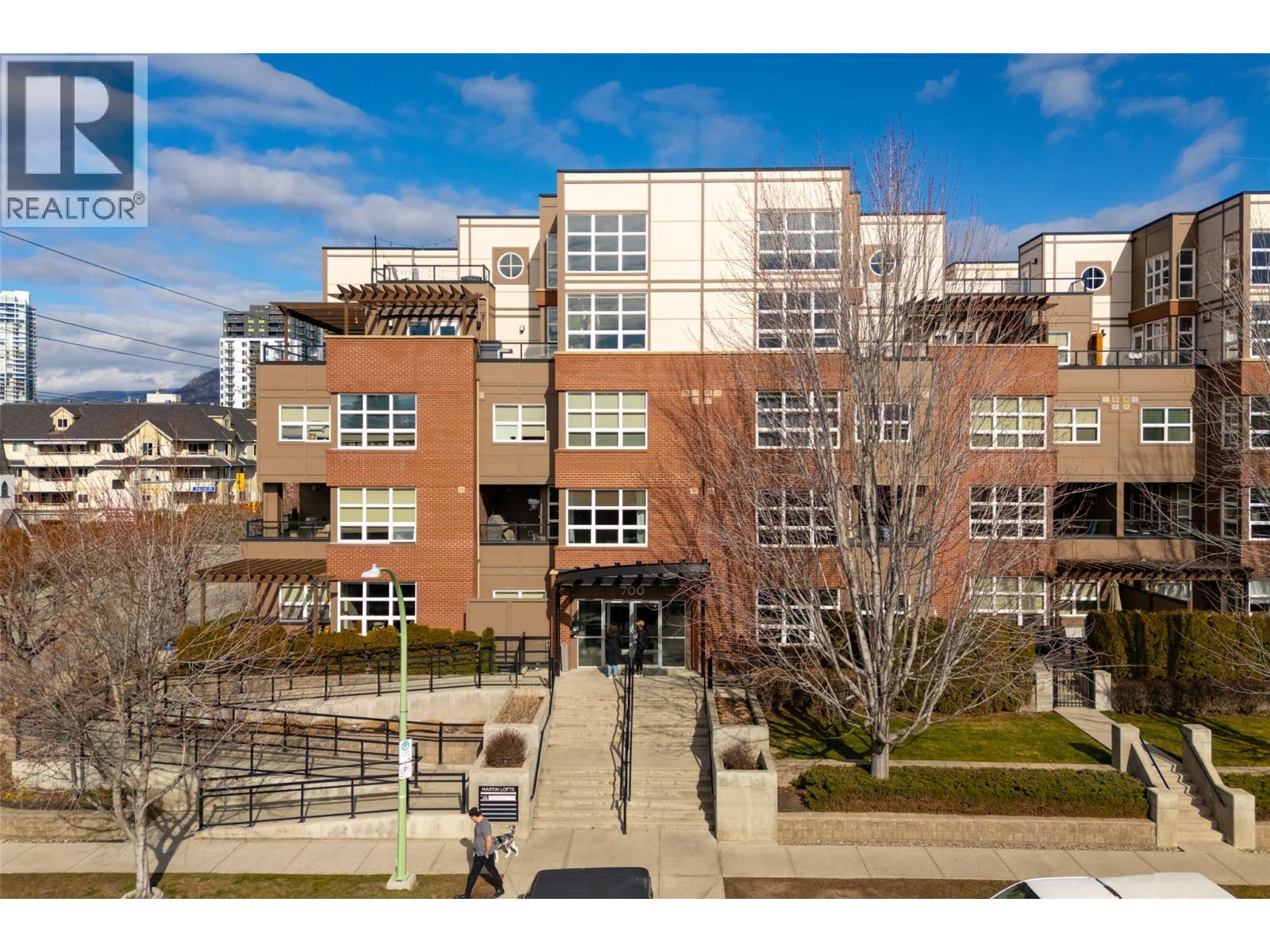 Welcome to Martin Ave Lofts, where modern design meets downtown Kelowna living. This stylish 2 bed, 3 bath loft-style condo offers over 1,350 sq. ft. across two levels, providing a rare sense of space and separation in apartment living. The open-concept main floor features hardwood floors, large west-facing windows, and a bright, contemporary kitchen with stainless steel appliances, stone countertops, a glass-tile backsplash, an undermount sink, and crisp white cabinetry. The living area includes a cozy fireplace and opens to a covered patio with a brick feature wall, plus a convenient powder room on the main level. Upstairs, you’ll find a spacious primary bedroom with custom closet built-ins and a beautifully finished ensuite, along with a generous second bedroom and in-suite laundry. This well-maintained building offers heated underground parking, a storage locker, a secure bike room, and a fitness centre. Rentals allowed and one pet permitted with no breed or size restrictions. Located in a trendy downtown Kelowna neighbourhood, just steps to restaurants, cafes, the lake, and everything the downtown core has to offer. Leave the car parked and enjoy the ultimate walkable lifestyle.