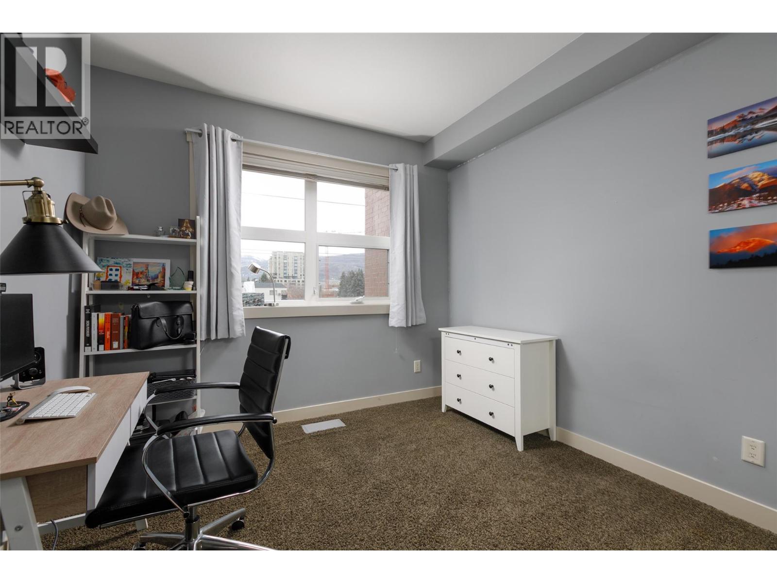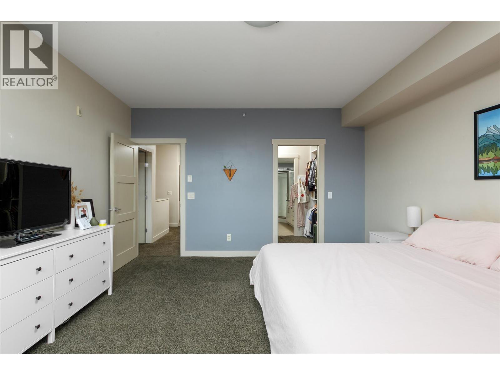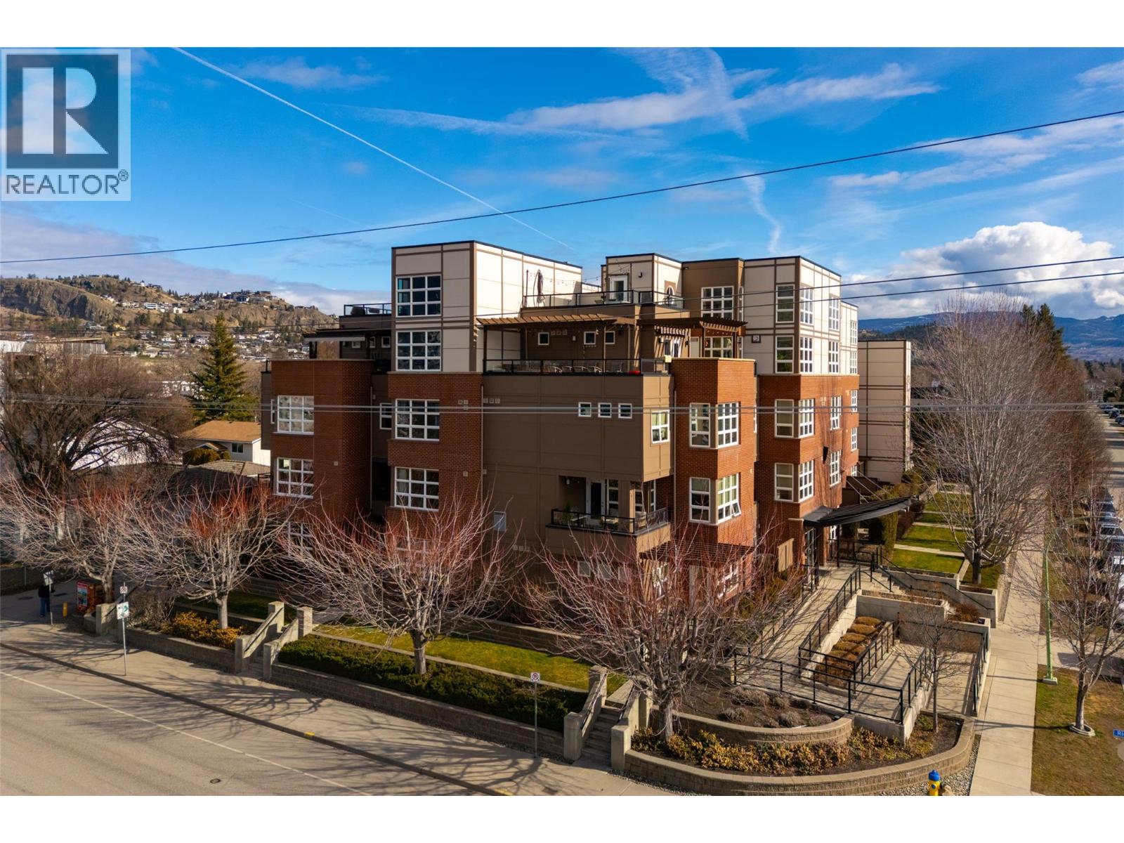 Welcome to Martin Ave Lofts, where modern design meets downtown Kelowna living. This stylish 2 bed, 3 bath loft-style condo offers over 1,350 sq. ft. across two levels, providing a rare sense of space and separation in apartment living. The open-concept main floor features hardwood floors, large west-facing windows, and a bright, contemporary kitchen with stainless steel appliances, stone countertops, a glass-tile backsplash, an undermount sink, and crisp white cabinetry. The living area includes a cozy fireplace and opens to a covered patio with a brick feature wall, plus a convenient powder room on the main level. Upstairs, you’ll find a spacious primary bedroom with custom closet built-ins and a beautifully finished ensuite, along with a generous second bedroom and in-suite laundry. This well-maintained building offers heated underground parking, a storage locker, a secure bike room, and a fitness centre. Rentals allowed and one pet permitted with no breed or size restrictions. Located in a trendy downtown Kelowna neighbourhood, just steps to restaurants, cafes, the lake, and everything the downtown core has to offer. Leave the car parked and enjoy the ultimate walkable lifestyle.