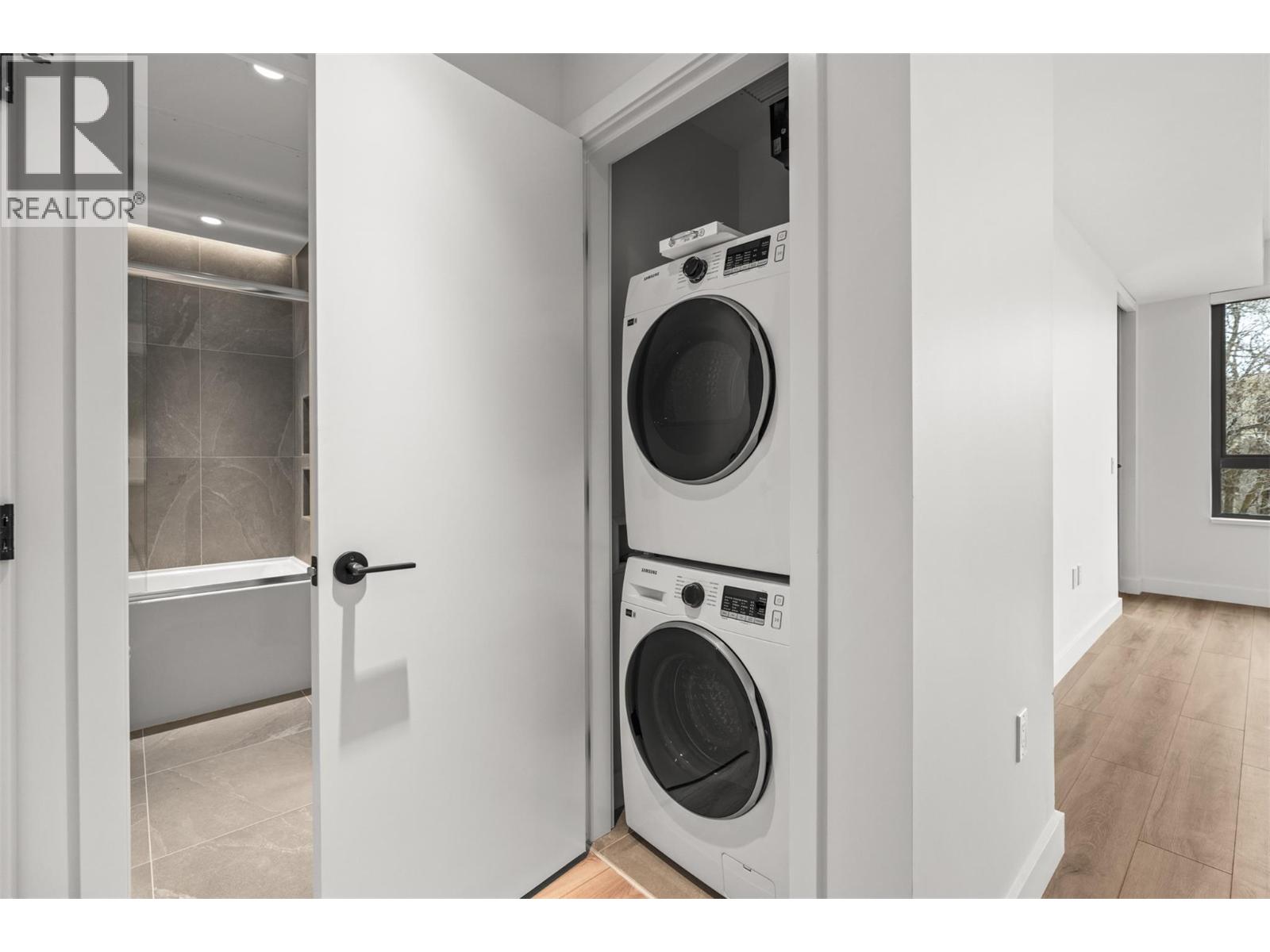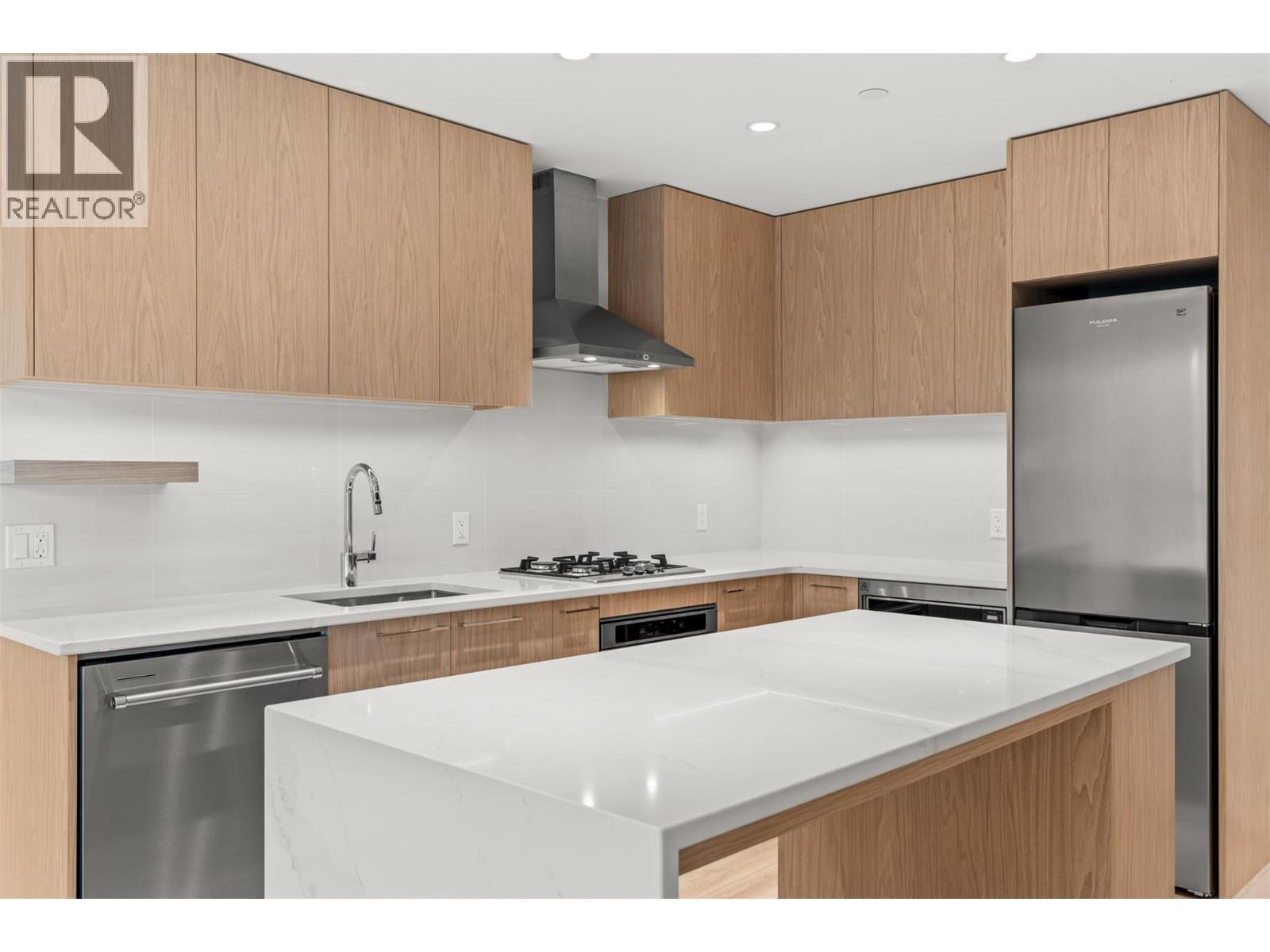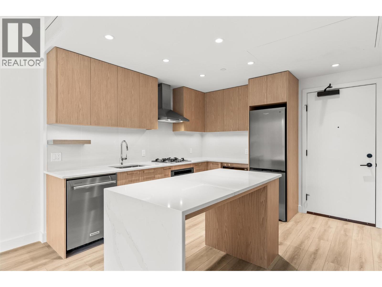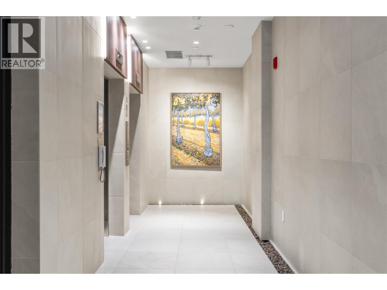 Presenting ALMA, built by Mission Group. This luminous, 3rd floor east-facing 1-bed, 1-bath residence welcomes gorgeous morning sun, offering 540 sqft of interior space plus a 100 sqft terrace, effortlessly blending purposeful design with upscale finishes in the heart of the Lower Mission. The impressive kitchen showcases streamlined flat-panel wood-grain cabinetry, a bold quartz waterfall dining island, and premium stainless-steel appliances. The open-concept plan is ideal for daily living and seamless entertaining, elevated by oversized windows that bathe the home in natural light, durable laminate flooring throughout the main living areas, and soft woven broadloom carpeting in the bedroom. The primary suite features a walk-through closet, while the ensuite is appointed with large-format tile, a rainfall shower, custom-tiled niche, and gentle ambient lighting that creates a spa-like retreat. Added features include roller shades on every window, individually controlled heating and cooling, and one secure underground parking stall. Residents enjoy access to amenities including an 8,000 sqft lakeview terrace with firepits, BBQs, and community gardens, along with a fully equipped fitness centre, dog wash, and bike maintenance station. With a walk score of 93, you’re moments from transit, KGH, the shops and dining of vibrant Pandosy Village, and the shoreline of Okanagan Lake. Sqft and room sizes are approximate and may vary. This newly constructed home is move-in ready.
