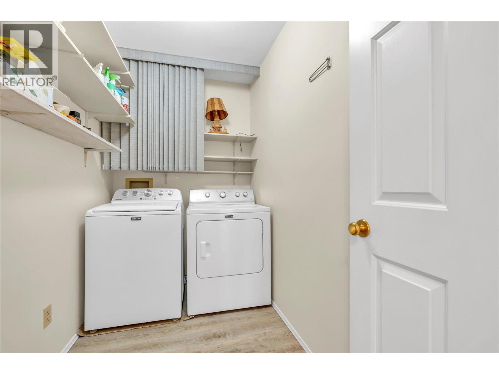 This well-maintained corner unit on the top floor offers pleasant views and approximately 1,300 sq. ft. of living space – you won't feel squeezed in, as the home is notably larger than most two-bedroom condos in Penticton. The convenient and peaceful location places you within a short walk of IGA and transit, with Penticton's new general hospital nearby. The bright floor plan maximizes functionality with a spacious primary bedroom featuring a walk-in closet and a 4-piece ensuite. The generous kitchen flows openly to the dining and living room, where a cozy gas fireplace creates warmth and ambience. Glass doors lead to a 115 sq. ft. enclosed deck perfect for year-round enjoyment. A second well-proportioned bedroom and a dedicated laundry/utility room round out this exceptional condo. Recent updates include new carpeting and flooring throughout, ensuring move-in ready comfort. Your investment includes one secured parking stall and storage locker for added convenience. Residents and guests can gather in the building's social room to enjoy community connections. Building is 55+ age restricted. No pets allowed. Rentals permitted.