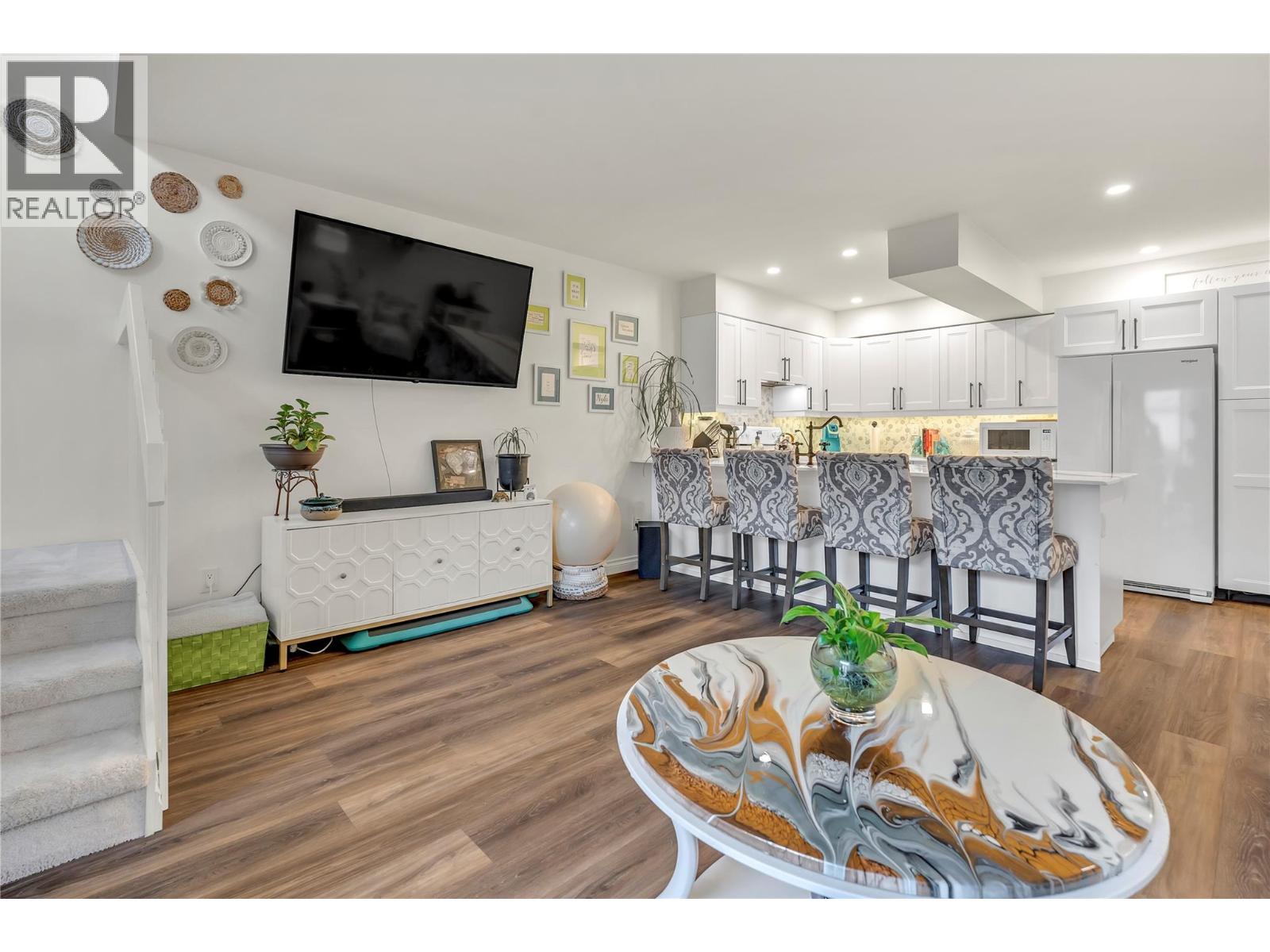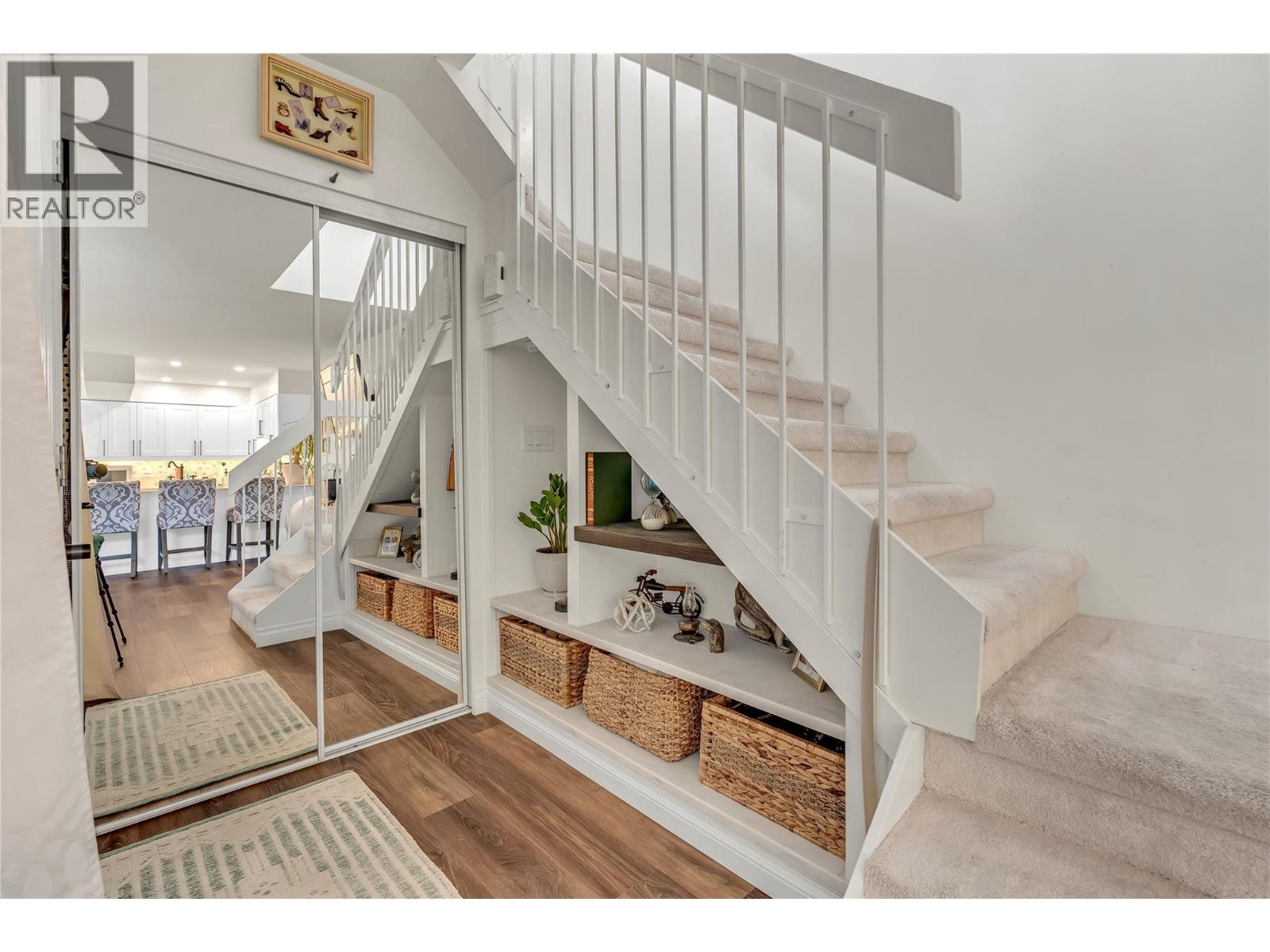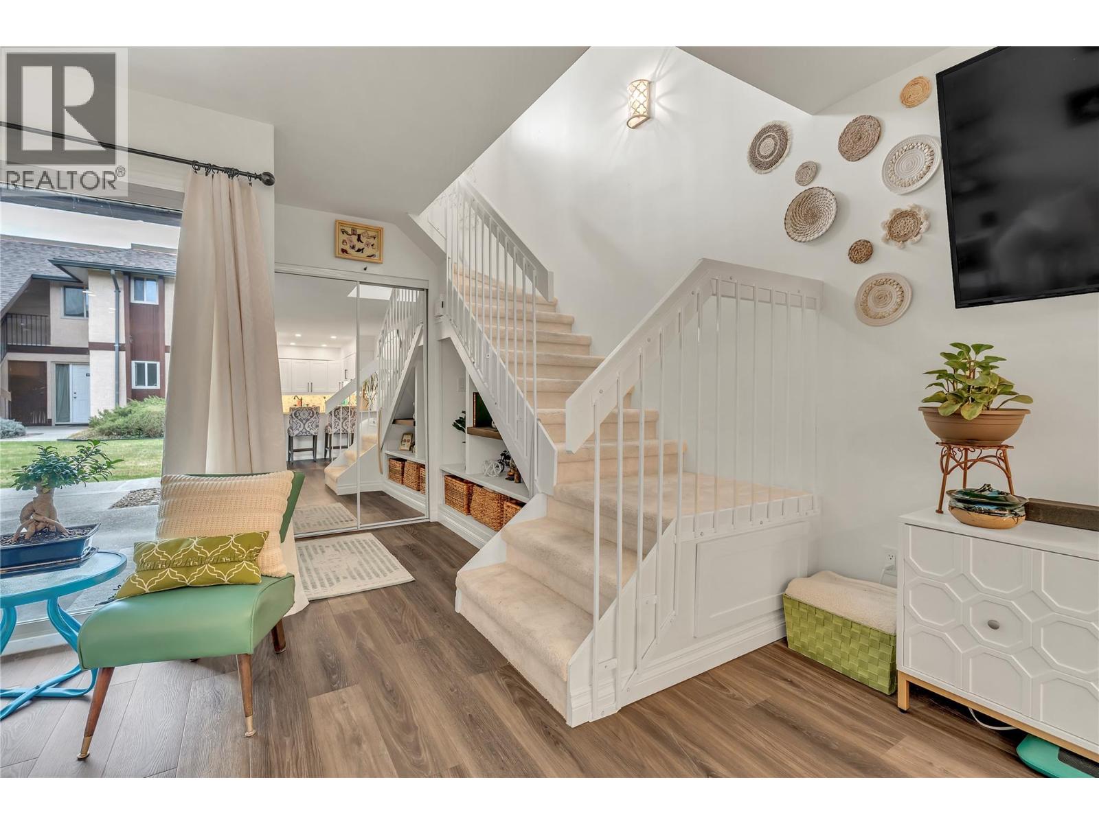 Thoughtfully renovated 1 Bed 1 Bath condo in Tiffany Gardens. The renovated kitchen has been opened up from the original closed-off layout, with new epoxy countertops complimented with updated white cabinets and a matching extended pantry storage unit. The new vinyl flooring up and down tastefully complements the light and bright space by bringing in some colour dynamics. Under the stairs has been smartly renovated to include a built-in shelving unit with a second accessible storage. The loft space has been closed off, adding extra usable square footage to the bedroom, and also adding a layer of privacy to the home. Additionally, the bathroom has been completely renovated with a tasteful white appearance. There is plenty of storage inside the laundry room. The unit has 2 outdoor spaces to be enjoyed, additionally the bottom patio has a custom storage unit. On a quiet street, within walking distance to Skaha Beach, shops, parks, and school, this location is Penticton perfection.