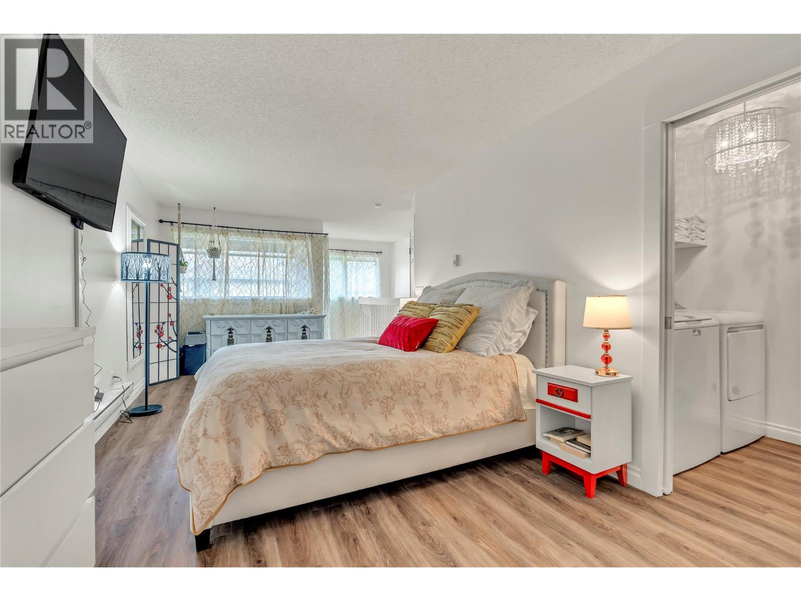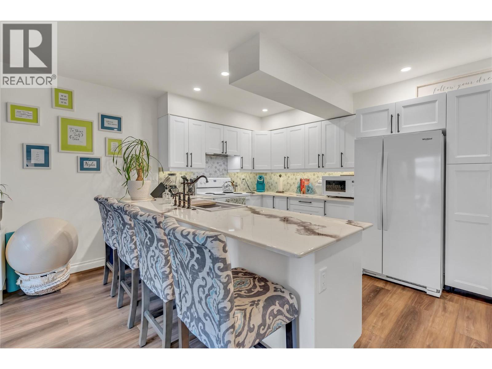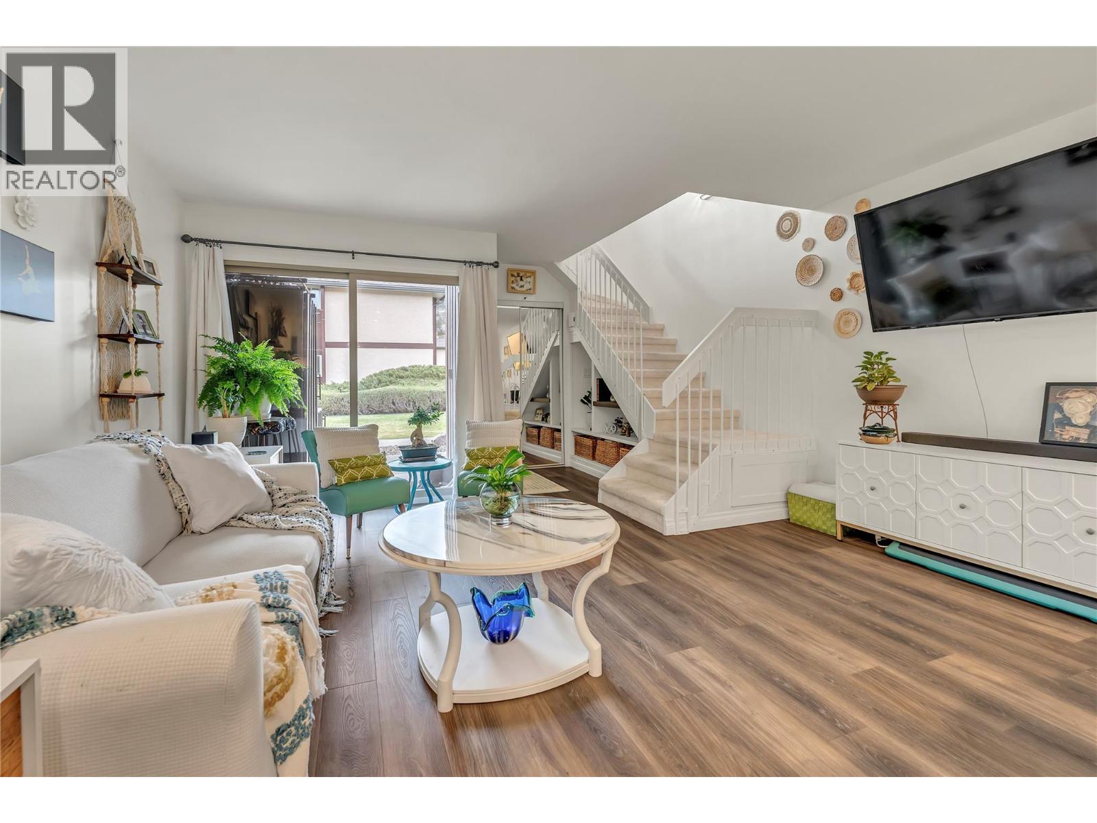 Thoughtfully renovated 1 Bed 1 Bath condo in Tiffany Gardens. The renovated kitchen has been opened up from the original closed-off layout, with new epoxy countertops complimented with updated white cabinets and a matching extended pantry storage unit. The new vinyl flooring up and down tastefully complements the light and bright space by bringing in some colour dynamics. Under the stairs has been smartly renovated to include a built-in shelving unit with a second accessible storage. The loft space has been closed off, adding extra usable square footage to the bedroom, and also adding a layer of privacy to the home. Additionally, the bathroom has been completely renovated with a tasteful white appearance. There is plenty of storage inside the laundry room. The unit has 2 outdoor spaces to be enjoyed, additionally the bottom patio has a custom storage unit. On a quiet street, within walking distance to Skaha Beach, shops, parks, and school, this location is Penticton perfection.