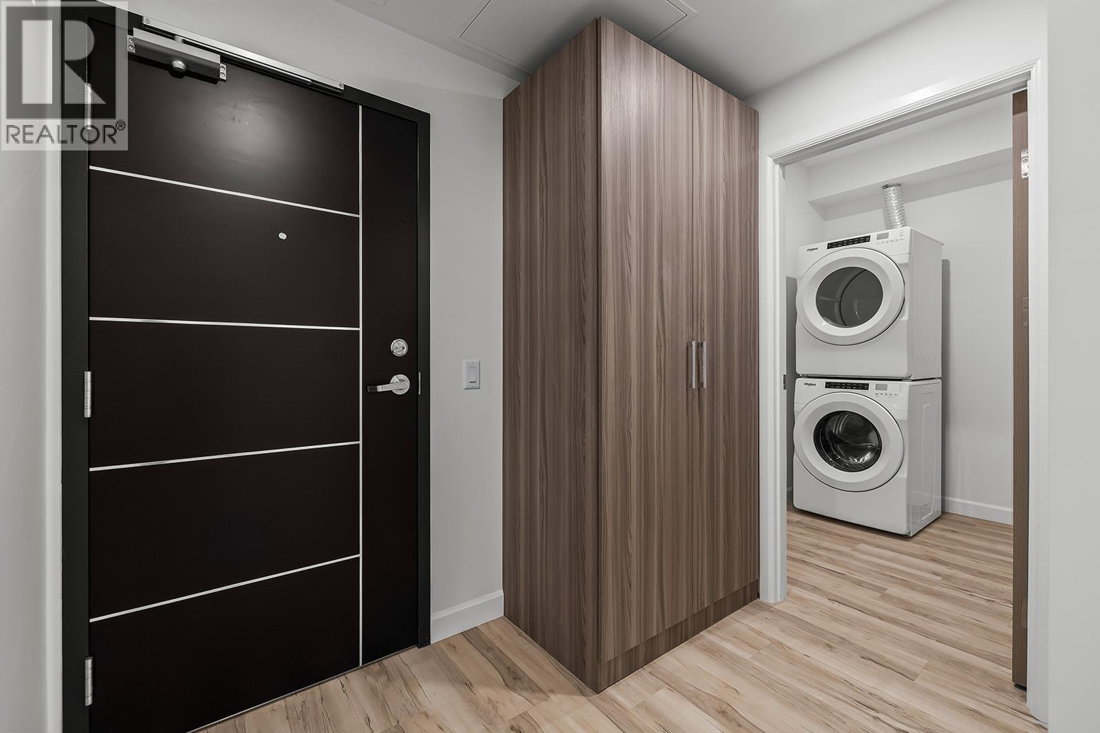 Brand New. Move-In Ready. And anything but ordinary. Welcome to Eminence at Knox Mountain. This 2-bed, 2-bath home offers approx. 904 sqft of smart, sophisticated living designed for people who appreciate clean lines & thoughtful details. Inside, 9-ft ceilings and expansive windows create a bright, open feel. The Earth colour palette interior blends warm wood tones, striking black accents & glass balcony features. The kitchen is a standout with premium 2-tone cabinetry, quartz countertops, stainless steel appliances, a gas range & a unique wine storage feature. An in-suite laundry room adds bonus storage, while designer LED lighting, a statement entry door, solid-core interior doors, & custom shelving & closet solutions complete the polished finish. You’ll also enjoy underground parking with your own private bike cage. The building’s common rooftop viewing terrace gives all new meaning to Kelowna’s Patio Season. Pet-friendly & Nature at your doorstep with direct access to Knox Mountain’s hiking & biking trails. Downtown Kelowna and Glenmore are minutes away. Buy new & save. Eligible buyers may qualify for the Property Transfer Tax exemption & the upcoming 1st time home buyer GST exemption & remaining homes include up to $100k in built-in savings from original pricing. If you want a designer condo you’ll genuinely love coming home to, this one checks all the boxes. Move-In Ready 1-Bed to 2-Bed + Den homes available. Sales Centre open Sat & Sun 12-4pm or by appointment.