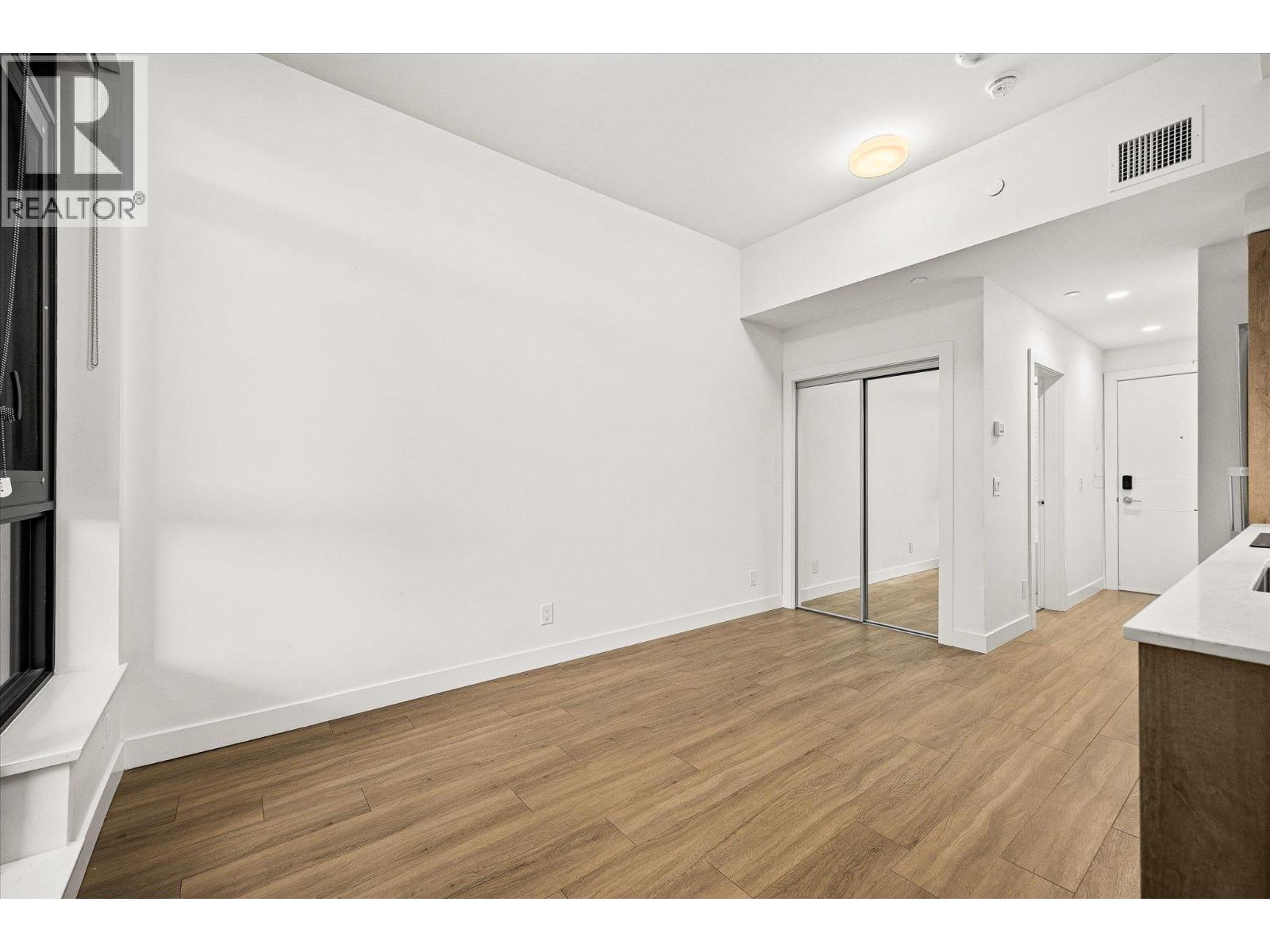 RARE A4 STUDIO. EV PARKING. XL COVERED PATIO. An exceptional opportunity to own a premium studio residence in AQUA, Kelowna’s landmark waterfront community, offering a rare combination of EV-parking, private storage, bike locker, and an oversized covered patio ideal for year-round use. This intelligently designed studio lives larger than expected, with living and sleeping area, 10 ft. ceilings, oversized windows, and a full kitchen finished with quartz countertops, stainless steel appliances, and custom closet organizers. Built with solid concrete construction, AQUA delivers superior soundproofing and long-term durability, complemented by efficient VRV heating and cooling, ERV ventilation, and a centralized hot water system. Residents enjoy access to resort-style amenities including an outdoor pool, rooftop hot tub, expansive fitness and wellness centre, fireside lounge, shared entertaining spaces, and more. Pet-friendly with priority access to the Aqua Boat Club. A compelling option for buyers seeking flexibility, lifestyle, and long-term value in a highly desirable waterfront setting, whether as a personal retreat or strategic holding in a unique building with limited studio supply.