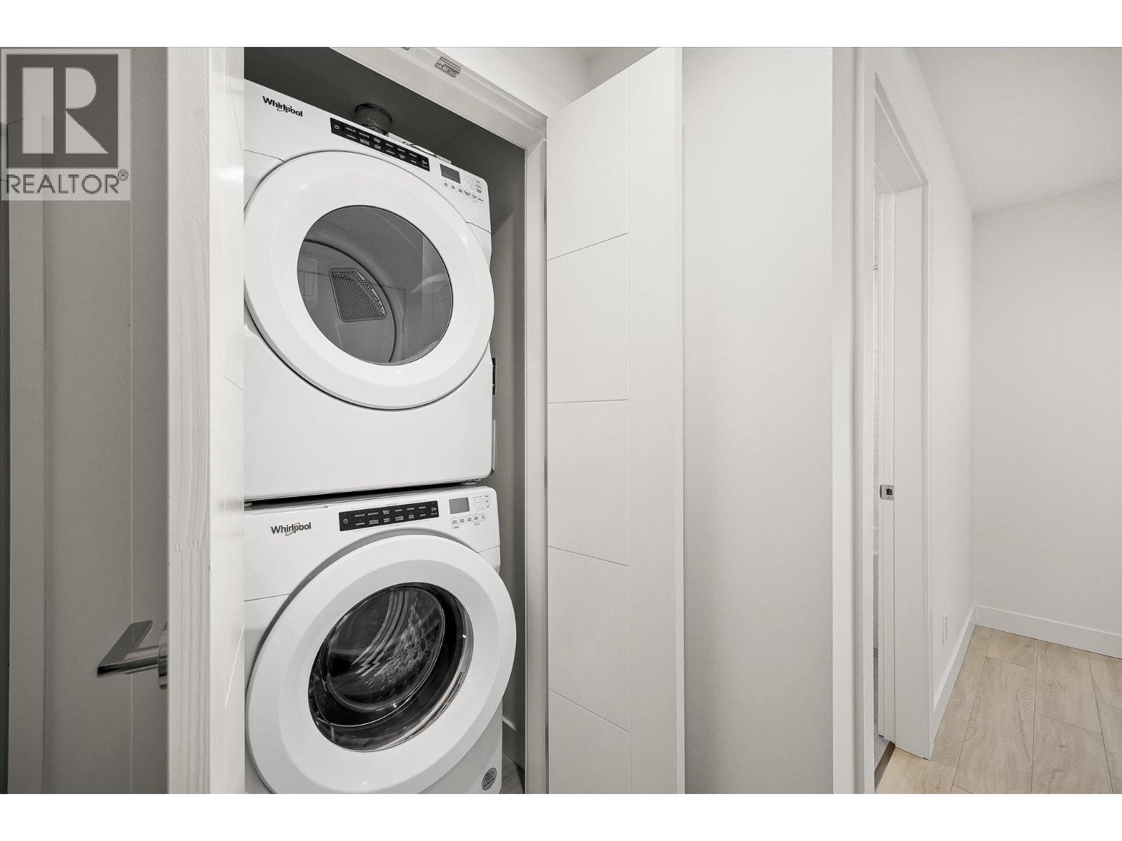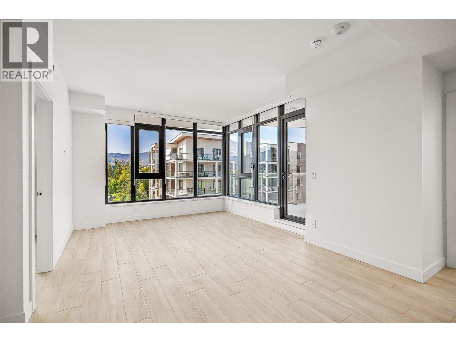 Priced well below assessed value of $854,000! Live steps from the shoreline in Aqua Waterfront Village, an elevated lakefront community in Kelowna’s desirable Lower Mission. This 2 bed, 2 bath home offers approx. 885 sq. ft. of intelligently designed interior space with two bedrooms, expansive windows and a spacious S/W balcony, offering natural light and lake views above the treetops. A split bedroom layout allows for privacy and flexibility. The kitchen features modern two-toned cabinetry, quartz countertops, under-cabinet LED lighting and a premium stainless steel appliance package, incl. a wine fridge. Enjoy luxury wide-plank vinyl flooring throughout the kitchen, living/dining area and bedrooms, blackout roller shades in both bedrooms and an energy-efficient central heating/cooling system. The spa-inspired bathrooms showcase porcelain tile and quartz countertops. 1 secure parking stall (with the rare chance to buy a 2nd stall), 1 storage locker, 1 bike locker are included. Amenities include an outdoor pool and hot tub, gas fire pits and BBQ’s, a fireside lounge and co working area, 2-level fitness centre, pet wash and bike wash and maintenance area. Vacant and ready for quick possession. Only a 5% deposit required. Buyer to verify all details and measurements if deemed important. All offers must be written on the Developer’s CPS.