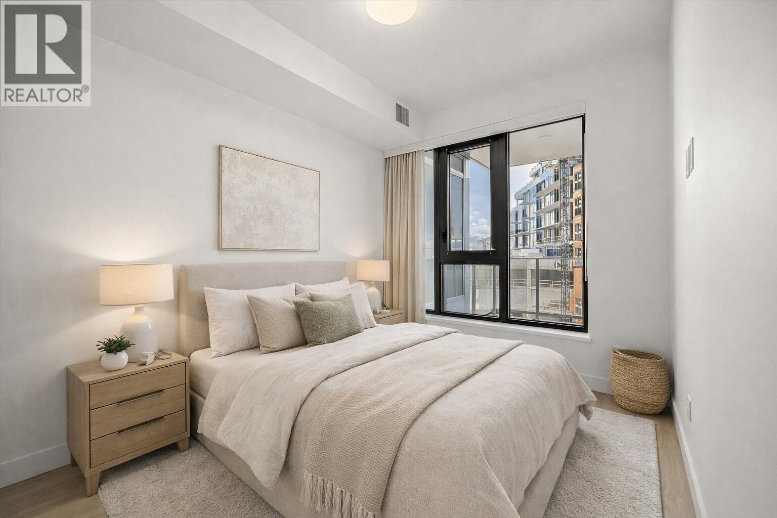 Priced well below assessed value of $669,000! Experience lakefront living reimagined at Aqua Waterfront Village. Located on the 5th floor, just steps from the pool deck, Unit #512 is a Jr. 2-bed, 2-bath home offering approximately 725 sq. ft. of refined interior space & a 90 sq. ft. balcony with Northwest views. This bright and airy home features a split-bedroom layout ideal for privacy and flexibility. Carefully selected finishes throughout, from the luxury vinyl plank flooring and oversized windows to a modern kitchen complete with quartz countertops, under-cabinet lighting, stainless steel appliances, a wine fridge and a concealed hood fan. The bathrooms include natural stone-inspired porcelain tile, wood-tone vanities, a deep soaker tub or a walk-in shower. Enjoy contemporary roller shades, in-suite laundry, & a quiet, energy-efficient heating & cooling system. Residents have exclusive access to Aqua’s exceptional amenities, including a resort-style pool & hot tub, indoor-outdoor social lounge, fireside lounge and coworking hub, two level fitness center as well as membership opportunities to the Aqua Boat Club. 1 parking stall, 1 extra large storage locker & 1 bike storage locker included. Vacant & ready for quick possession. Only a 5% deposit required. Buyer to verify all details & measurements if deemed important. All offers must be written on the Developer’s CPS.