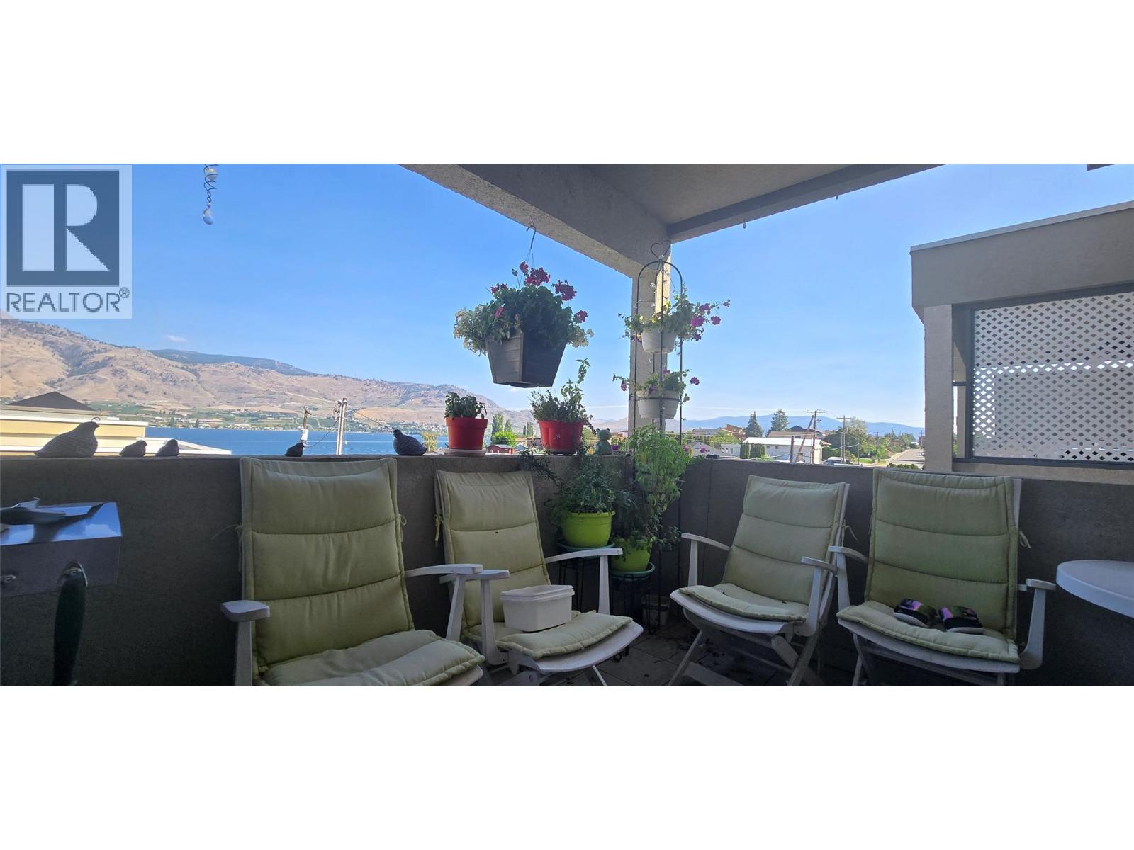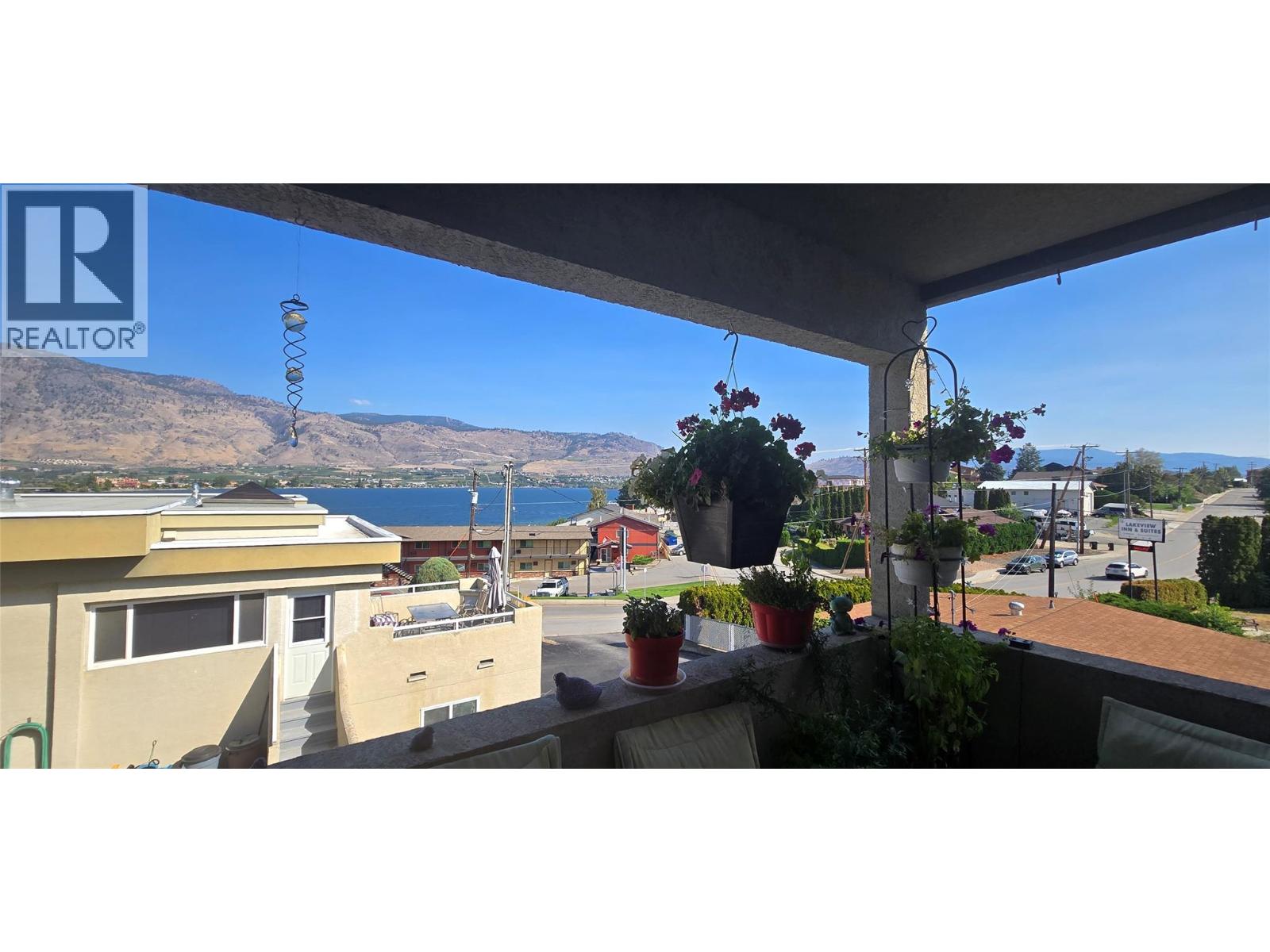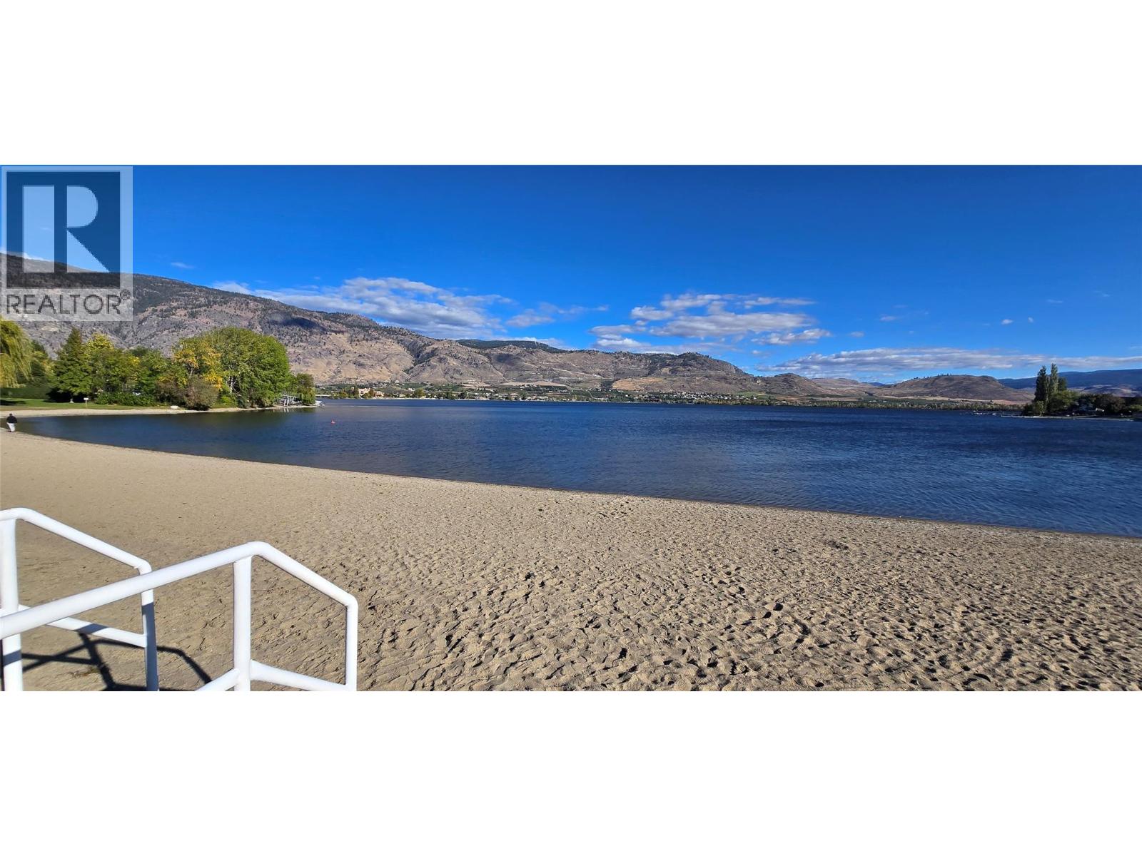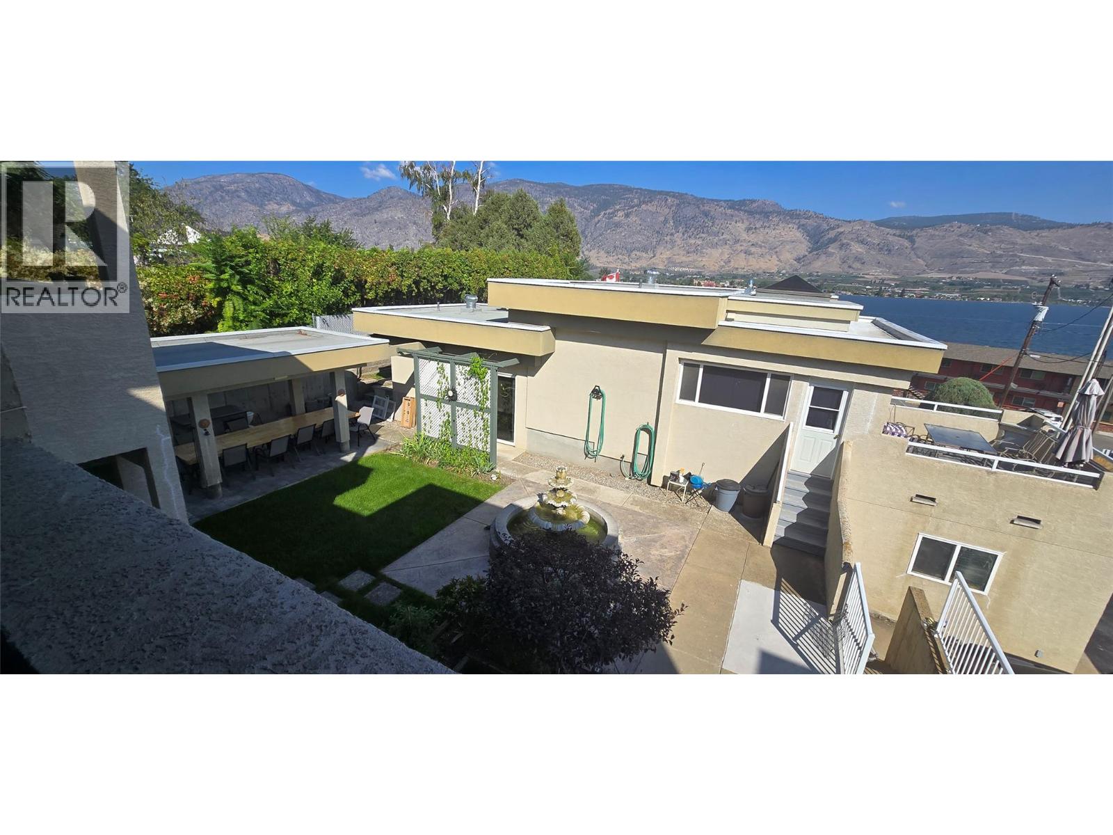 This top-level townhome offers exceptional features including lake views, walking distance to the beach and downtown, and a covered deck overlooking the lake. The unit comprises two bedrooms plus a den, an open-concept floor plan ideal for hosting guests, and a patio with views of both the lake and a charming courtyard featuring a communal covered dining area and tranquil fountain. Amenities include a cosy gas fireplace, easy-care tile and laminate flooring, covered carport parking, and a storage locker. Conveniently located across from the beach and within short walking distance to all local amenities, this well-managed complex consists of only seven units. Enjoy the finest of Okanagan living: premier golfing, fine dining, water sports & award winning wineries. 55plus complex, pets welcome with restrictions. Measurements are approximate and should be independently verified if important