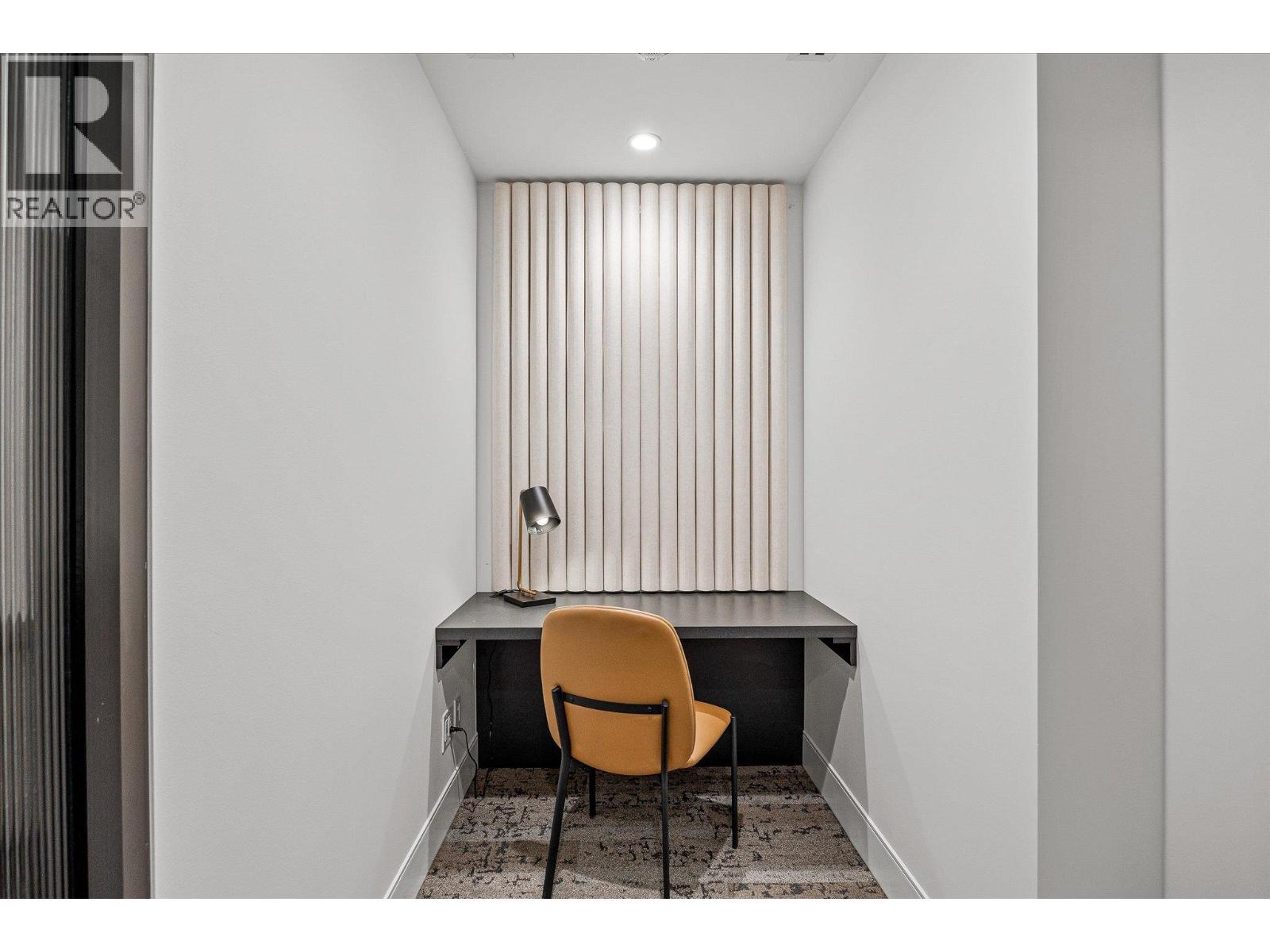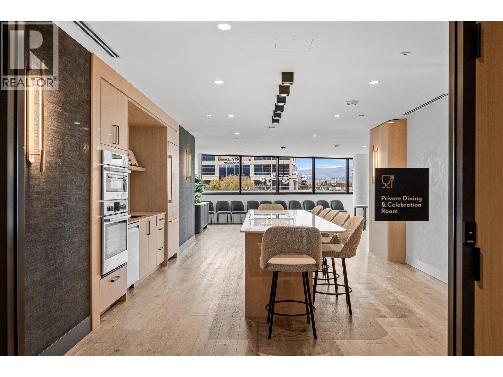 Modern Lakeside Amenity-Rich Living at Movala; Kelowna’s most anticipated new address, positioned between sandy beaches, vibrant eateries & boutique shopping! This gorgeous lakeview 1-bdrm+den condo combines modern design with functionality, creating an effortless urban retreat just steps to Pandosy Village. Beautifully crafted, featuring modern cabinetry, luxury vinyl plank flooring, quartz surfaces & 9ft ceilings. The chef-inspired kitchen offers premium SS appl. complemented by a fully integrated refrigerator. The spacious island offers plenty of prep space & casual seating for 4 - perfect for entertaining! The bright living area flows seamlessly to the covered south-facing patio w/natural gas hookup, where you can take in views of Okanagan Lake, Gyro Beach Park & soak up the Kelowna sunshine! The primary bdrm features a walk-in closet w/custom built-ins & large south-facing window, while the sleek 4pc bath boasts an oversized walk-in shower, dual sinks & modern tile finishes. A versatile den completes this cozy home & offers flexibility for guests or home office. Movala offers resort-inspired amenities - A lakeview pool & hot tub and cabanas surrounded by lush landscaped grounds with fire tables, bocce lawns & alfresco BBQ areas. Inside, enjoy a gym & yoga studio, co-working spaces, entertainment lounge, great room with casual seating, a library, private dining room + a guest suite & pet wash! Truly an unmatched lifestyle in an unmatched location! & GST has been paid!