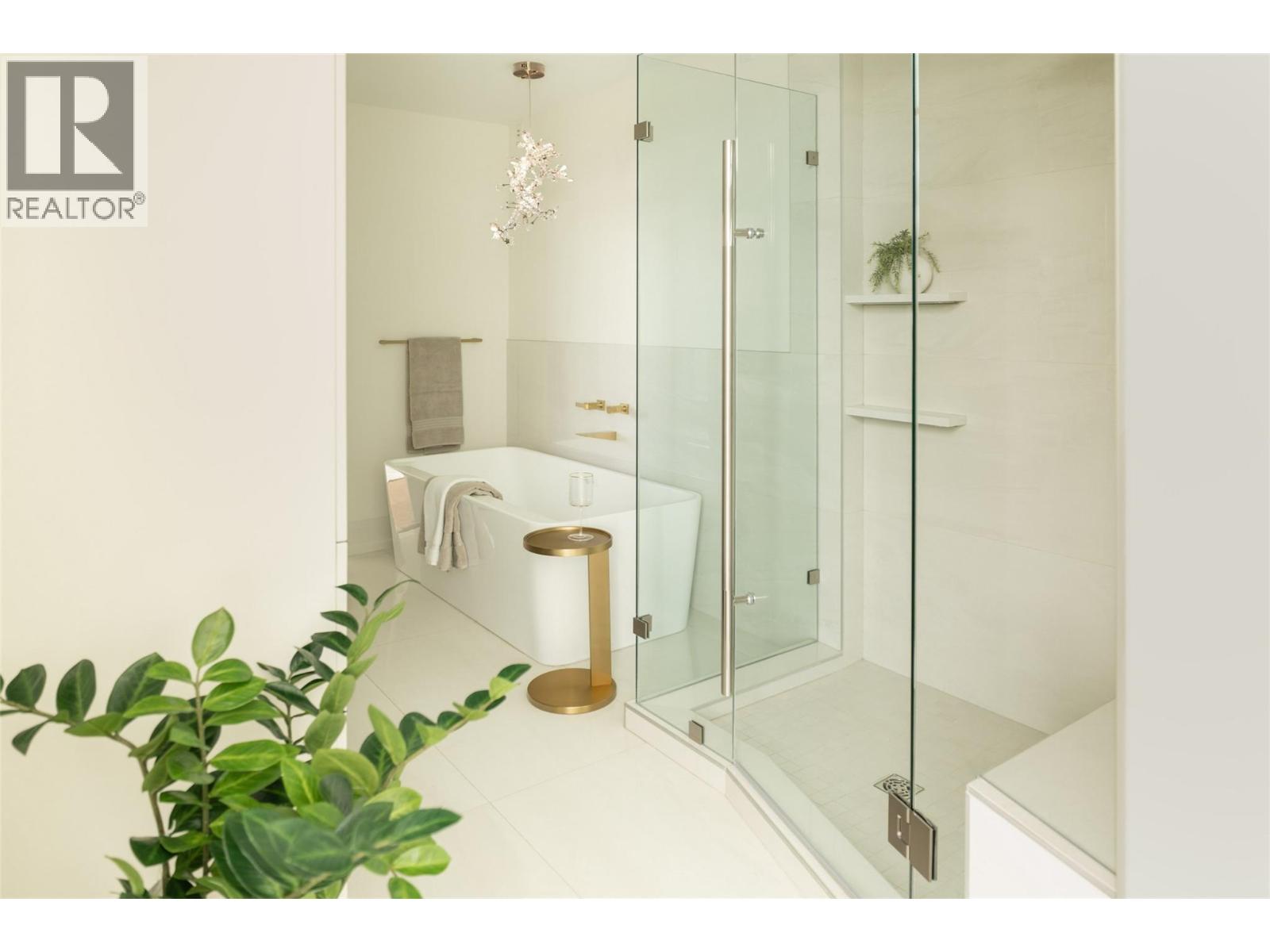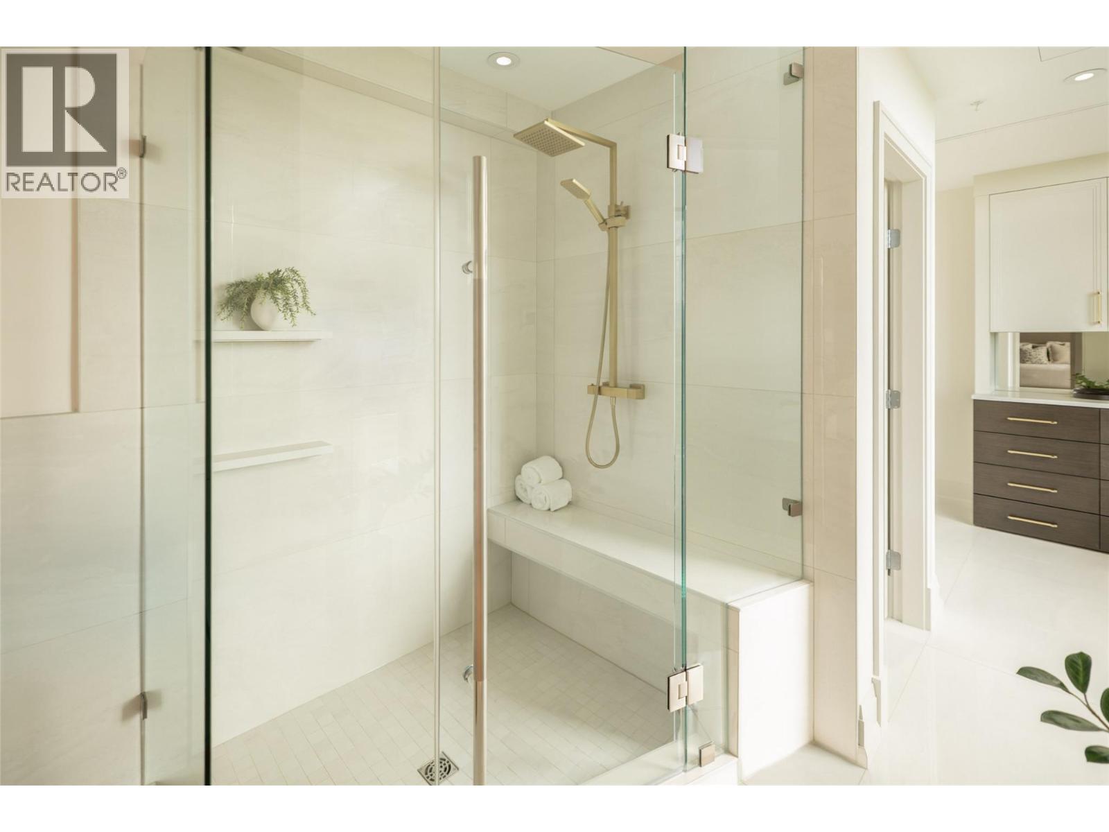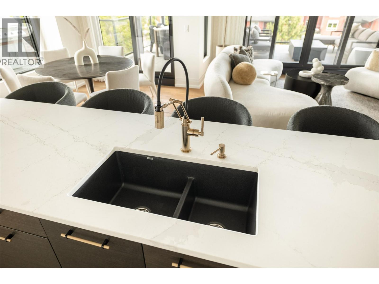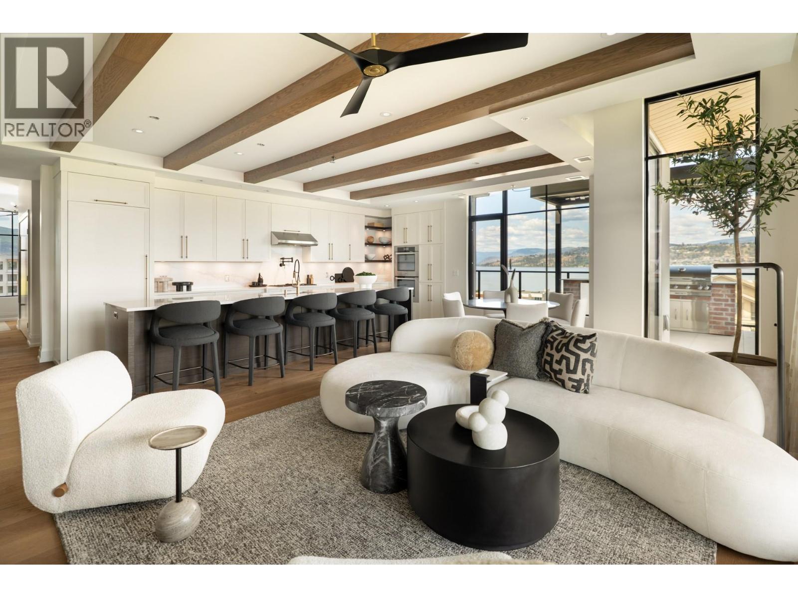Unit 601 - 450 Parc: Award-Winning Penthouse Living in South Pandosy. Crowning the vibrant Pandosy neighbourhood, this one-of-a-kind penthouse offers over 2,260 sq ft. of interior space & 1,000 plus sq ft. of outdoor living. Designed for those who value elegance & ease, the 3-bedroom, 4-bath residence blends contemporary luxury w/panoramic views of Okanagan Lake, the city, & surrounding mountains. Part of an award-winning development recognized with 4 Gold Awards, including Best Condominium Community in B.C., 450 Parc is celebrated for exceptional design, craftsmanship, & livability. Soaring 10-foot ceilings, wide-plank oak floors, & exposed beams create a upscale ambiance. The chef’s kitchen features a Miele fridge, four Sub-Zero freezer drawers, double Miele wall ovens, quartz counters, & a generous island—perfect for entertaining. A glass-enclosed wine room is ready for customization & a wet bar complete the space. The primary suite is a true retreat with dual walk-in closets, a spa-like ensuite, & access to the terrace, where a saltwater hot tub is coming soon. Two additional bedrooms with private ensuites, a powder room, & full laundry round out the layout. Enjoy outdoor living with a built-in kitchen, Jackson Grills BBQ, fire table, & automated louvred pergolas. Smart tech includes Control4 automation, motorized blinds, designer lighting & EV-ready parking. Private and set in one of Kelowna’s most walkable areas, this penthouse elevates luxury living.