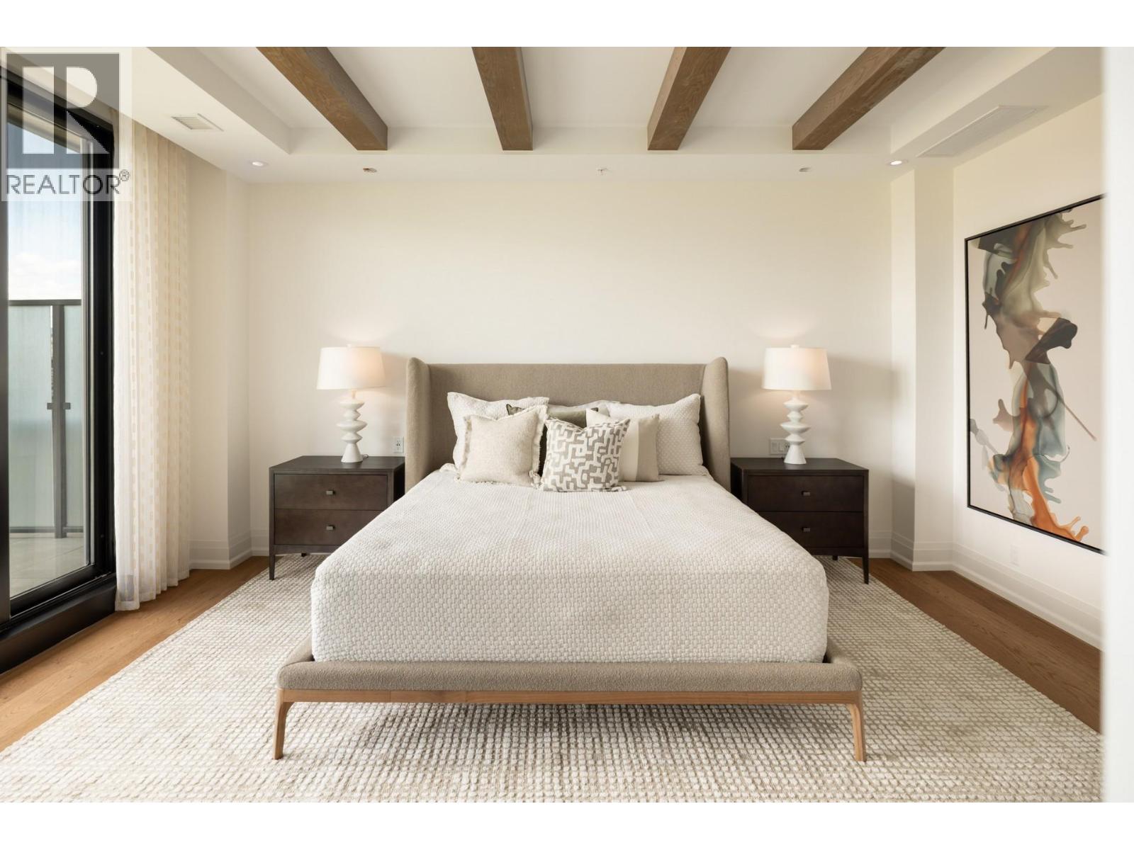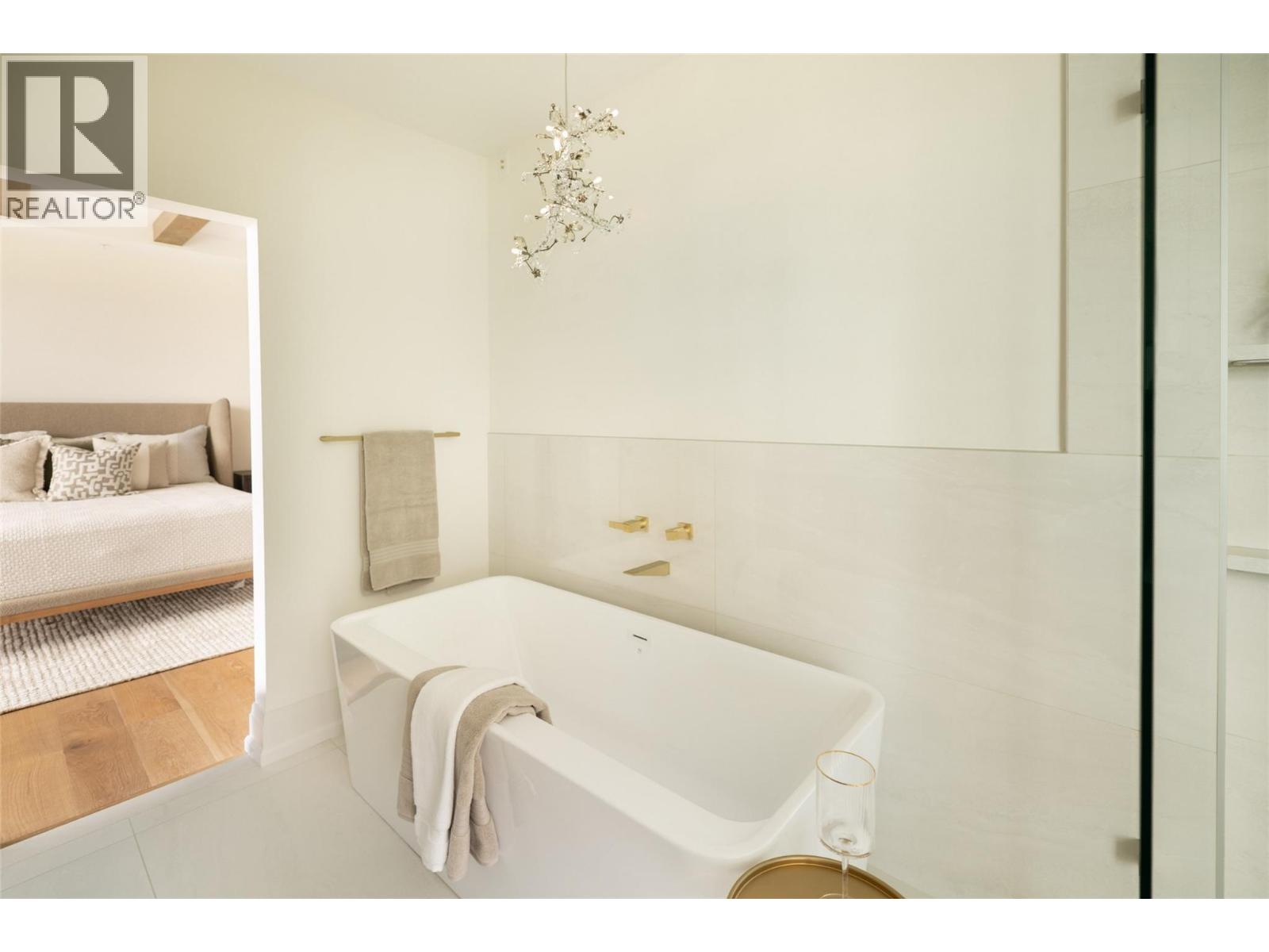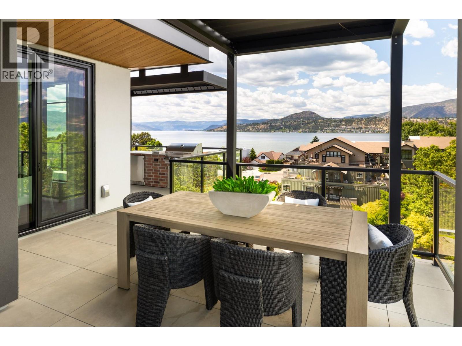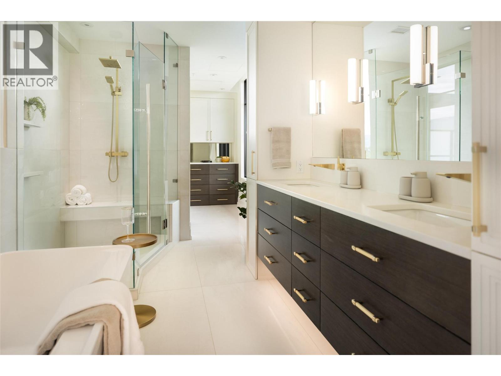 Unit 601 - 450 Parc: Award-Winning Penthouse Living in South Pandosy. Crowning the vibrant Pandosy neighbourhood, this one-of-a-kind penthouse offers over 2,260 sq ft. of interior space & 1,000 plus sq ft. of outdoor living. Designed for those who value elegance & ease, the 3-bedroom, 4-bath residence blends contemporary luxury w/panoramic views of Okanagan Lake, the city, & surrounding mountains. Part of an award-winning development recognized with 4 Gold Awards, including Best Condominium Community in B.C., 450 Parc is celebrated for exceptional design, craftsmanship, & livability. Soaring 10-foot ceilings, wide-plank oak floors, & exposed beams create a upscale ambiance. The chef’s kitchen features a Miele fridge, four Sub-Zero freezer drawers, double Miele wall ovens, quartz counters, & a generous island—perfect for entertaining. A glass-enclosed wine room is ready for customization & a wet bar complete the space. The primary suite is a true retreat with dual walk-in closets, a spa-like ensuite, & access to the terrace, where a saltwater hot tub is coming soon. Two additional bedrooms with private ensuites, a powder room, & full laundry round out the layout. Enjoy outdoor living with a built-in kitchen, Jackson Grills BBQ, fire table, & automated louvred pergolas. Smart tech includes Control4 automation, motorized blinds, designer lighting & EV-ready parking. Private and set in one of Kelowna’s most walkable areas, this penthouse elevates luxury living.