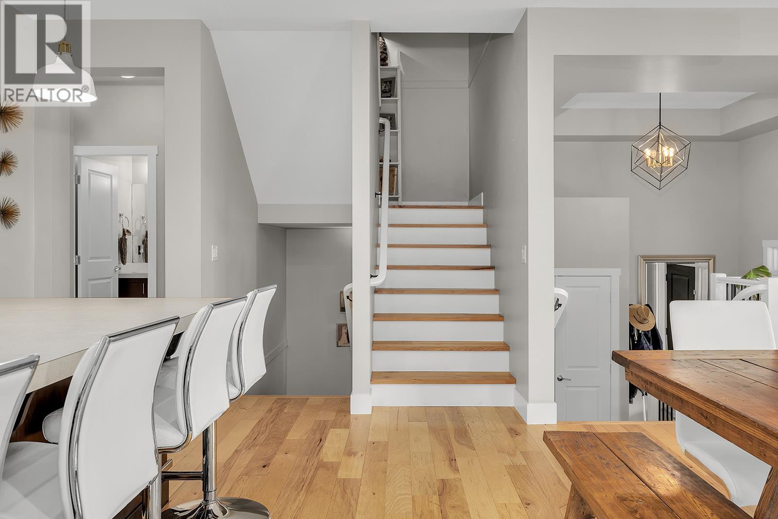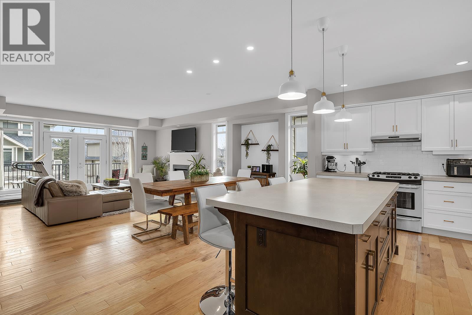Welcome to Hidden Lake Lane in the heart of Wilden! This spacious 4-bedroom, 4-bathroom townhouse is ideal for families and those who love to entertain. The main level features a bright open-concept kitchen with newer appliances, ample cabinetry, large island, and abundant counter space. Natural light flows from the front deck through to the back patio, creating a warm and inviting atmosphere. A convenient mudroom/laundry area with sink, storage, and backyard access enhances everyday functionality. Upstairs offers two generous bedrooms, a full bathroom, and a primary suite with a 5-piece ensuite and walk-in closet. The lower level includes a media room, additional bedroom, and full bath—perfect for guests, teens, or a home office. Additional features include engineered hardwood flooring, upgraded shelving, geothermal heating and cooling, double garage, and a spacious backyard. Surrounded by nature yet minutes to UBCO, YLW, shopping, and downtown Kelowna, this home offers the perfect balance of comfort, convenience, and modern Okanagan living. Pet Restrictions: 2 dogs, or 1 dog and 1 cat, or 2 cats.