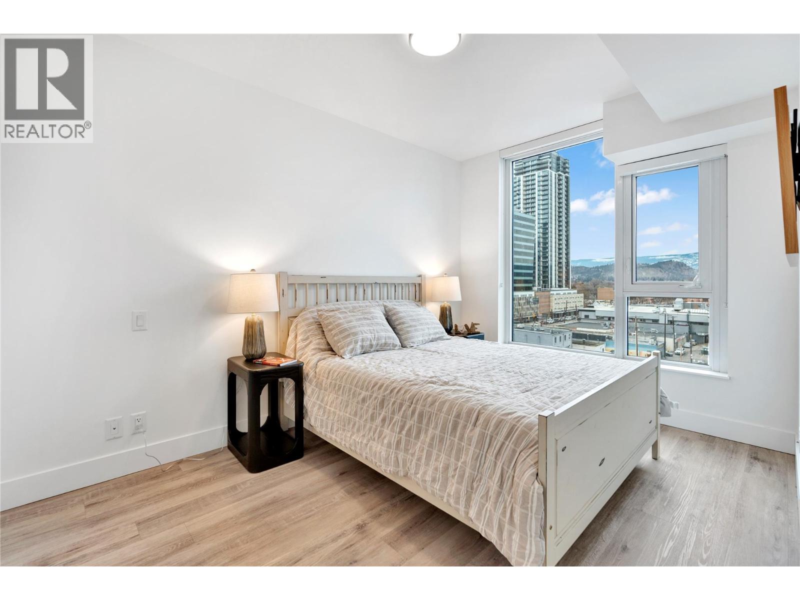 Extraordinary value at ELLA, Kelowna’s most central downtown luxury condo building. This bright East facing one bedroom and den home offers lovely city and mountain views from the 7th floor. Finishings by Award-winning interior design i3 Design Group include quartz countertops throughout the home, soft vinyl plank flooring, surround ceramic tile in the bathroom and under cabinet lighting in the kitchen. Cook gourmet meals on your gas range with quartz backsplash and enjoy the sleek and designer aesthetic of the integrated paneled refrigerator. Located on the corner of Ellis street & Lawrence Ave, this home comes with 1 parking stall in the secure parkade plus 1 secure storage locker. Electric vehicle charging stations are available for ELLA residents’ exclusive use. The building boasts a bike & pet washing station, resident bike storage & guest suite for resident’s visitors. This home offers an in-suite washer & dryer along with ample storage and closet space to make this a functional and comfortable condo. This is the perfect home for affordable downtown living or the savvy investor looking for great value.