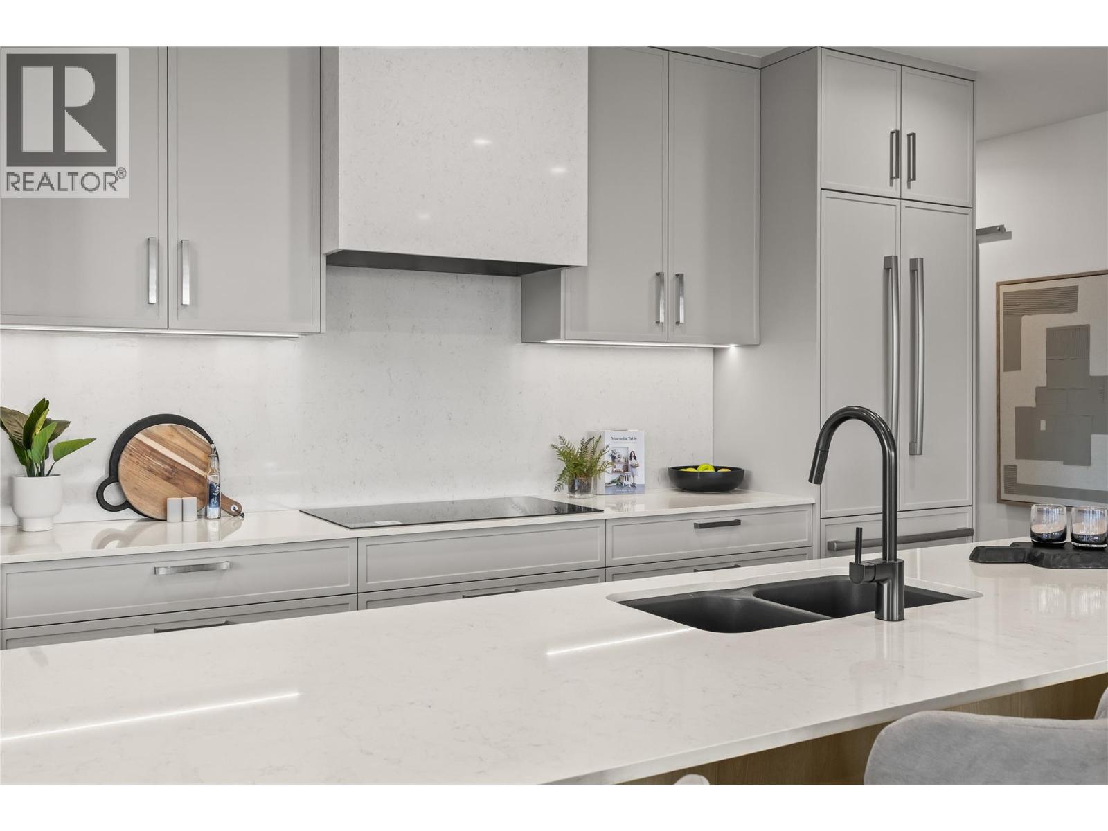 GST Paid! A rare opportunity to own one of the penthouse collections at Movala. Located beachside in Lower Mission, this luxury condo is defined by its sophistication & unparalleled lake views. With an interior boasting approx. 1,748 sqft of single-level living, 3 generous sized beds with ensuite baths, office, laundry & guest bath create a seamless flow between the bright living spaces & the designer kitchen. These exquisite residences showcase premium architecture & craftsmanship like herringbone floors & Hunter Douglas remote blinds. The kitchen is equipped with top-tier appliances including induction cooktop, convection wall oven, a built-in beverage centre with a wine fridge, modern cabinetry with brushed nickel hardware, quartz countertops, Bosch side-by-side fridge & freezer, double wall oven, microwave drawer & a Bosch dishwasher. The baths feature large-format tile, heated floors, & wood-grain custom vanities with Dekton or Silestone countertops. Step onto your expansive almost 2000 sqft terrace for outdoor living that truly extends the home, complete with gas BBQ hookup, hot tub pad & room for both dining & lounging. This home also comes with 2 parking stalls & 2 storage lockers. Residents of Movala enjoy resort-style amenities including a heated pool, hot-tubs, cabanas, fitness studios, & more! Set beside Gyro Beach & Pandosy Village, this home connects you to shopping, restaurants, & the lakefront lifestyle Kelowna is known for.