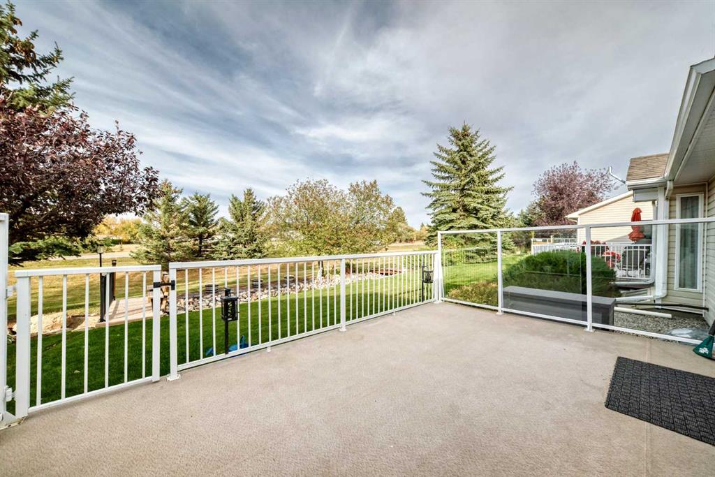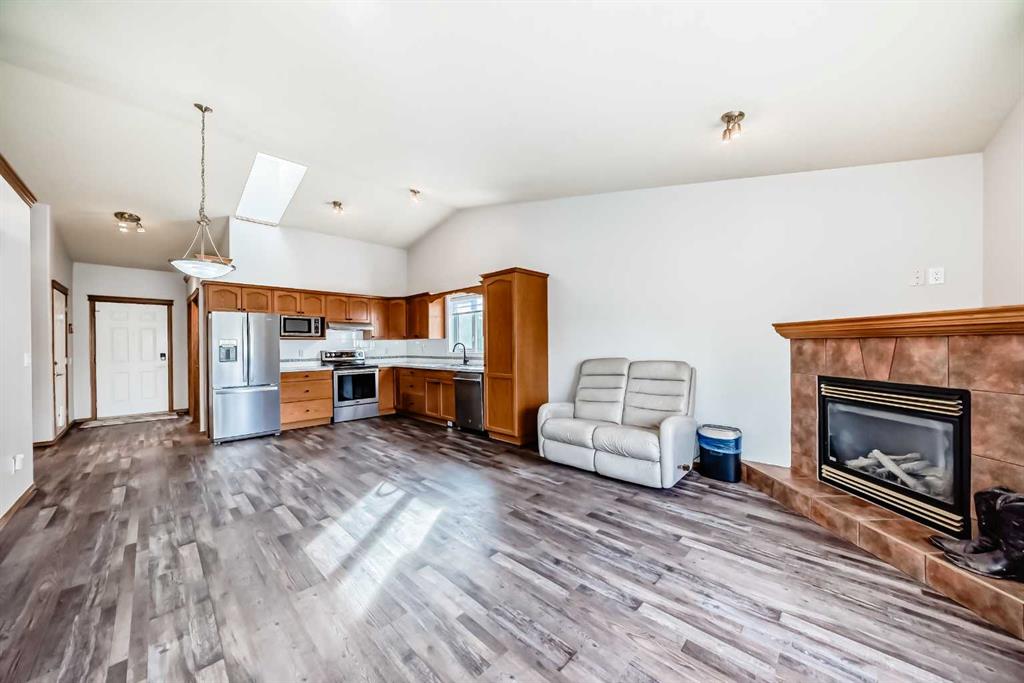 Welcome the the Exclusive 55+ Whispering Creek villas in Vulcan. This villa has three bedrooms in total. Two on the main floor , primary has a new triple pane window, and another large one in the basement. The open main floor has vaulted ceilings, a beautiful sky light to allow natural light in all day, main floor laundry with a newer washer and dryer(2023), large kitchen with newer appliances (2023) including a convection oven, large family room with cozy fireplace, new triple pane picture window, new back door and bathroom with a walk in shower. The basement has been started for you with large games room, bathroom and bedroom for your guests. All you need is some carpet of your choice to finish it off. All the vinyl plank on the main floor was professionally installed in 2023. The owners also added air conditioning for comfort all summer long. This villa has a little creek behind with sitting benches or you can walk over to the gorgeous golf course for a round. The town of Vulcan offers all you need with schools, hospital, rec centre, outdoor pool and lots local events. The board at Whispering Creek also has lots of events in the clubhouse house across from this villa. You can also store your RV/boat in the storage area which is included in your low condo fee! Come see what true small town living is all about!
