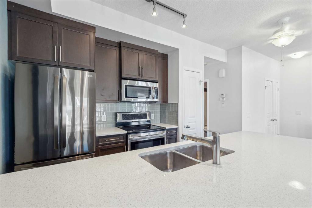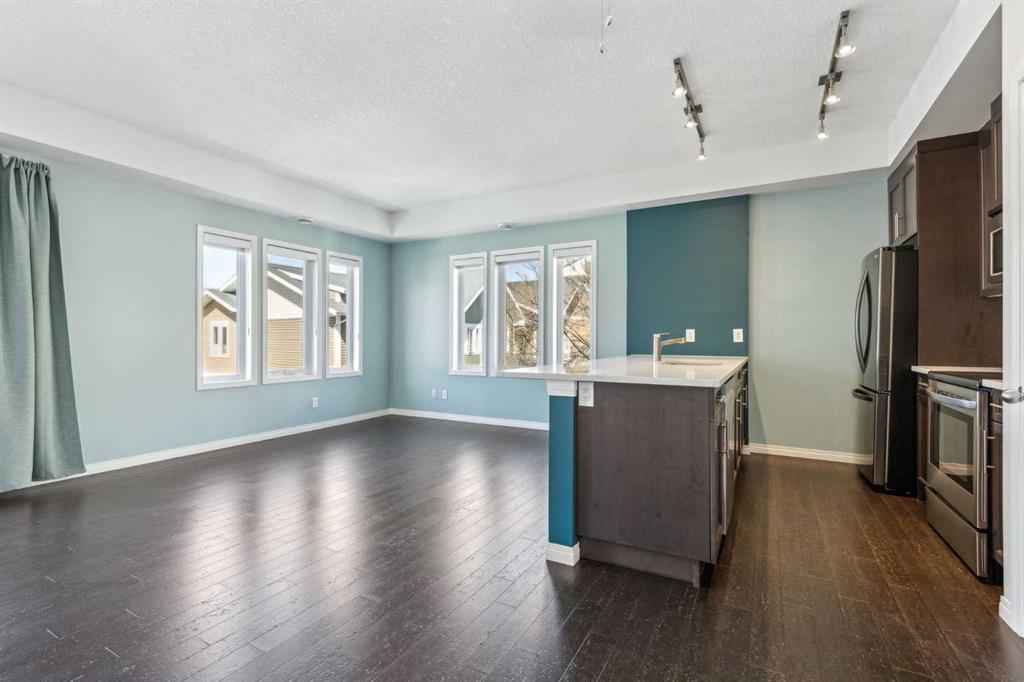 Welcome to this bright and beautifully maintained top-floor corner townhome in the heart of Auburn Bay, offering the perfect blend of comfort, style, and unbeatable convenience. This 2-bedroom, 1-bathroom home is flooded with natural light from large windows and enhanced by soaring 9-foot ceilings, creating an airy and inviting atmosphere throughout. The modern open-concept kitchen showcases upgraded stainless steel appliances, stone countertops, full-height cabinetry, and a sleek, functional layout—perfect for both everyday living and entertaining. The kitchen flows seamlessly into the spacious living area, creating an open and connected living space. The generously sized cantilevered primary bedroom offers more space than comparable units and features a walk-in closet that can be customized to suit your needs. Enjoy the comfort of a single attached garage—no more brushing snow off your car—along with low condo fees, access to the highly sought-after Auburn Bay Lake, and the peace of mind that comes with a well-managed condo board. Recent major updates include a fully funded asphalt roof replacement, reflecting strong reserve planning and proactive maintenance. Ideally located directly across from South Health Campus, steps to the Auburn Bay Community Association, and kiddie-corner to Seton Gateway shops and everyday amenities. Within five minutes, you’ll find Cineplex Movie Theatre and Real Canadian Superstore. Surrounded by parks, green spaces, restaurants, and with quick access to Deerfoot and Stoney Trail, this home truly delivers lakeside living at its finest.