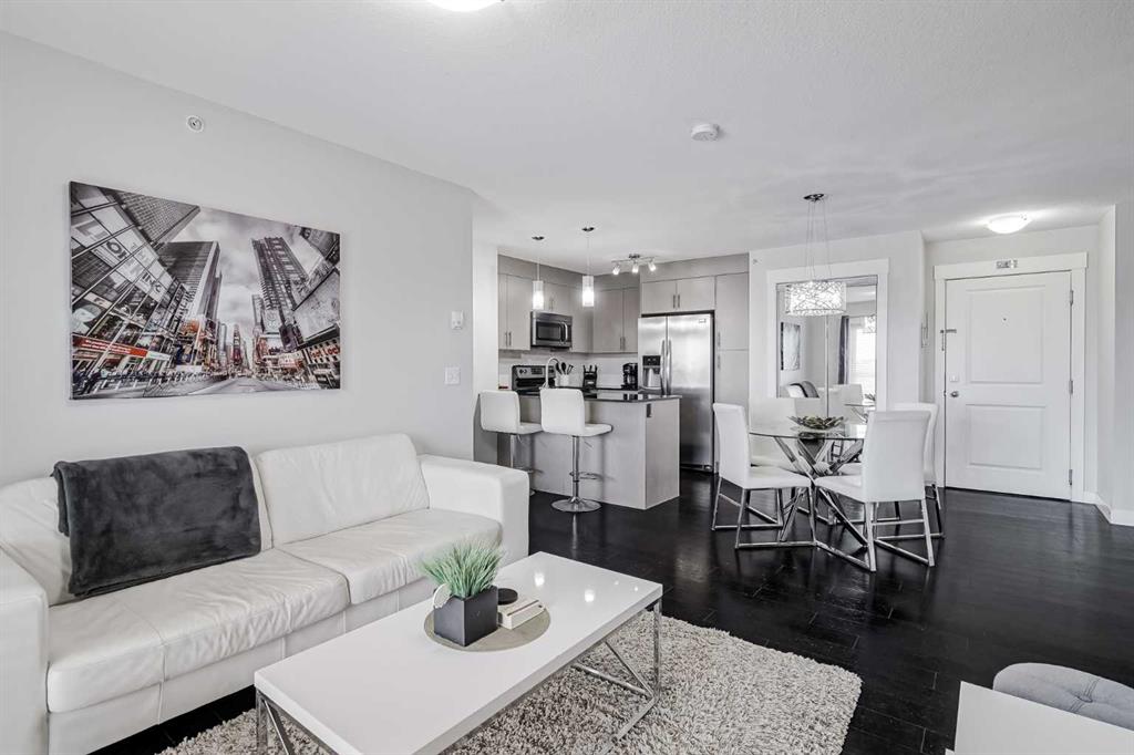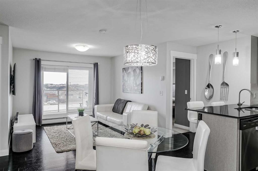 IMMEDIATE POSSESSION! VACANT and MOVE-IN READY! Welcome to this bright and beautifully designed TOP-FLOOR condo in the sought-after community of Skyview Ranch—where style, comfort, and convenience come together. As you enter, you're welcomed by a spacious and sunlit open-concept living area, perfectly suited for both relaxing and entertaining. The seamless flow into the contemporary kitchen is sure to impress, featuring sleek grey cabinetry, granite countertops, stainless steel appliances, and an abundance of counter and storage space. Whether you're preparing a quiet meal or hosting friends, this kitchen is both beautiful and practical. A dedicated office nook offers the ideal tucked-away workspace for remote professionals or students, making working from home effortless and efficient. Step through the sliding glass doors from the bright and airy living room onto a generous east-facing balcony—perfect for sipping your morning coffee or hosting summer barbecues. Take in the open, unobstructed views while enjoying the convenience of a built-in BBQ gas line, ideal for effortless outdoor entertaining. Designed for comfort and privacy, this well-planned layout places the primary bedroom on one side of the unit, complete with a walk-in closet and a spa-inspired 4-piece ensuite bathroom. On the opposite side, a second generously sized bedroom sits adjacent to its own 4-piece full bathroom, making it perfect for guests, children, or roommates. Additional highlights include: a convenient in-suite laundry and storage room, stylish mix of cork, tile, and plush carpet flooring, secure underground parking stall with a private storage cage, key fob-secured front lobby with video surveillance for added peace of mind. Location is everything, and this home truly delivers. Just steps away from the brand-new Skyview Ranch Elementary/Middle School (K–9), this community is perfect for families. Enjoy the nearby playgrounds, parks, local shopping, and essential amenities—all within walking distance.This condo offers an exceptional opportunity to own in one of Calgary’s most vibrant and growing neighborhoods.