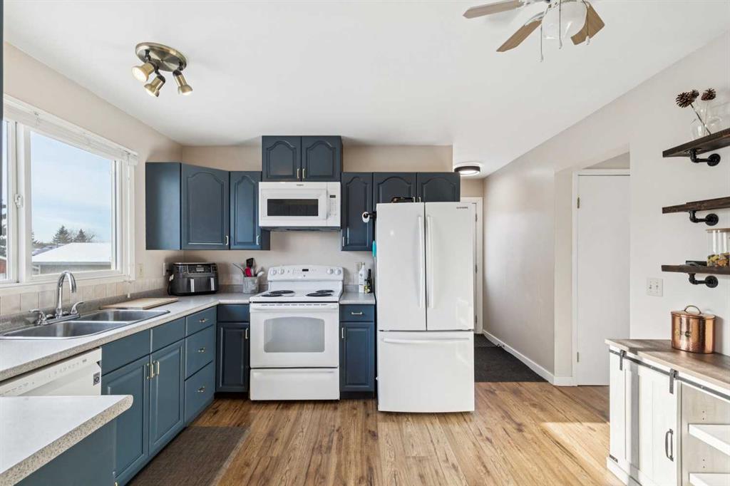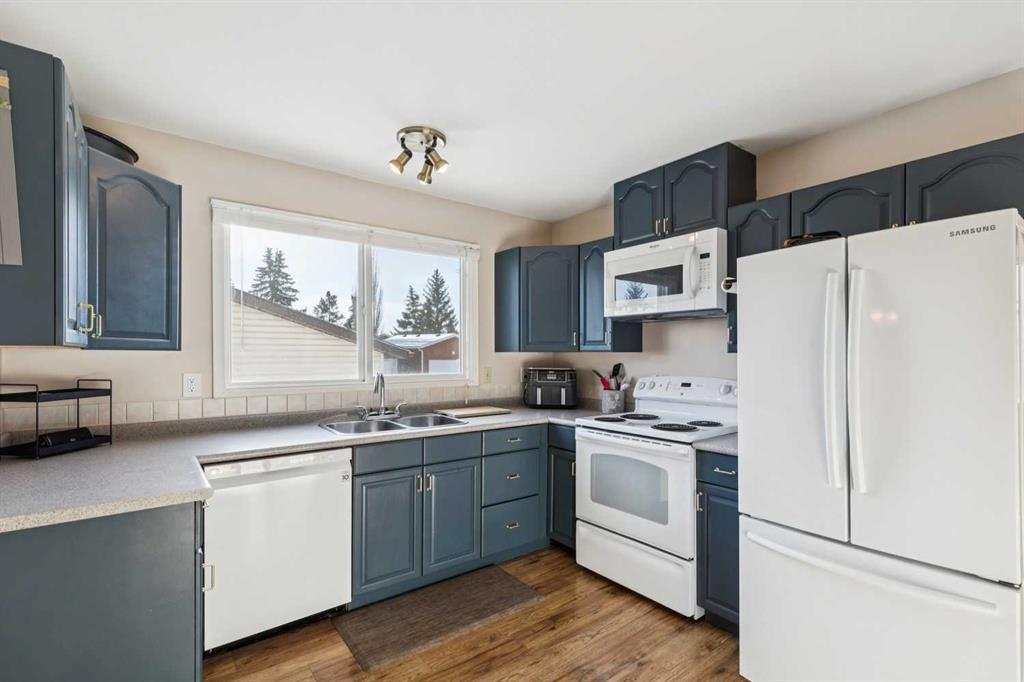 Meet “AVERY” — a stylish two-storey located on a quiet, tree-lined street in Airdrie Meadows. Step inside to a spacious and inviting floor plan, where large windows throughout allow an abundance of natural light to fill the home. The updated kitchen features beautiful blue cabinetry and newer appliances, while the dining area seamlessly connects the kitchen and living room — perfect for everyday living and entertaining. A side-entry mudroom and convenient main-floor half bath add functionality, and newer windows throughout enhance comfort and efficiency. Upstairs, you’ll find three generously sized bedrooms, including an impressive primary suite complete with a walk-through closet and a recently updated 2-piece ENSUITE. The main bathroom offers a tub/shower combination and ample storage. Outside, enjoy a large, fully fenced yard with south and west exposure, a deck with gazebo, and an OVERSIZED DOUBLE DETACHED GARAGE that is insulated (heater not used and sold as-is). A rear gate provides additional access and offers potential RV parking. The basement includes a large recreation room, laundry area, and a fourth bedroom (note: partially finished and window does not meet current egress requirements). Centrally located near shopping, transit, parks, and playgrounds, and just steps from Muriel Clayton Middle School, this move-in ready home offers excellent value in an established community. Book your showing today.