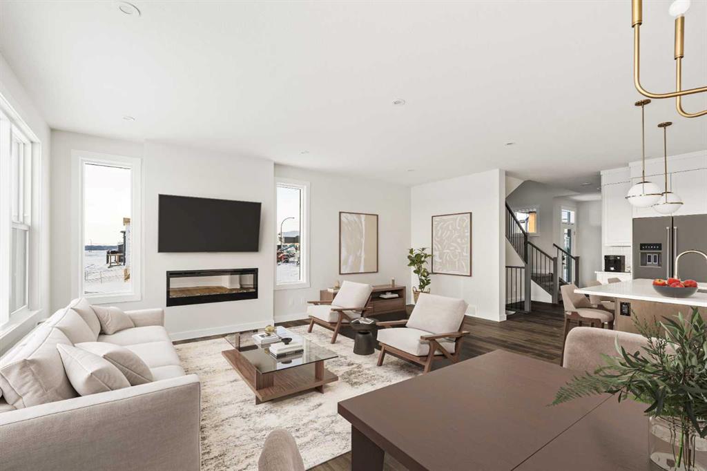 Welcome to the brand-new ‘Purcell 24’ by Brookfield Residential, featuring a fully legal 1-bedroom basement suite and available for possession this year! Situated in the vibrant new community of Seton Ridge, this stunning, fully finished home offers nearly 3,000 square feet of developed living space over three levels, with 5 bedrooms (4 upstairs and 1 in the basement) and 3.5 bathrooms. The open-concept main floor is thoughtfully designed for both everyday living and entertaining. The kitchen is a true showpiece, featuring two-tone cabinetry in rich maple and crisp white shaker finishes, complemented by light luxury vinyl plank flooring throughout — ideal for families with children or pets. A suite of upgraded appliances, including a gas range, built-in microwave, and sleek range hood, elevate the space, while a walk-through pantry adds function, connecting the kitchen to the mudroom and double attached garage for added convenience. Natural light floods the spacious living and dining areas through a wall of windows that overlook the backyard, and a large deck spans the entire width of the home, creating the perfect space to relax outdoors. A stylish 2-piece powder room completes the main level. Upstairs, a central bonus room separates the primary suite from the additional bedrooms, offering privacy and flexibility for a growing family. The luxurious primary retreat features a bright front-facing wall of windows and a 5-piece ensuite with dual sinks, a soaker tub, and a walk-in shower. Three more generously sized bedrooms, a full 4-piece bathroom, and an upstairs laundry room complete the upper level. The walk-out basement is fully developed with a legal 1-bedroom suite, making it an excellent mortgage helper or ideal for multigenerational living. The suite includes its own kitchen, living area, laundry, 4-piece bathroom, and separate mechanical systems. Set in Seton Ridge, a new community where nature meets city convenience, this home is close to pathways, parks, and all major amenities. Plus, it comes with Alberta New Home Warranty and Brookfield’s builder warranty, giving you peace of mind with your new home investment.