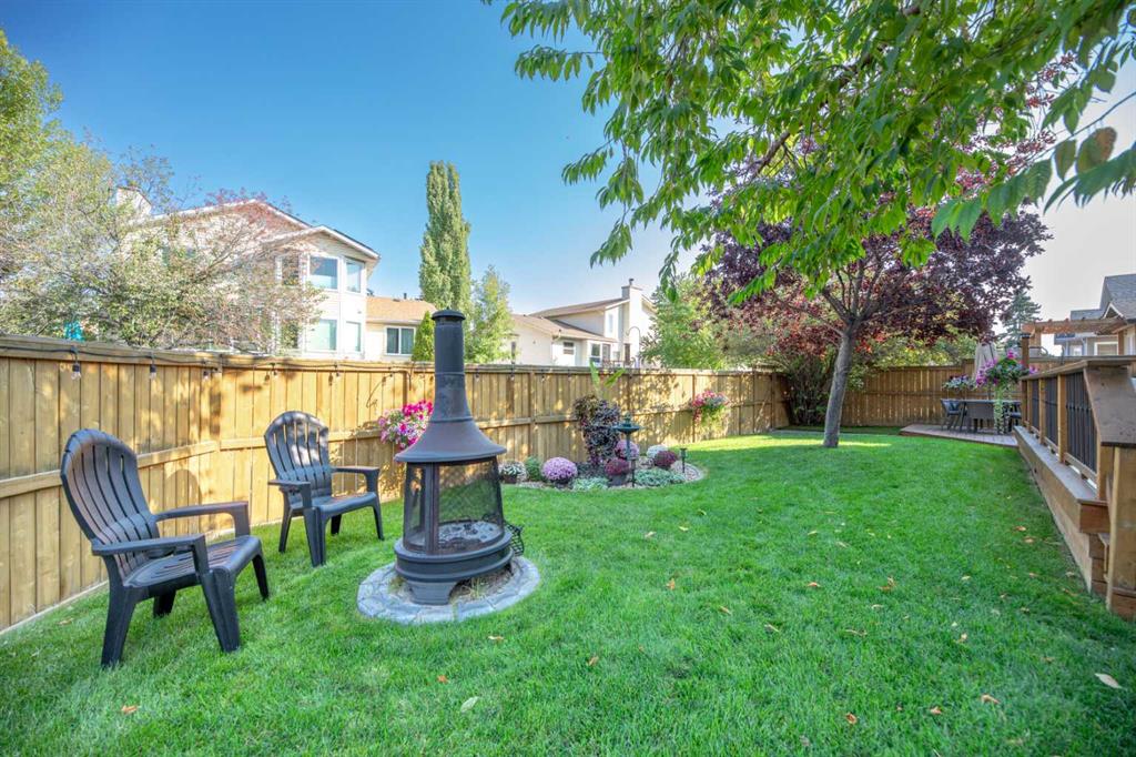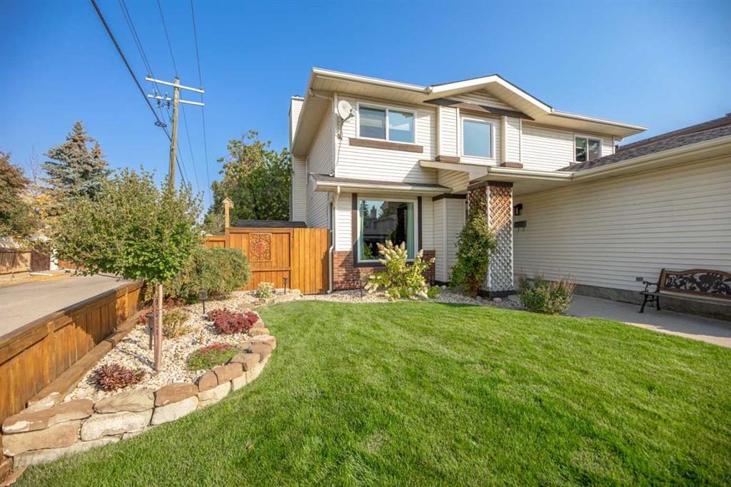Welcome to this beautifully upgraded home with extra side yard, located just a short walk from the private lake, two schools, parks, river pathways and shopping. From the moment you step inside, you’ll be impressed by the grand vaulted entrance, showcasing inlaid tile flooring and a sense of timeless sophistication. The home has been extensively refreshed, the main floor features an updated half bath, a front flex room, a formal dining room, and a bright dinette that flows seamlessly into the living room, complete with a cozy gas fireplace for cooler nights. The completely renovated kitchen is a showstopper, boasting quartz countertops, new white slow-close cabinetry, custom backsplash, stainless steel appliances, undermount lighting, and thoughtful design throughout, perfect for both everyday living and entertaining. Upstairs, you’ll find four spacious bedrooms, a laundry room, and an open den area ideal for a home office or study nook. Both bathrooms have been fully renovated, including a four-piece main bath and a luxurious four-piece ensuite with high-end finishes. The fully finished basement expands your living space with two large rec rooms that include the 75" TV, a fifth bedroom, and another three-piece bathroom—offering flexibility for guests, hobbies, or family movie nights. Outdoors, enjoy the massive deck and patio designed for entertaining with a retractable awning, hot tub ready, and complemented by multiple storage sheds. Additional updates include a newer roof, upgraded vinyl windows, PEX plumbing, updated hot water tanks, water softener, a new furnace with heat pump, and a heated double attached garage with a 220 outlet—ensuring year-round comfort and peace of mind. This meticulously maintained home truly has it all: show home quality, modern upgrades and an unbeatable location in a family-focused community with access to excellent schools, golf courses, and the beauty of nearby Fish Creek Park and the Bow River. Quick access to Deerfoot and Stoney Trail ensures easy connectivity across the city. Call today for your own private showing!