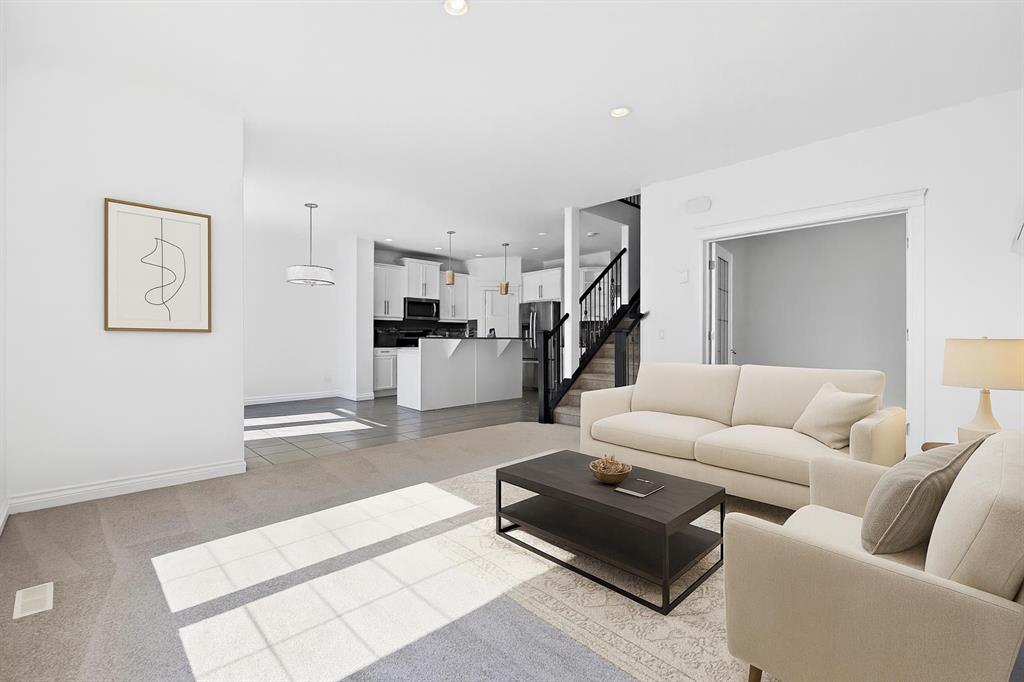 Welcome to Sage Meadows, a family-oriented community surrounded by parks, green spaces, ponds, and wetlands right at your doorstep. This stunning two-story home with over 2,700 sq. ft. of developed living space and a fully finished basement offers everything your family could want, from curb appeal to stylish interiors. The open-concept main floor features a spacious living room with a cozy gas fireplace, a dedicated home office, and a gourmet kitchen with a large island, stainless steel appliances, corner pantry, and abundant storage, along with a conveniently located 2-piece bathroom. Upstairs, you’ll find a roomy bonus room and three generous bedrooms, including a bright south-facing primary suite with a walk-in closet and a luxurious ensuite complete with a tiled soaker tub, standing shower, and elegant vanity. The fully finished basement expands the living space with two additional bedrooms, a large family/games room, and a tastefully designed 4-piece bath. Outdoors, enjoy a wide driveway perfect for shooting hoops in front of the two-car garage, and a south-facing fenced backyard with a wooden deck, mature trees, and access to pathways and ponds—offering both low-maintenance landscaping and space for entertaining. With a built-in multimedia system, quick access to major routes, just 25 minutes to downtown and 15 minutes to the international airport, this character-filled home combines convenience, comfort, and charm—all it needs is you!