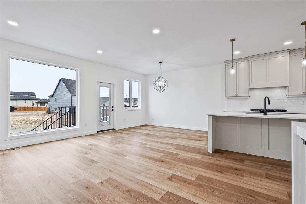 Welcome to 383 Caledonia Blvd West, a stunning brand new build in Lethbridge, Alberta. This home is designed for modern living, featuring two spacious bedrooms on the upper level, complemented by a luxurious 5-piece bathroom and a convenient half bath. The heart of the home is the expansive open-concept kitchen, which boasts a central island, a private butler’s pantry with ample storage, and high-end stainless steel appliances, including a gas range. The inviting living room features an electric fireplace, creating a cozy atmosphere, and leads out to a deck off the dining area—perfect for enjoying summer evenings. On the lower level, you’ll find a generous master suite complete with a 4-piece en-suite, along with another large bedroom and an additional 5-piece bathroom. The spacious family room is ideal for gatherings, and the laundry room offers practical functionality, with extra storage conveniently located under the stairs. Outside, the detached garage provides additional storage or parking, while the home’s prime location faces Chinook High School and a large sports field, with beautiful walking paths and a serene pond nearby. A new elementary school is also being built just one block to the west, making this neighborhood ideal for families. Don’t miss the chance to make this exceptional property your new home!