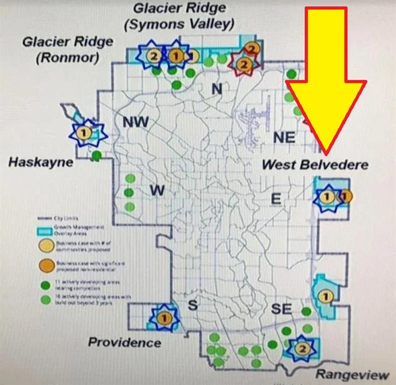 Calgary Belvedere 13.52 Acres Adjacent to East Hills Retail + Costco w/Stoney Trail Frontage. This prime piece of land is centrally located immediately north of East Hills Costco and the RioCan East Hills Shopping Centre and immediately adjacent to new development proposal (133 acres). Lots of growth underway in Belvedere with TriStar Communities Belvedere Rise, Minto East Hills and Genesis Huxley residential neighborhoods well underway, and the Memorial Drive Extension is coming soon. 13.52 Acres at $750,00/acre (12.26 acres with adjoining 1.26 acres) in Belvedere ASP with 2,000+ foot frontage to busy Stoney Trail Freeway. Services are nearby. Transit to downtown via Calgary Transit's MAX Purple rapid transit bus route service at East Hills Retail (across street from subject land). This 13.52 acre property is immediately north of the RioCan East Hills Calgary retail development which is located at 17th Avenue SE and Stoney Trail and includes major retailers Costco, Walmart, Cineplex, Marshalls, PetSmart, Michaels, Staples and many others under construction. The 13.52 acre property is currently S-FUD. Primarily Land Value (modular home has structural issues). Excellent elevated panoramic south and west mountain and city views. Tenant occupied with cell tower and tenant income, access by appointment only.