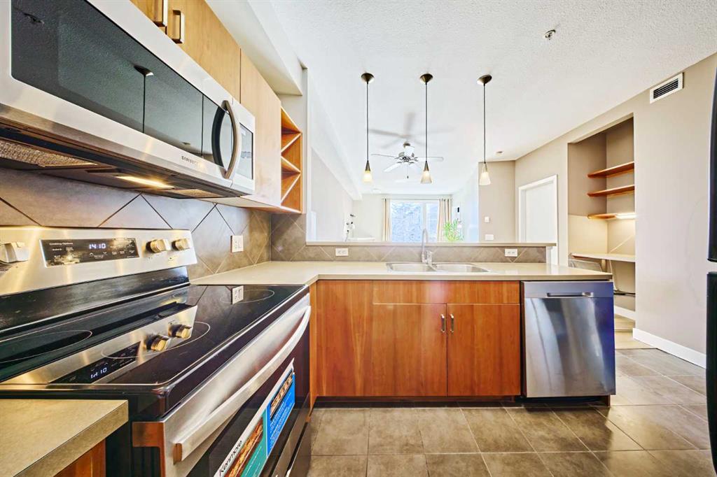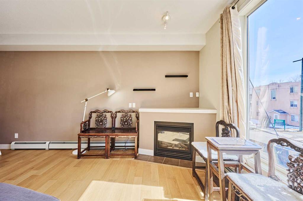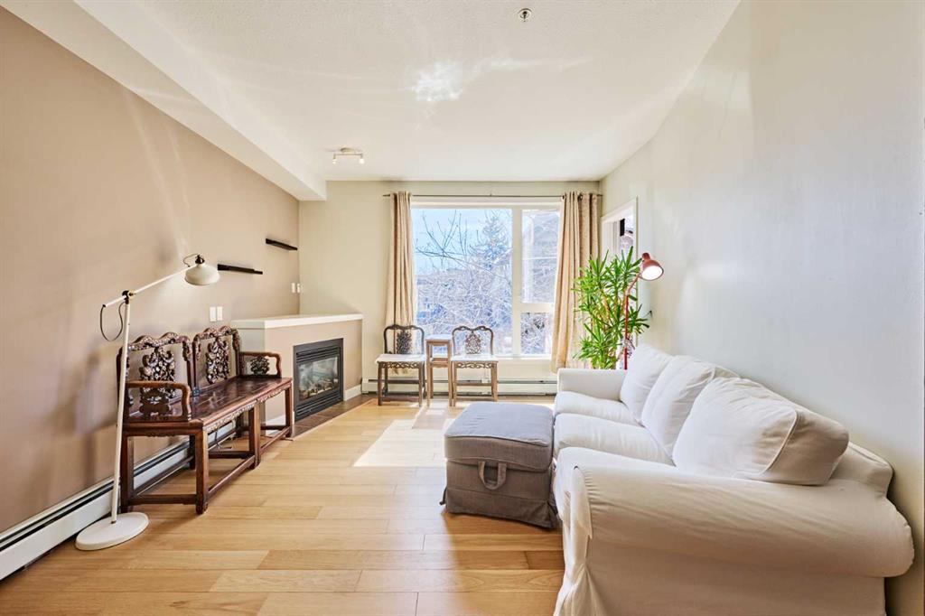 Welcome to Unit 203 in KABO, a bright and functional 1-bedroom, 1-bath condo in the heart of Altadore. This well-designed second-floor unit features an open-concept layout with 9' ceilings, a spacious kitchen(with new range, microwave and dishwasher) with maple cabinetry and breakfast bar, a cozy living room with gas fireplace, and a private covered balcony. The generous bedroom is located next to the 4-piece bath and in-suite laundry for added convenience. Heated underground parking and a separate storage locker are included. Pet-friendly building with board approval. Ideally located steps to River Park, Sandy Beach pathways, shopping, transit, and all the amenities of vibrant Marda Loop. A great opportunity for first-time buyers, investors, or anyone seeking an inner-city lifestyle in a desirable community.