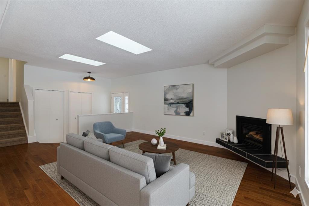 Welcome to this stunningly transformed 4-level split in the heart of Queensland, where mid-century charm meets contemporary luxury. No expense was spared in this top-to-bottom renovation, offering 1,738 square feet of finished living space. The main floor is a showstopper, featuring an open concept layout with gorgeous hardwood flooring and a custom kitchen. The culinary space boasts sleek navy and white cabinetry, a large central island, quartz countertops, a classic farmhouse sink, and a unique hexagonal tile transition that seamlessly blends the kitchen and dining areas. Large windows and dual skylights flood the space with natural light, highlighting the modern wood plank ceiling and industrial-chic lighting. Relax in the expansive living room, anchored by a sleek, minimalist fireplace with a slate hearth. Retreat to the upper level where you will find three generously sized bedrooms, including the primary with two piece ensuite. The lower level provides even more versatility with a massive recreation room—perfect for a home theatre or play area—along with a fourth bedroom and a second full bathroom, making it an ideal space for guests or teenagers. The basement level houses the laundry and a large open space ensuring you’ll never be short of storage. A separate entrance walks up to the large private yard with mature trees and plenty of space to roam. An oversized double detached garage and parking space for your RV complete this property. This home is ideally located and is just minutes from schools, shopping, the ridge at Fish Creek Park, and an off leash dog park. Don’t miss your chance to own one of the most uniquely renovated homes in this established, quiet community!