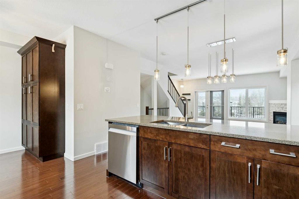 Welcome to 303 Valley Ridge Manor NW—where nature, lifestyle, and luxury meet. Nestled in a quiet, upscale complex backing the Valley Ridge Golf Course, this beautifully maintained and move-in ready, three-storey end-unit townhome offers over 1,800 sq ft of thoughtfully designed living space and unbeatable walkability to green space, pathways, and the Bow River. Whether you’re an avid golfer or a nature lover, this location gives you direct access to both—step out your door and onto the course or explore scenic trails that lead all the way to Bowness Park - or a quick drive to the Mountains from your front door! Inside, you'll find two spacious bedrooms, each with its own ensuite and walk-in closet, plus a convenient upper-floor laundry room. The main living level showcases hardwood floors, extra windows for added natural light, high ceilings, and a welcoming open floorplan. The chef-inspired kitchen features granite countertops, an induction range, and a furniture-style pantry, with a flexible nook perfect for a home office or breakfast table. The cozy family room with a gas fireplace opens to a sunny balcony—ideal for al fresco dining or relaxing after a long day. With two outdoor spaces, you can choose to bask in the sun, or opt for a bit more shade. Here you have choice! A lower-level flex room adds even more functional space, perfect for a home gym or media room. Additional highlights include a double attached garage, upgraded lighting, Hunter Douglas blinds, a Nest thermostat, and low-maintenance landscaping. This turnkey townhome is the perfect blend of peaceful living and urban convenience—steps to the golf course and moments to the city. Notable upgrades include: Newer fridge, stove, dishwasher, hood fan, hot water tank, and ceiling fans (less than 3 years old). For more information, floor plans and phots, click the links below!