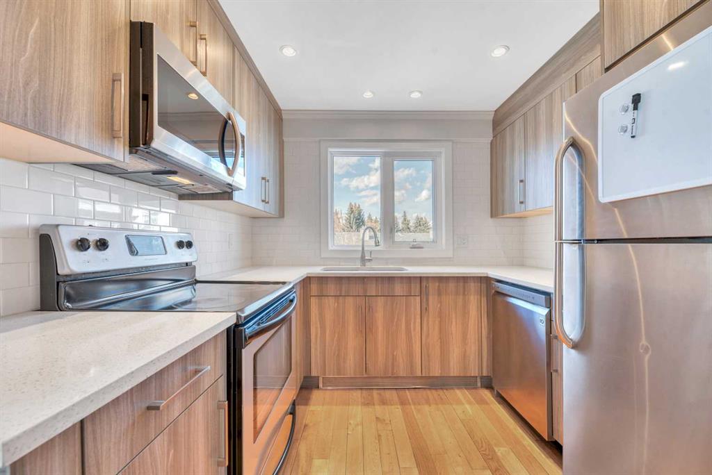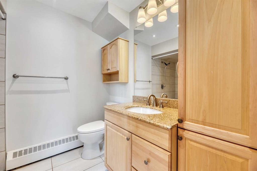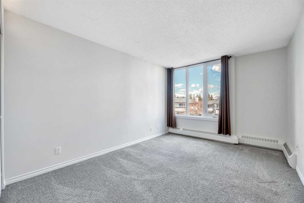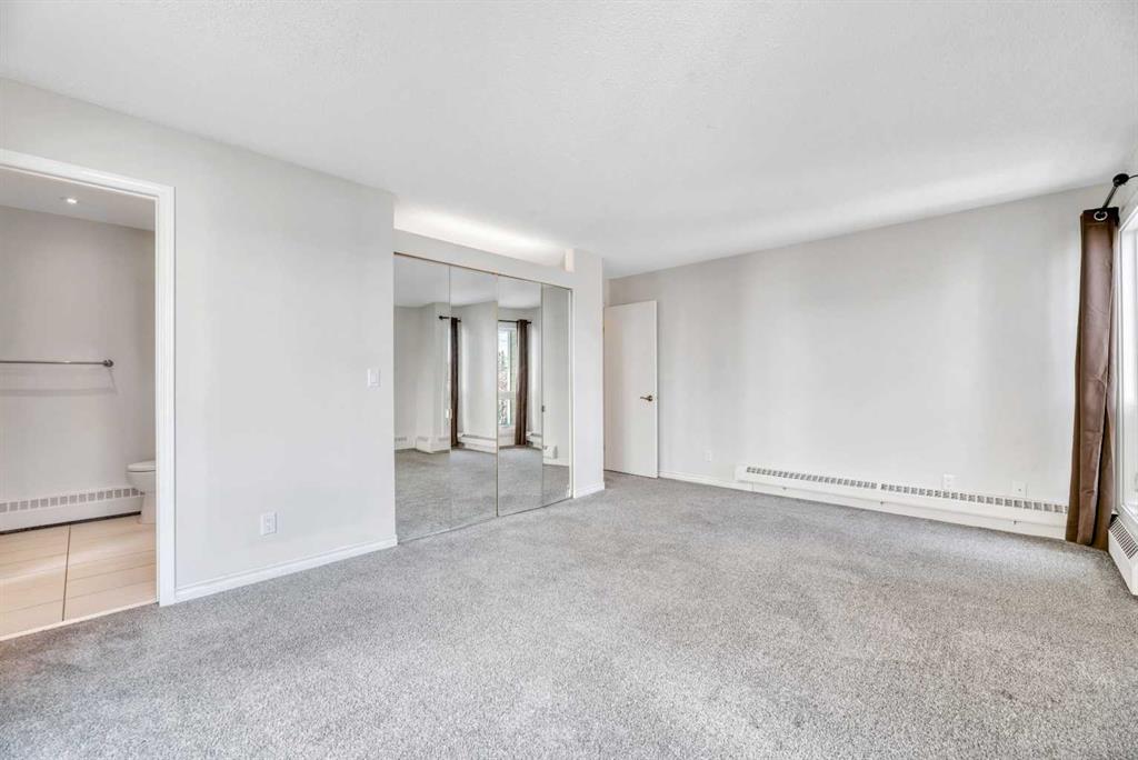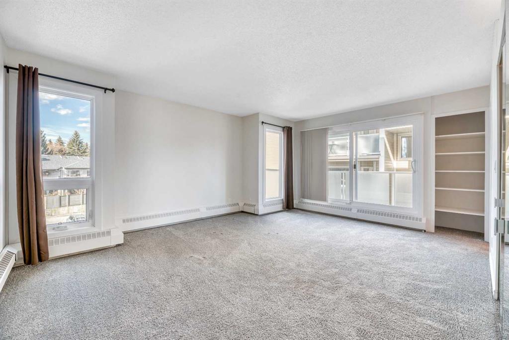 Don't miss this spacious renovated 2 bedroom, 2 bathroom condo in the heart of Varsity! Step inside to a tastefully updated kitchen featuring quartz countertops and stainless steel appliances, with updated lighting throughout the kitchen, bathrooms, and bedroom closets. At 1,127 square feet, the layout is generous and functional — a large dining area, and a sun-filled living room with expansive west-facing windows and completely unobstructed views to the west. Cozy up to the electric fireplace on those cold Calgary evenings, or step out onto one of two private balconies and soak in the sunshine. One of the great features of this unit is its position in the building — it shares just one wall with one neighboring unit. The primary bedroom is king-size ready and features its own balcony — a rare and lovely touch. The ensuite has been thoughtfully upgraded with a custom walk-in shower and heated flooring, making it a genuinely comfortable retreat year-round. The second bedroom and bathroom are equally well-appointed and ready for guests, family, or a home office setup. And the building itself deserves a mention: over the last decade this complex has seen significant investment in the exterior and common areas, including new roofing, balconies and railings, siding, windows, doors, landscaping, and refreshed interior hallways. This is a well-maintained complex that has been well cared for. This property is perfectly situated near Market Mall, and close to the University of Calgary, Alberta Children's Hospital, the river, parks, schools, public transportation, and so much more. Varsity is one of Calgary's most established and sought-after NW communities. Whether you're looking for a comfortable home or a strong rental property, this one is worth a serious look.