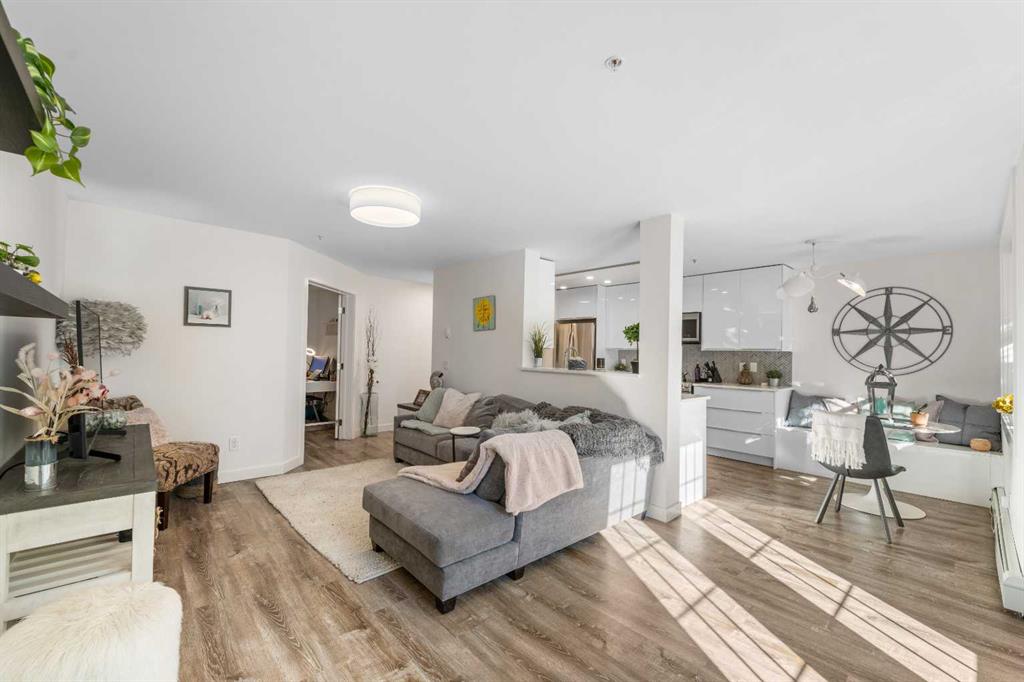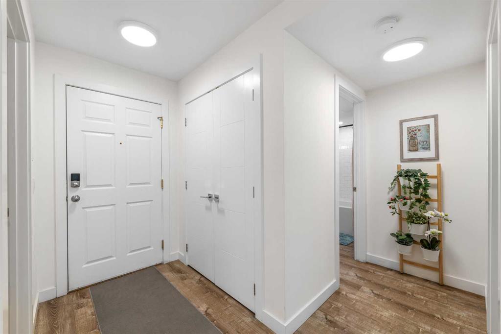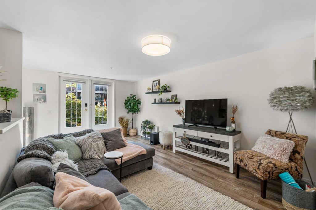 Welcome to this fully renovated, ground-floor modern condo in the heart of Marda Loop — one of Calgary’s most vibrant inner-city districts. This bright, south-facing 1-bedroom plus office end unit seamlessly blends contemporary design with everyday functionality. Step inside to find flat-painted ceilings, wide-plank LVP flooring, and a modern open-concept layout filled with natural light. The sleek white quartz countertops, stainless-steel appliances, and custom built-ins elevate the kitchen and living areas with a refined, minimalist aesthetic. A set of frosted French doors opens to a dedicated office — an ideal space for professionals working from home. The spacious patio, surrounded by mature trees, extends your living area outdoors and offers private, street-level access that feels more like a townhouse than a condo. Additional highlights include LED lighting throughout, a newly updated bathroom with tiled shower and vanity, and ample in-suite and built-in storage. This well-managed building provides exceptional value with a titled underground parking stall, two large storage units, visitor parking, and a common lounge available for private gatherings. Pets are welcome, and the reserve fund is healthy. Perfectly located just steps from boutique shops, cafés, and dining in Marda Loop, this home boasts a walk score of 92 — meaning nearly everything you need is right outside your door. Whether you’re a first-time buyer, a young professional, or someone seeking a lock-and-leave lifestyle in a premier inner-city neighbourhood, this property offers the best of both comfort and convenience.