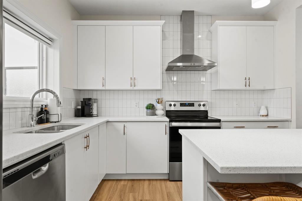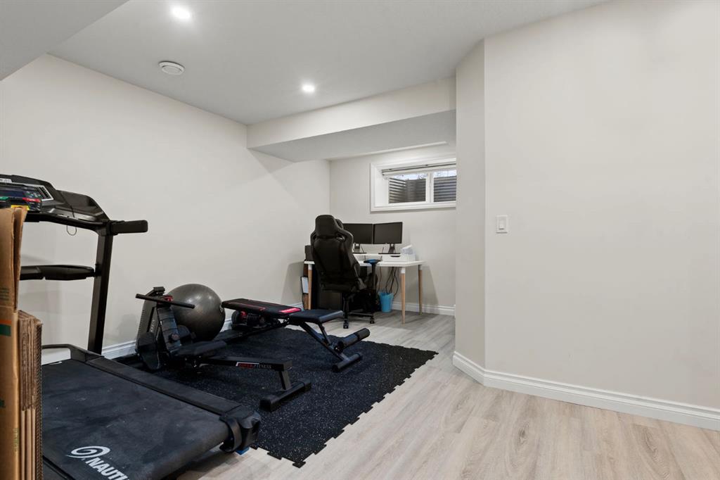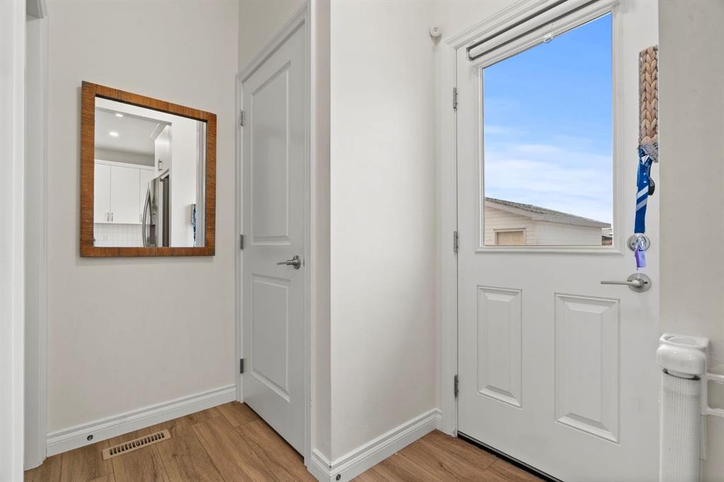 Welcome to this beautifully maintained 2-storey duplex in the heart of Cochrane, offering modern finishes, including smart technology with controls for lights, heat and door locks that can be controlled through your phone. As well as an Alexa doorbell. Thoughtful upgrades, and exceptional versatility in a neighbourhood loved for its proximity to schools, daycares, parks, and everyday amenities. The main level welcomes you with a bright, open-concept layout highlighted by vinyl plank flooring, recessed lighting, and stylish feature accents that add warmth and contemporary appeal. The inviting living room has large windows that flood the space with natural light creating an ideal setting for both everyday living and entertaining. At the heart of the home is the stunning kitchen, thoughtfully designed with quartz countertops, stainless steel appliances, crisp white cabinetry, and a large centre island with seating. Pendant lighting and a clean tile backsplash complete the space, while the adjacent dining area provides ample room for family meals and gatherings. A convenient main-floor powder room completes this level. Upstairs, you’ll find three well-sized bedrooms, including a serene primary retreat featuring a walk-in closet and private 4-piece ensuite. Two additional bedrooms are served by a second 4-piece bathroom, creating a functional and family-friendly layout. The upper level also includes convenient laundry located near the bedrooms and a thoughtfully designed built-in desk/workstation, perfect for homework, remote work, or creative use. The fully finished basement adds incredible flexibility and value, offering a spacious recreation area ideal for a home gym, media room, play space, or studio. This level also features a bedroom and bathroom, making it perfect for guests, teens, or extended family. Custom built-in storage and modern finishes complete this well-designed lower level. Additional highlights include central air conditioning for year-round comfort and a thoughtfully planned layout with 1,486 sq. ft. of above-grade living space, plus an additional 660.27 sq. ft. in the professionally developed basement. Situated in a welcoming Cochrane community close to parks, schools, daycares, and local amenities, plus enjoy, an outdoor pump track, skate park, and outdoor rink within a 5 min walk of the home. This home offers the perfect balance of style, comfort, and location ideal for families, first-time buyers, or anyone looking to enjoy small-town living with modern conveniences. Don't miss your chance to see this one today. Quick possession is available.