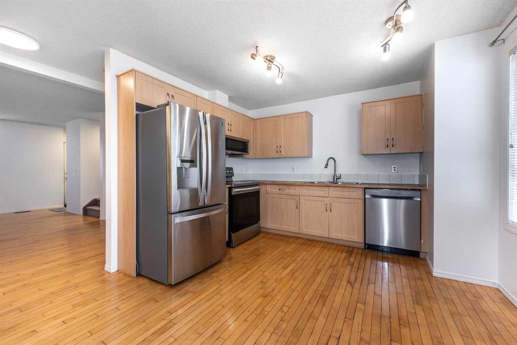 Welcome to this former show home townhouse, ideally situated in one of the best locations with easy access to everything you need. This corner unit offers extra privacy, a large east-facing backyard, and plenty of street parking right behind the home, along with a dedicated stall in front. Inside, you’ll love the thoughtful upgrades, including hardwood flooring on the main level, a cozy gas fireplace, and stainless steel appliances with a convenient pantry in the kitchen. The main floor features a bright living room, a 2-piece bathroom, and an open-concept kitchen with access to your backyard – perfect for relaxing or entertaining. Upstairs, you’ll find three spacious bedrooms, including a comfortable primary bedroom, plus a full bathroom. The partially finished basement adds extra space and flexibility for future development. This home is steps away from Shoppers Drug Mart, within walking distance to the train station, and directly faces a park, making it ideal for families and professionals alike. With its low condo fee, prime location, and great price, this property is a fantastic opportunity you won’t want to miss!