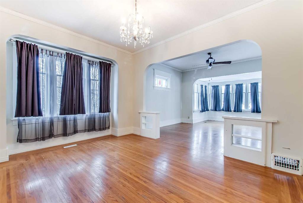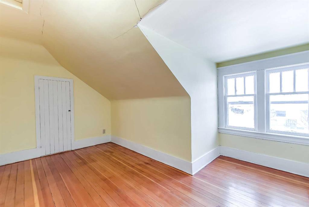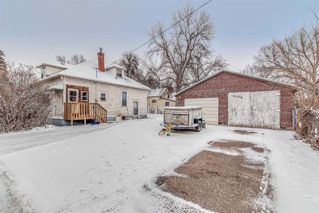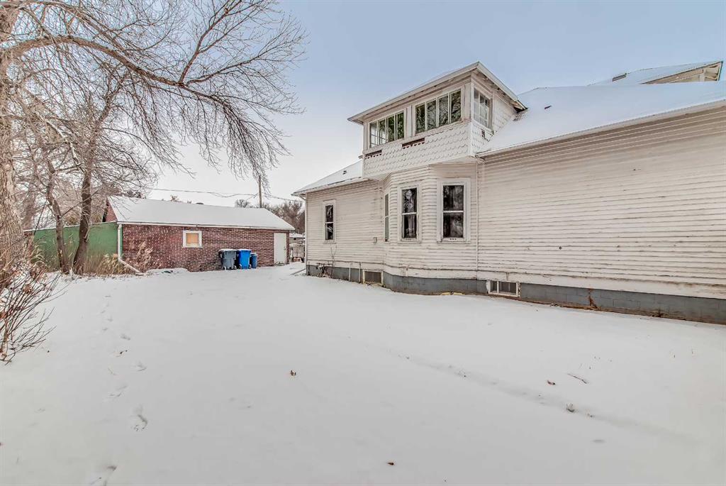 This 1.5-storey, 1,810 sq ft home is full of character and sits on an oversized corner lot in River Flats. The layout offers 5 bedrooms along with a sunroom and a double detached garage. The main floor features beautiful hardwood floors throughout, a large living room with multiple windows, and a spacious dining room that connects nicely to the kitchen. Two main-floor bedrooms, main-floor laundry, and an updated 3-piece bathroom with a clawfoot tub complete this level. Upstairs, you’ll find two additional bedrooms and an unheated sunroom. The basement includes one bedroom (the current window may not meet today’s egress requirements,) a storage room, a 1-piece bathroom, and plenty of space and potential to finish and make it your own. The hot water tank was replaced in 2019. Outside, the large corner lot offers excellent parking with a 28’ x 24’ detached garage, a large asphalt driveway, and an additional front parking pad. An affordable option in a mature, central neighbourhood.